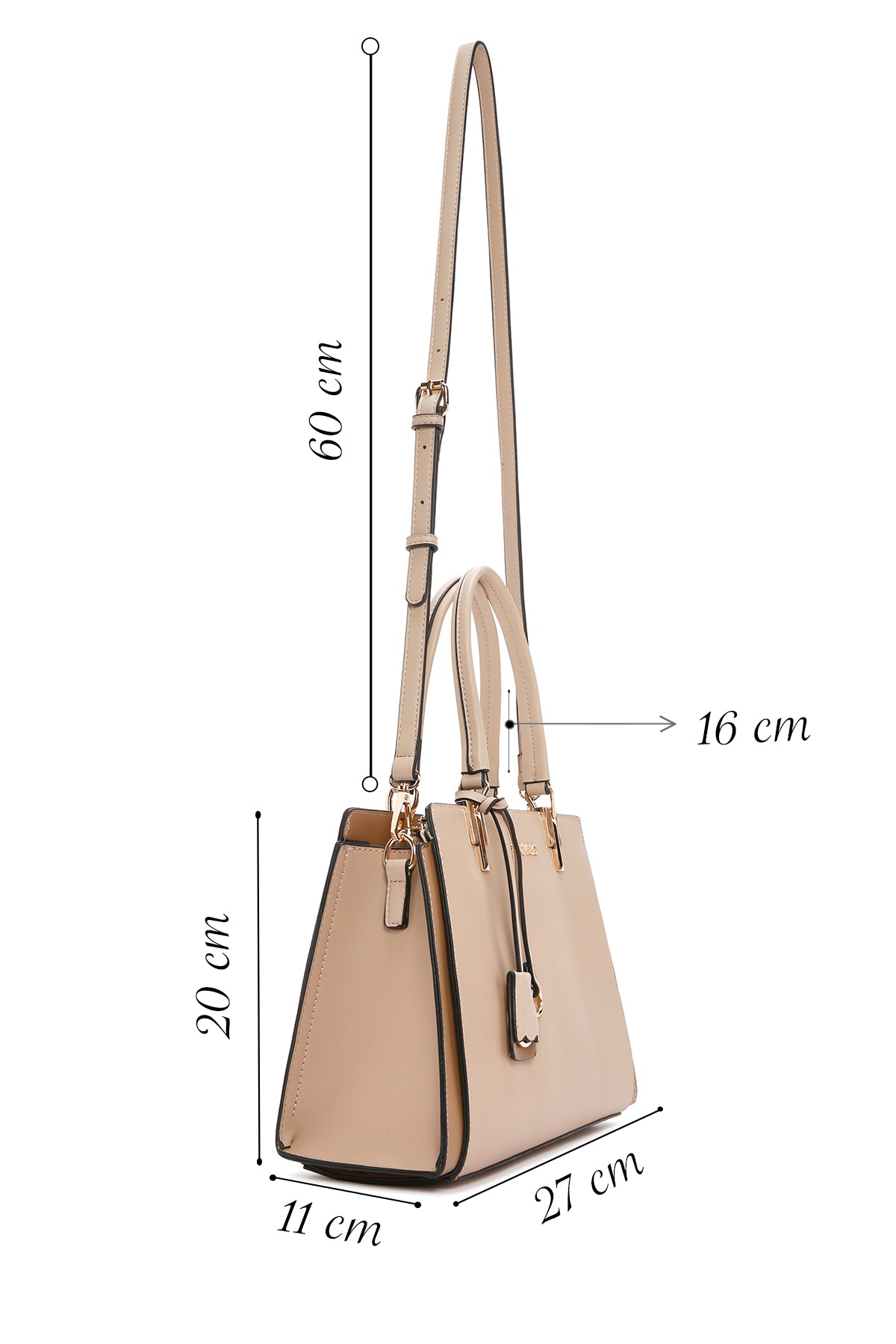 Women's Beige Long Strap Classic Handbag