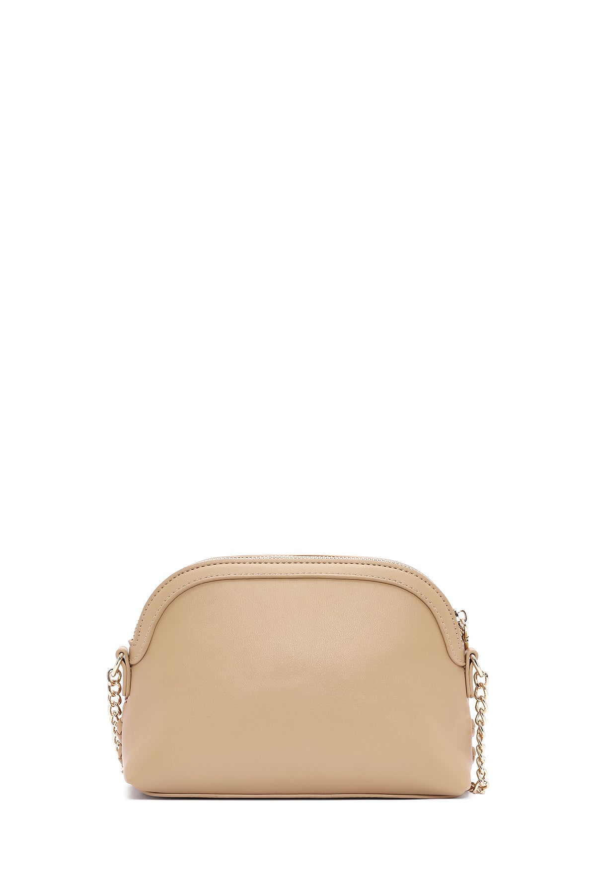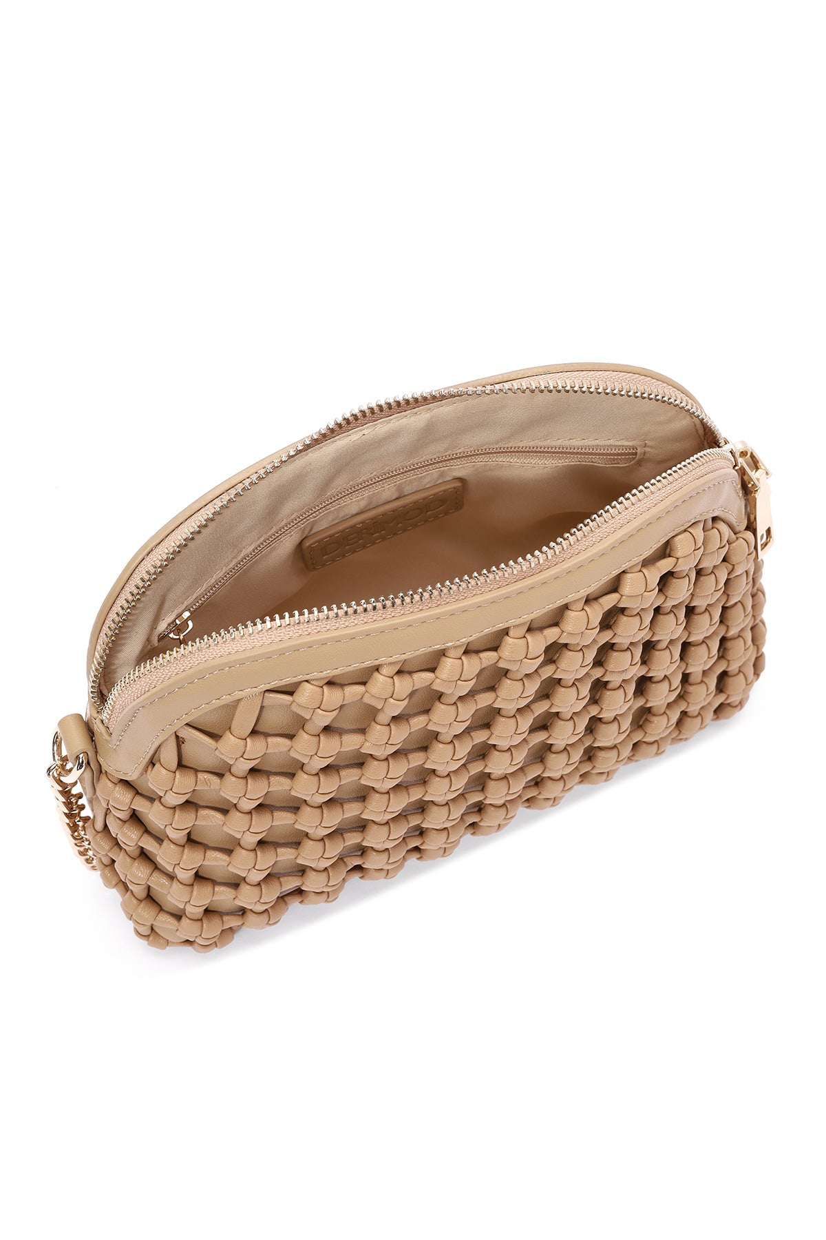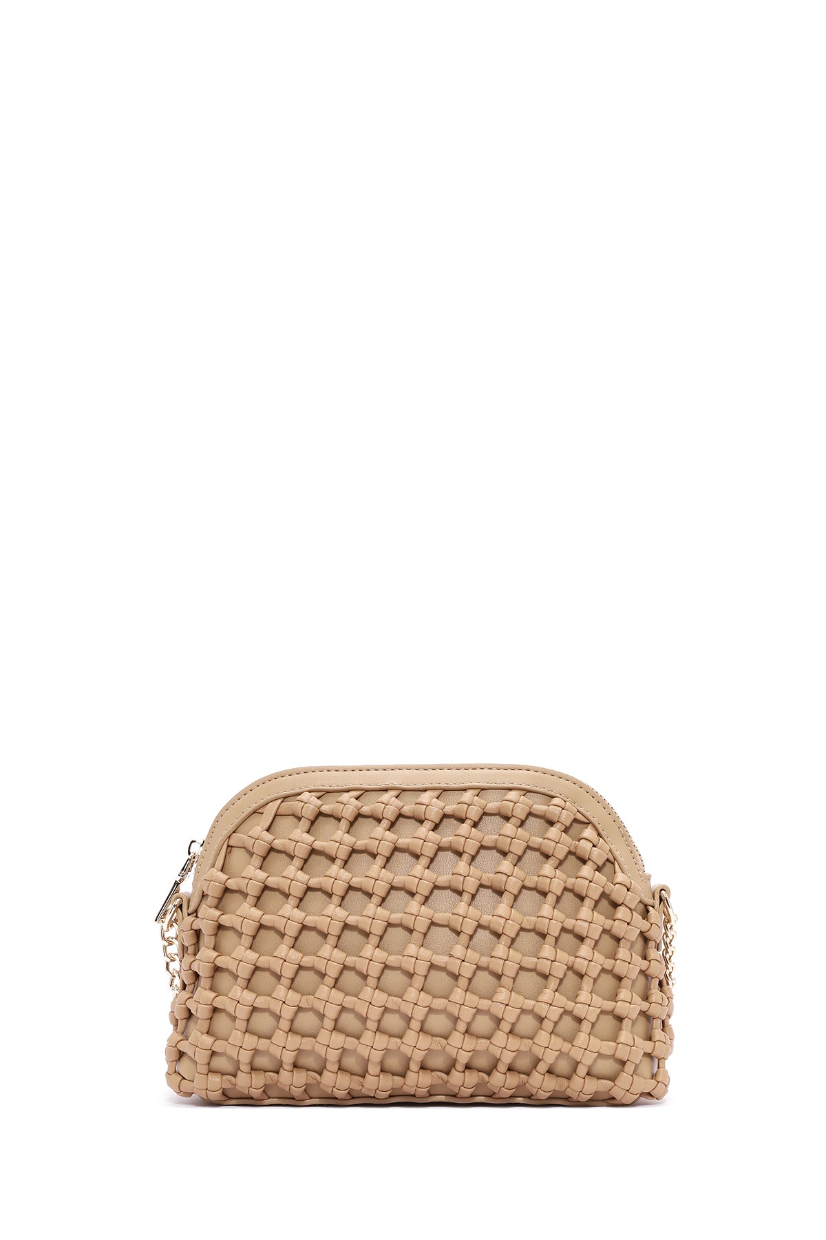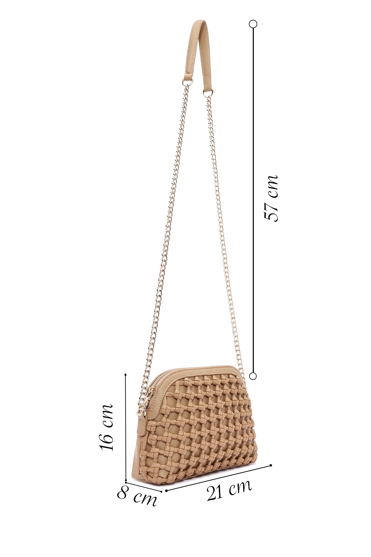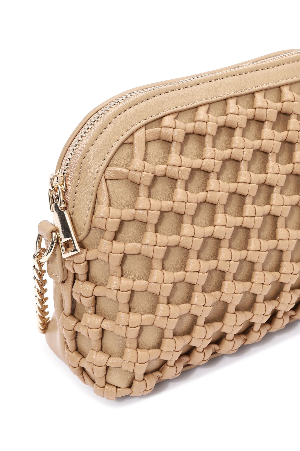 Woman Beige Long Braided Crossbody Bag with Chain Strap
