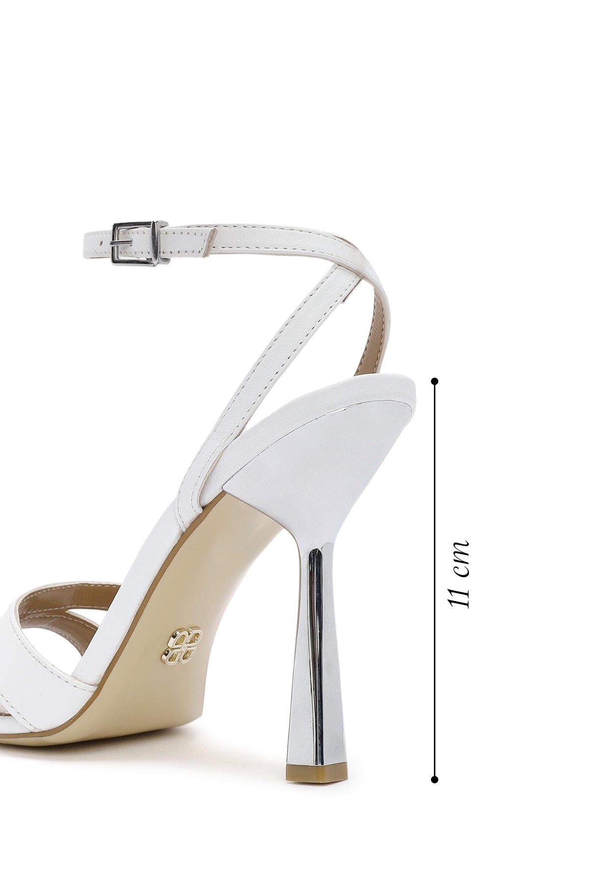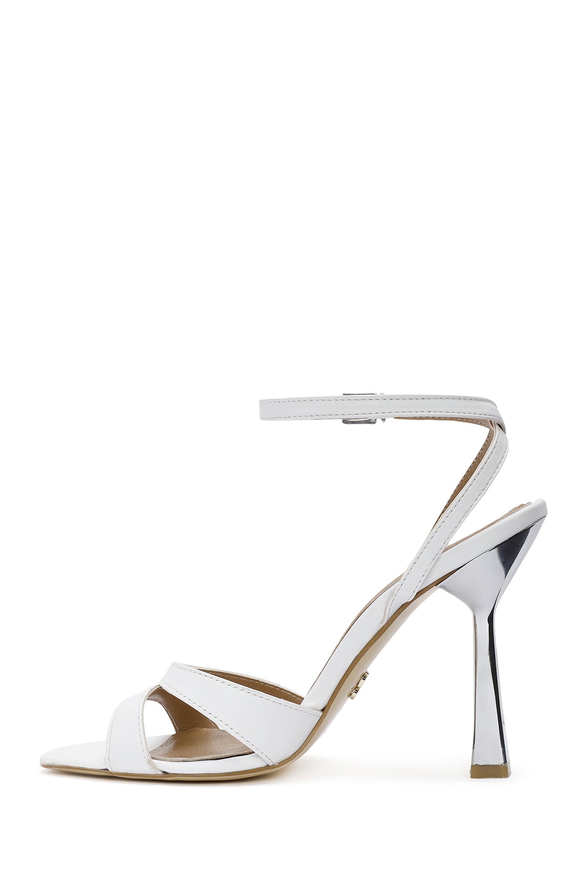 Women's White Ankle Strap Thin Heeled Leather Sandals