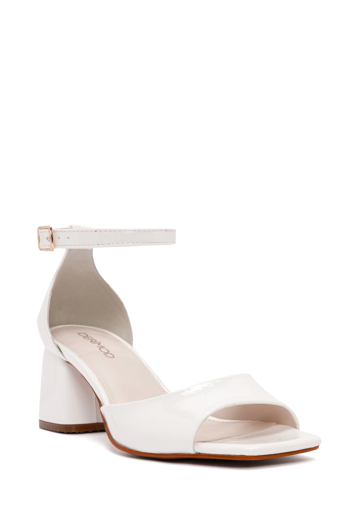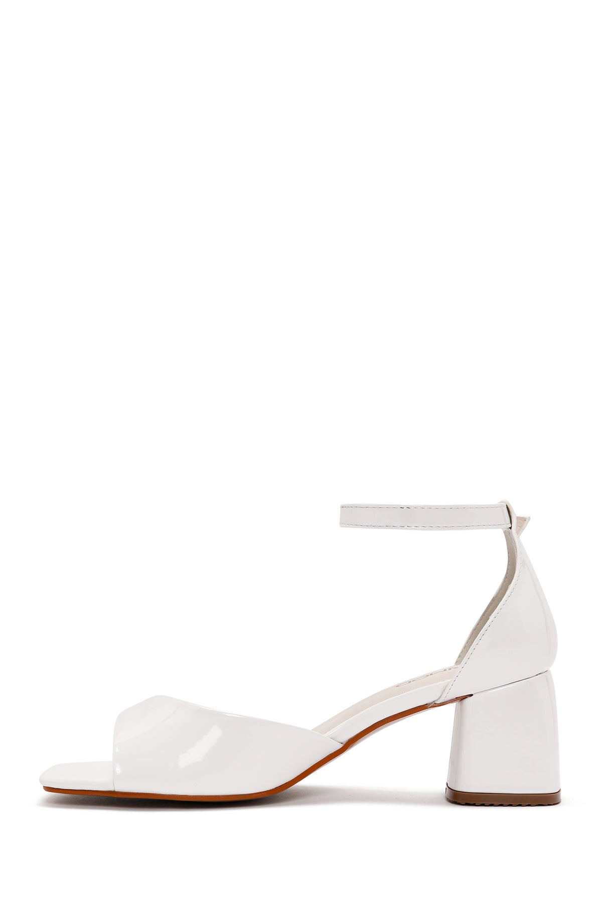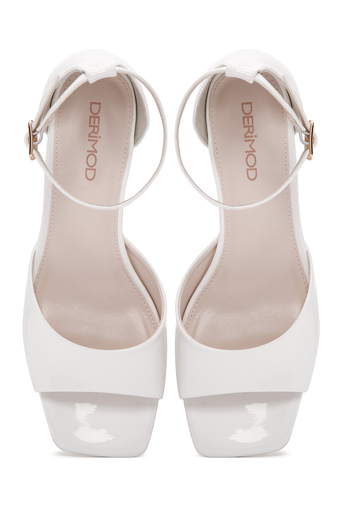 Women's White Ankle Strap Heeled Patent Leather Shoes