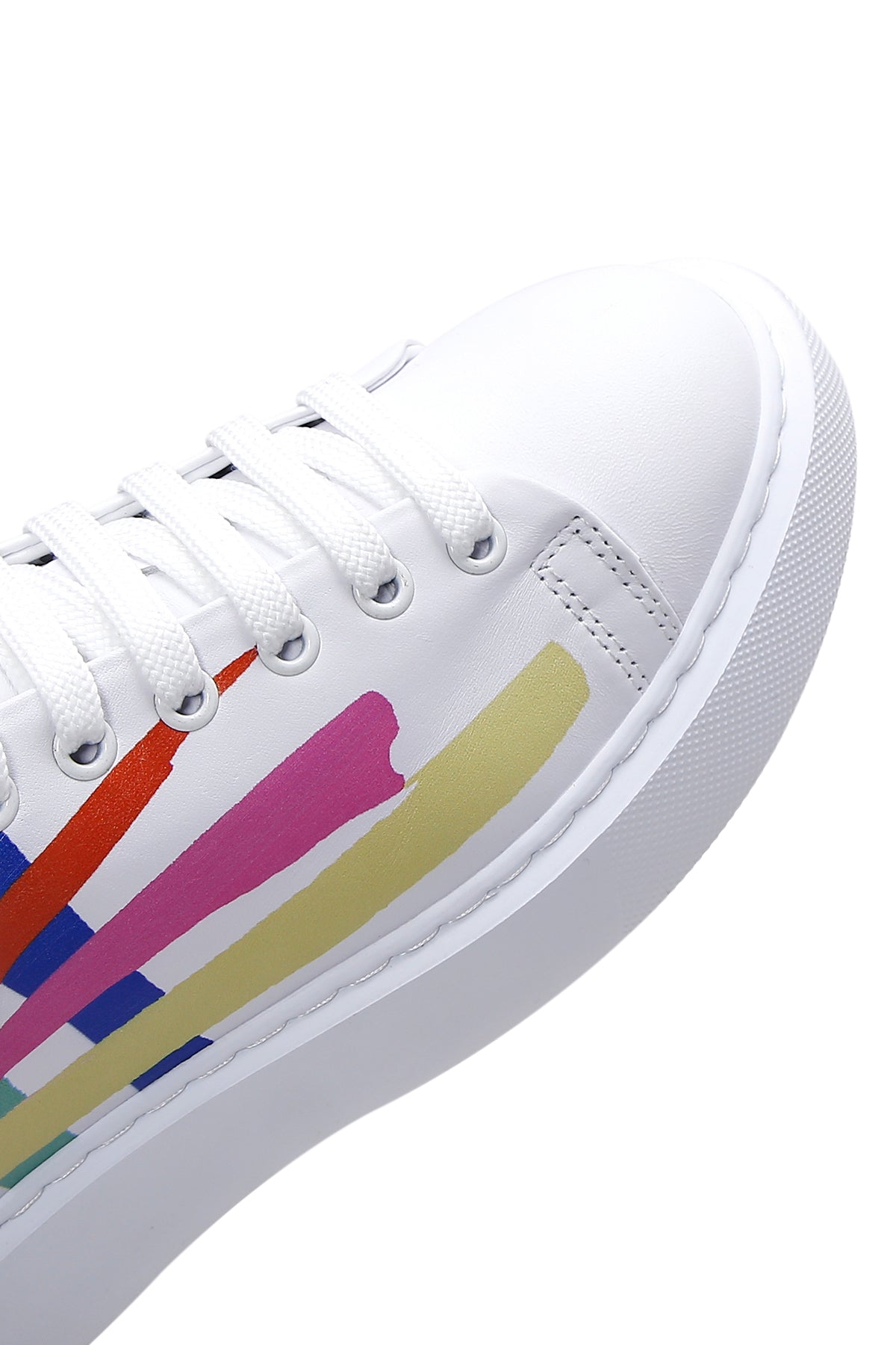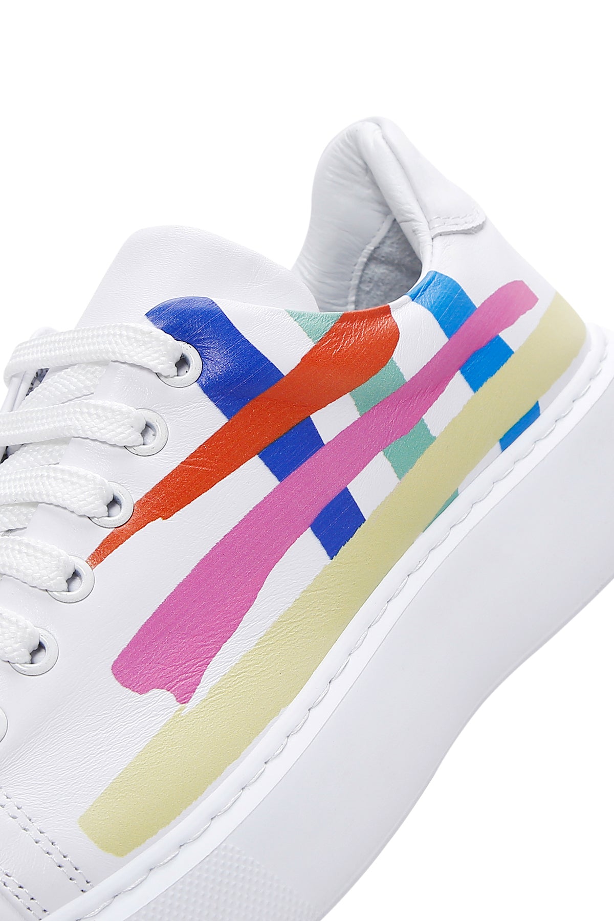 Show off your style with Derimod's Women's White Multi-Colored Leather Thick Sole Sneaker, which combines elegance and elegance. Product code: 23SFD131218 12