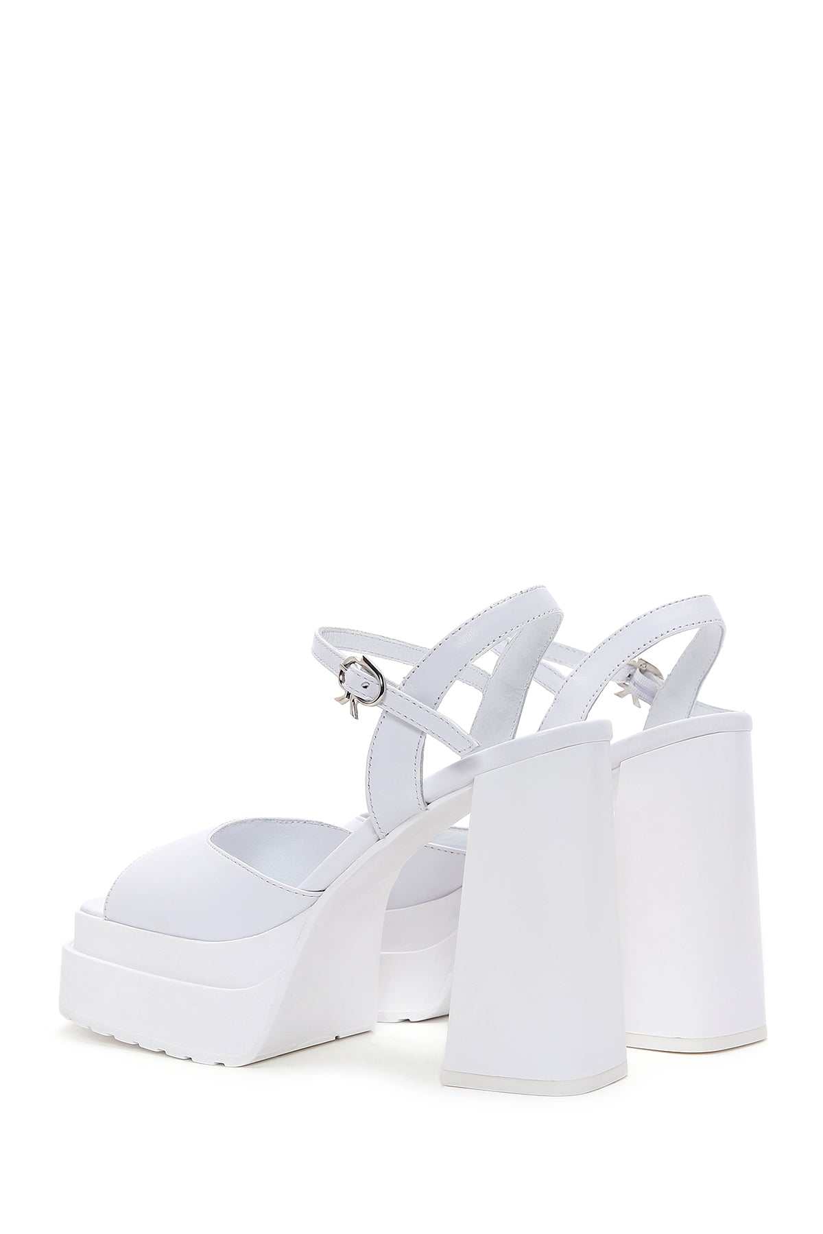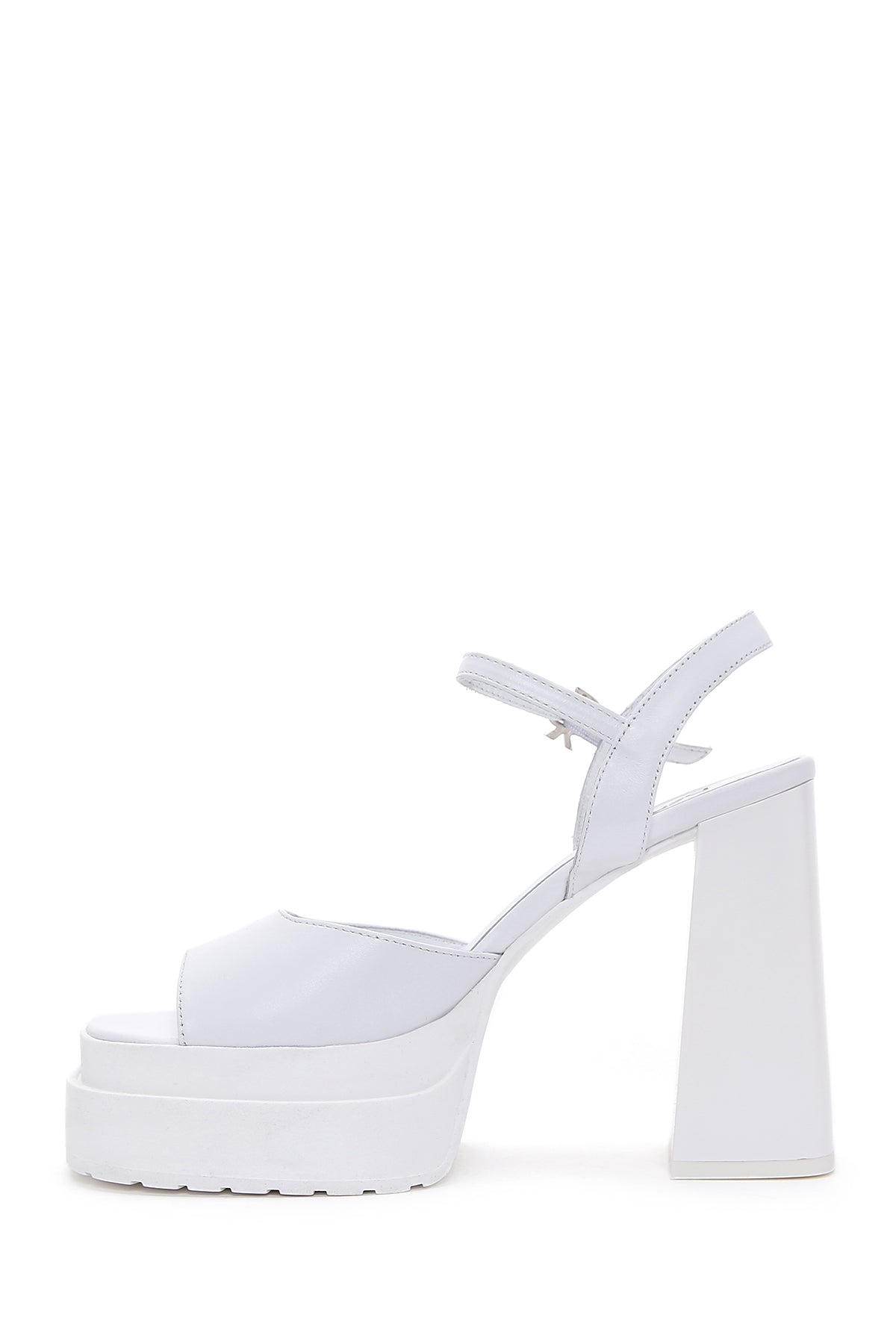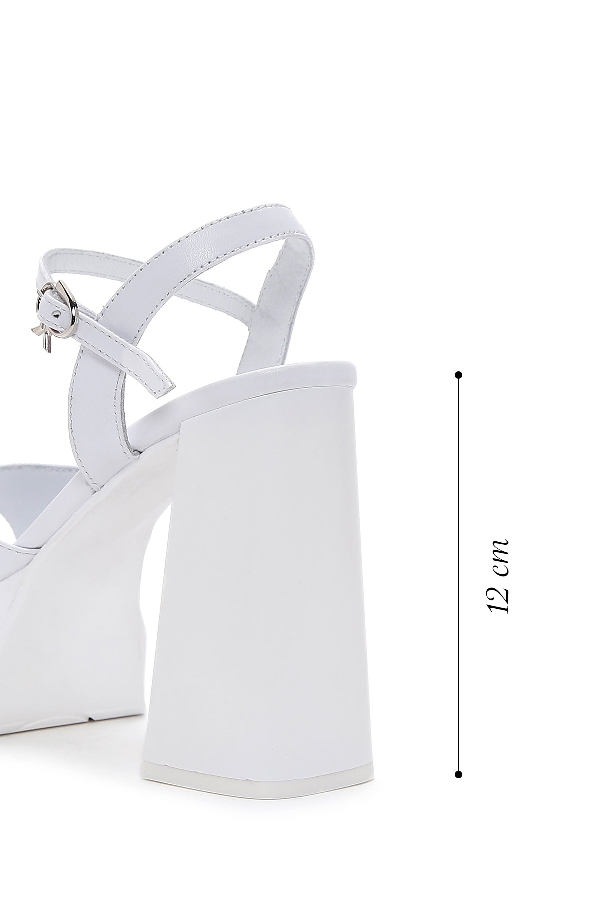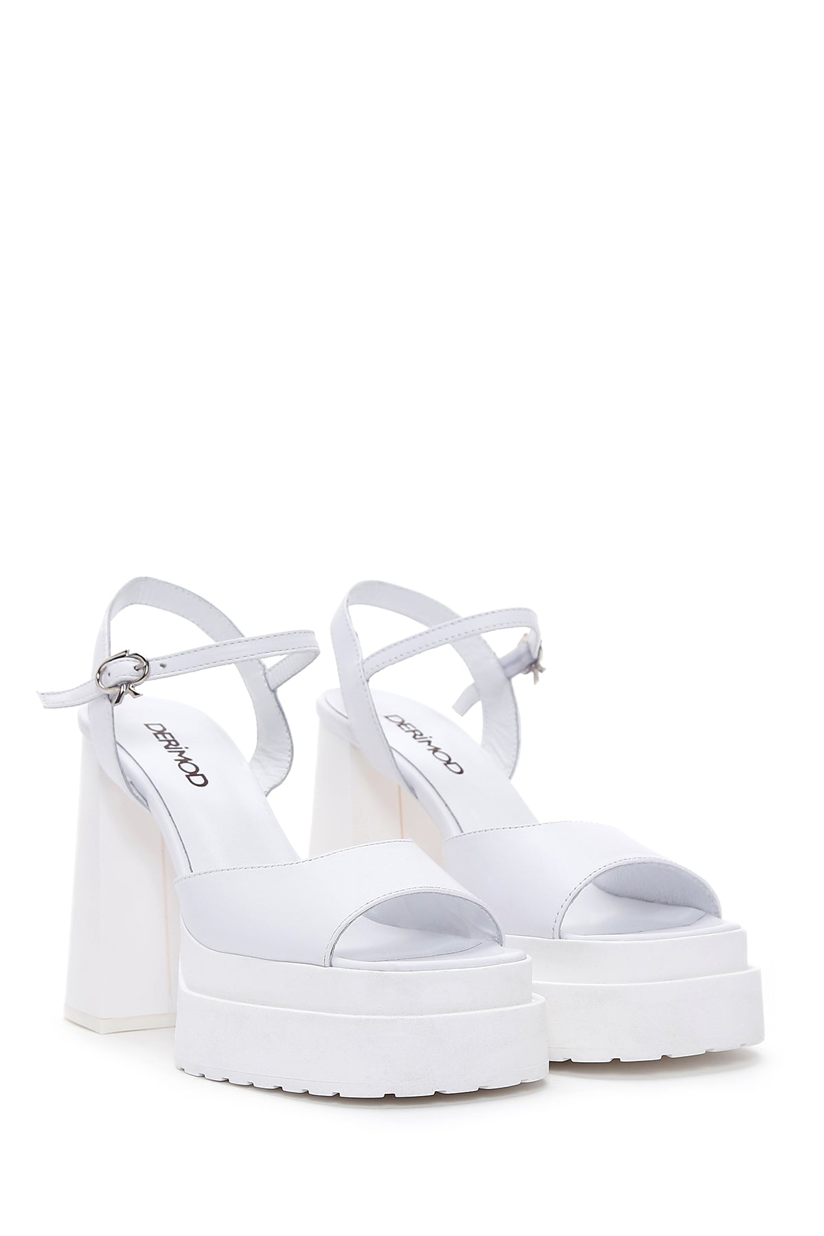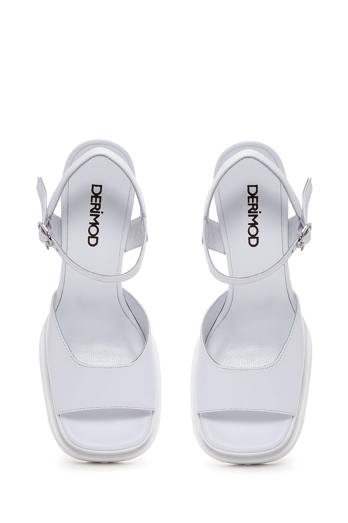 Show off your style with Derimod's Women's White Leather Plaftorm Thick Heeled Sandals, which offer elegance and elegance together. Product code: 23SFD133318 01