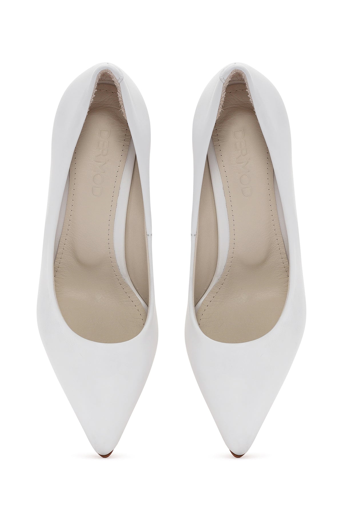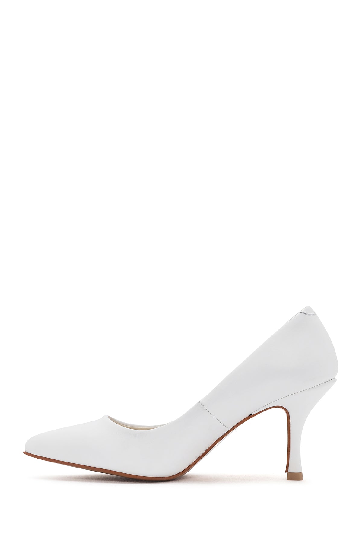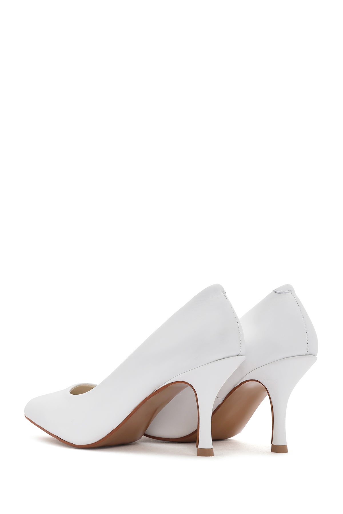 Women's White Thin Heeled Leather Stiletto