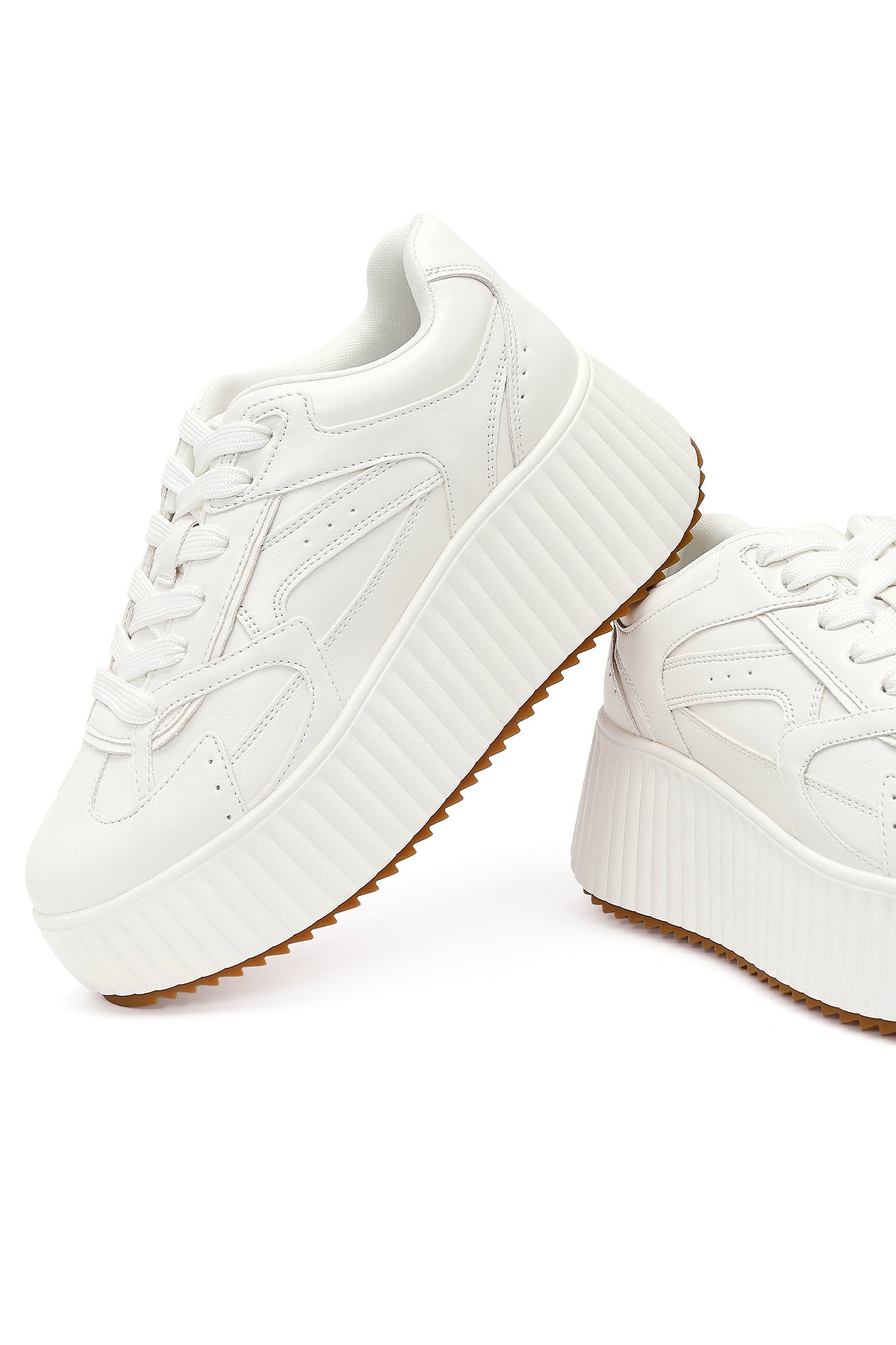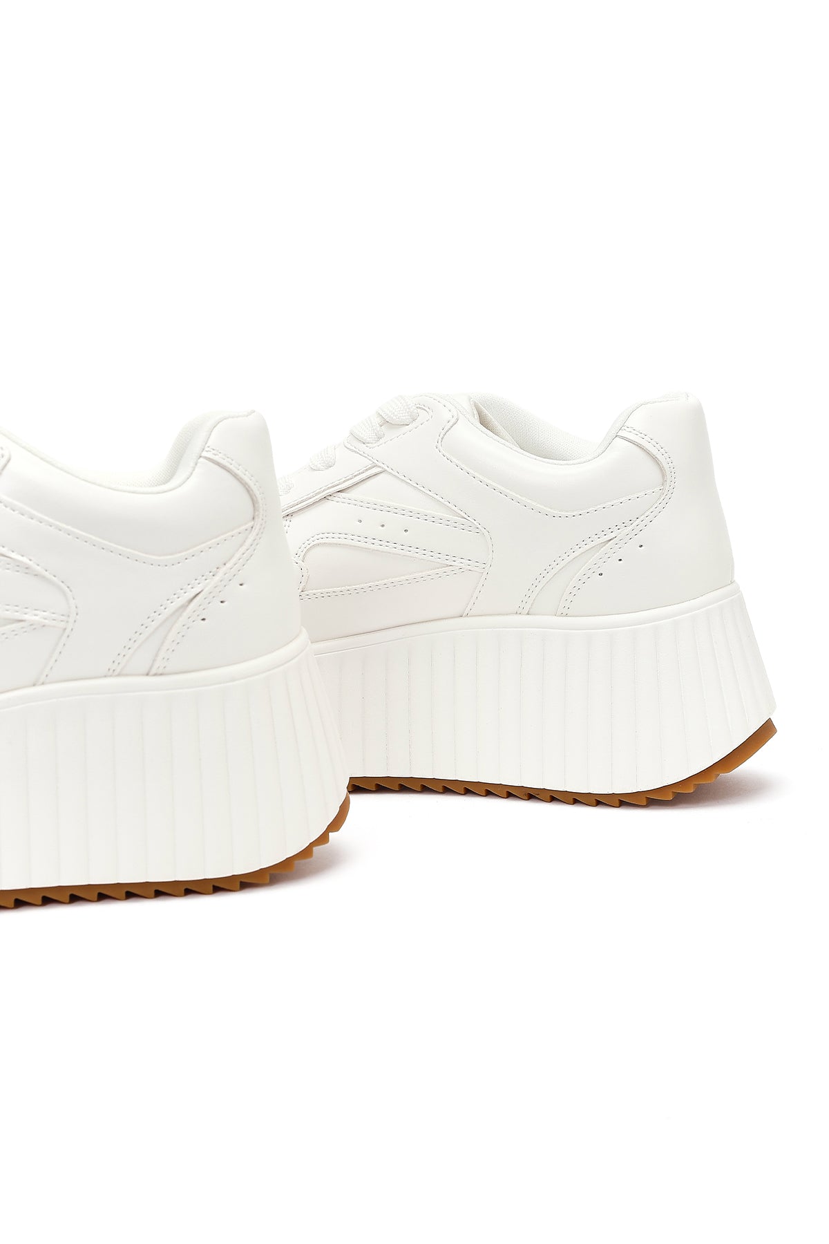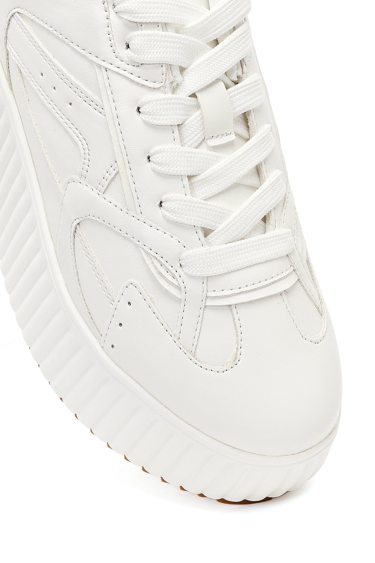 Women's White Thick-Soled Lace-Up Sneaker