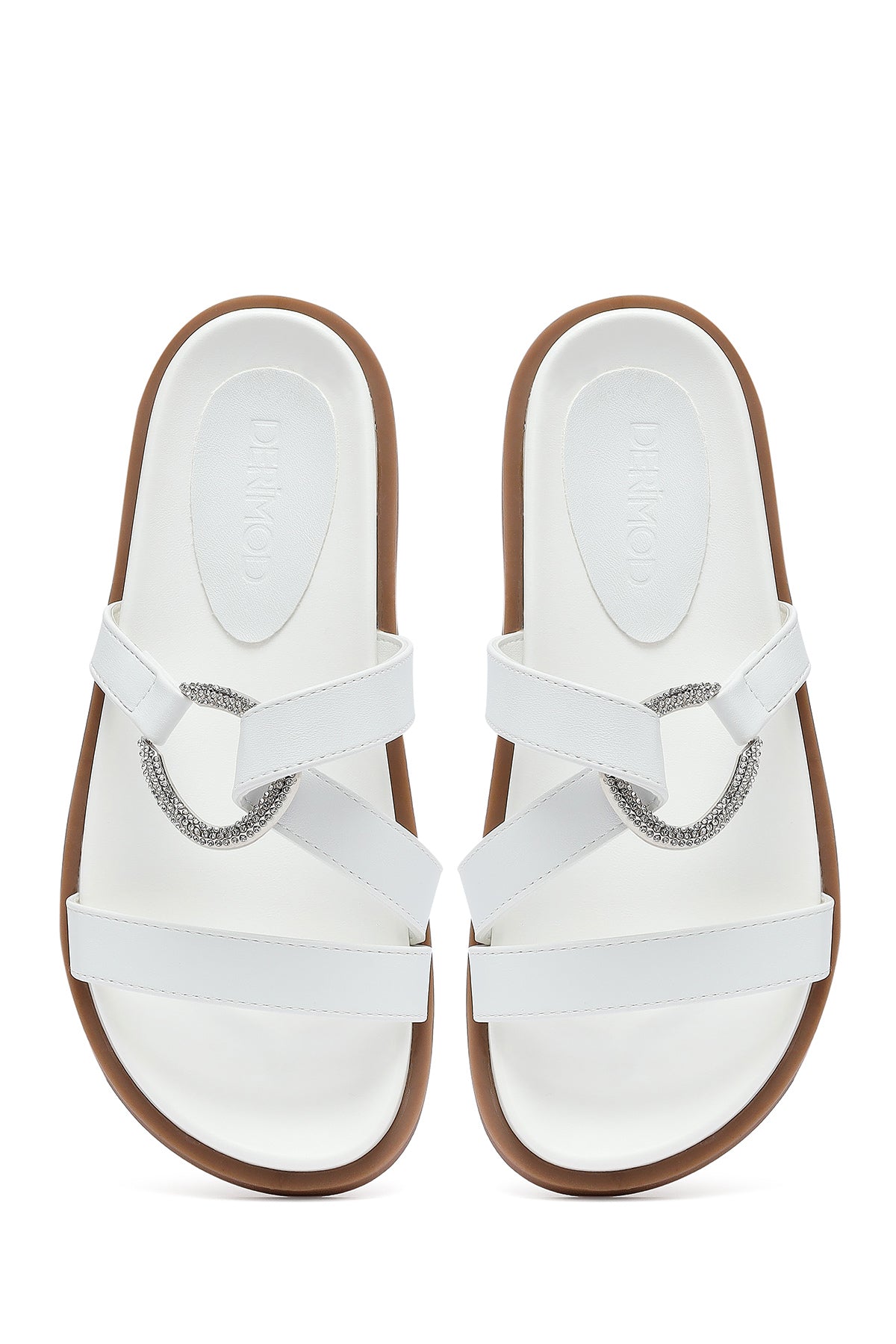 Express your style with the Women's White Stone Slippers that combine Derimod's Elegance and Sophistication. Product code: 25SFE451218 01