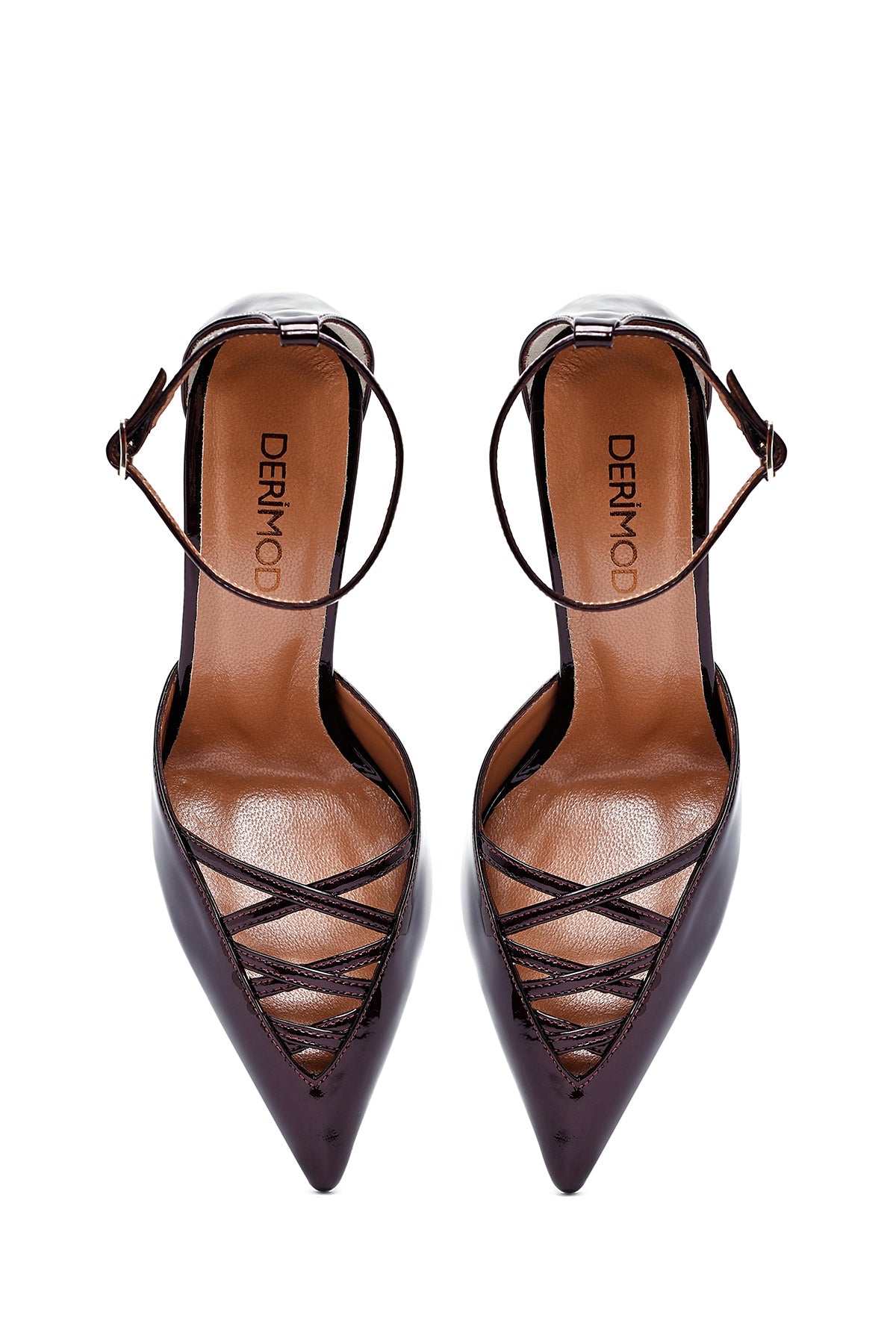 Derimod's elegance and style together Woman Burgundy Patent Leather Thin Heeled Ankle Buckle Leather Show off your style with shoes. Product code: 25SFD162016 66
