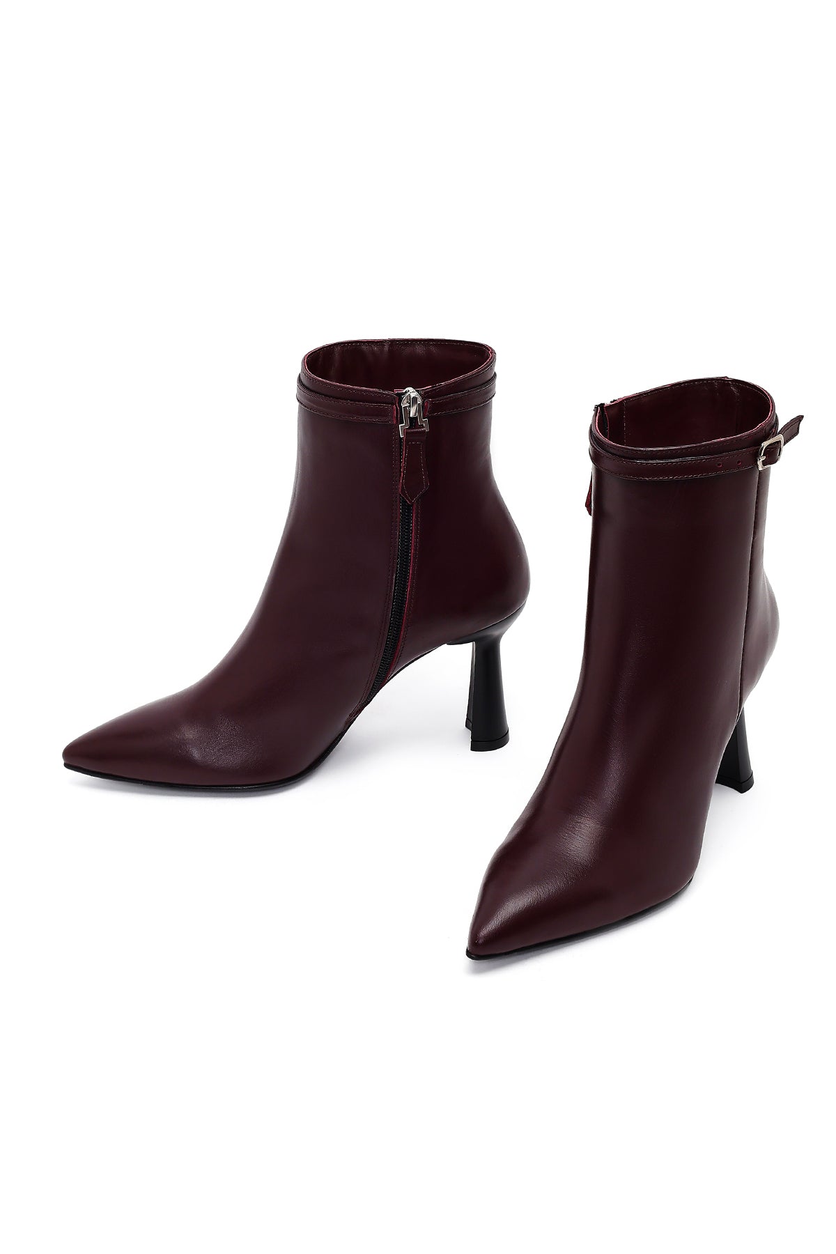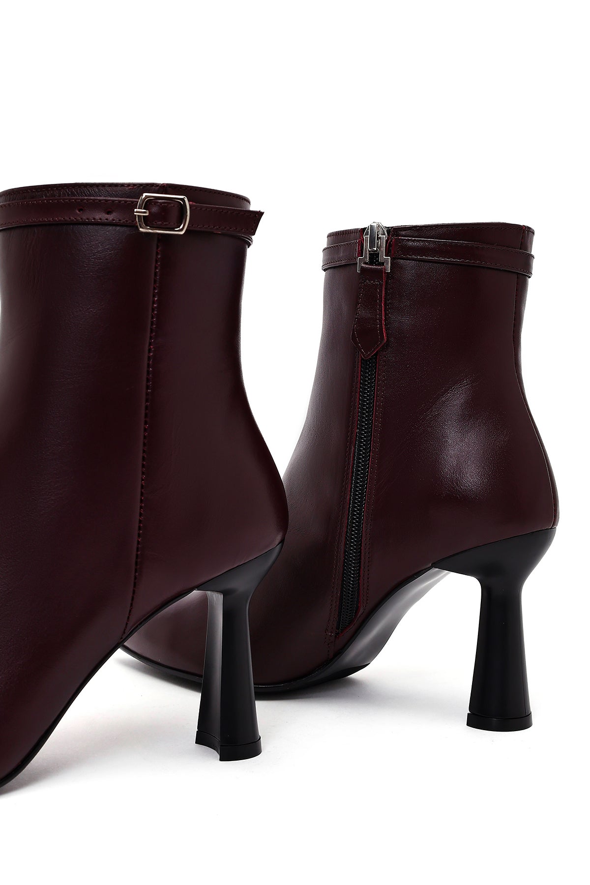 Kadın Bordo Fermuarlı Topuklu Deri Bot