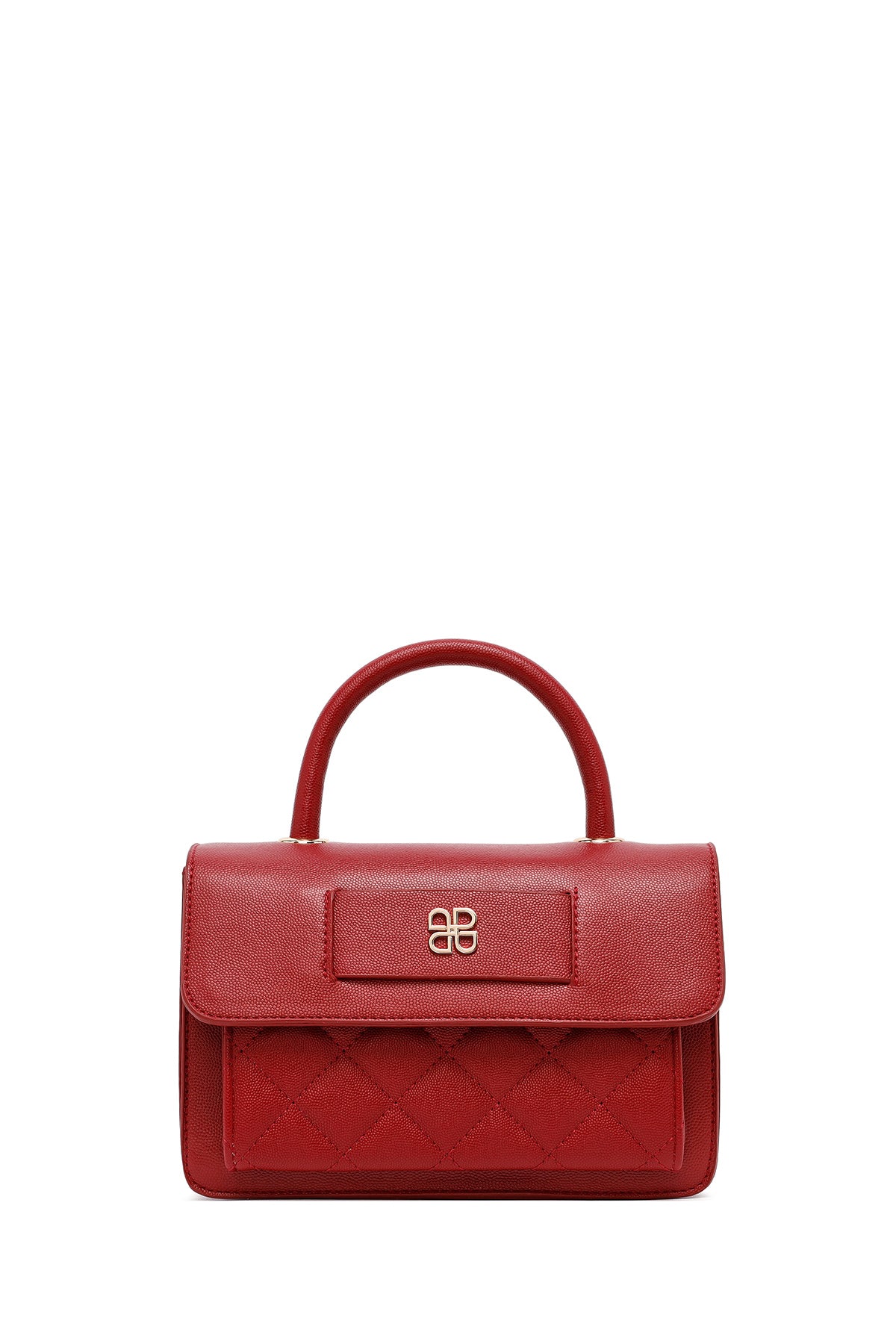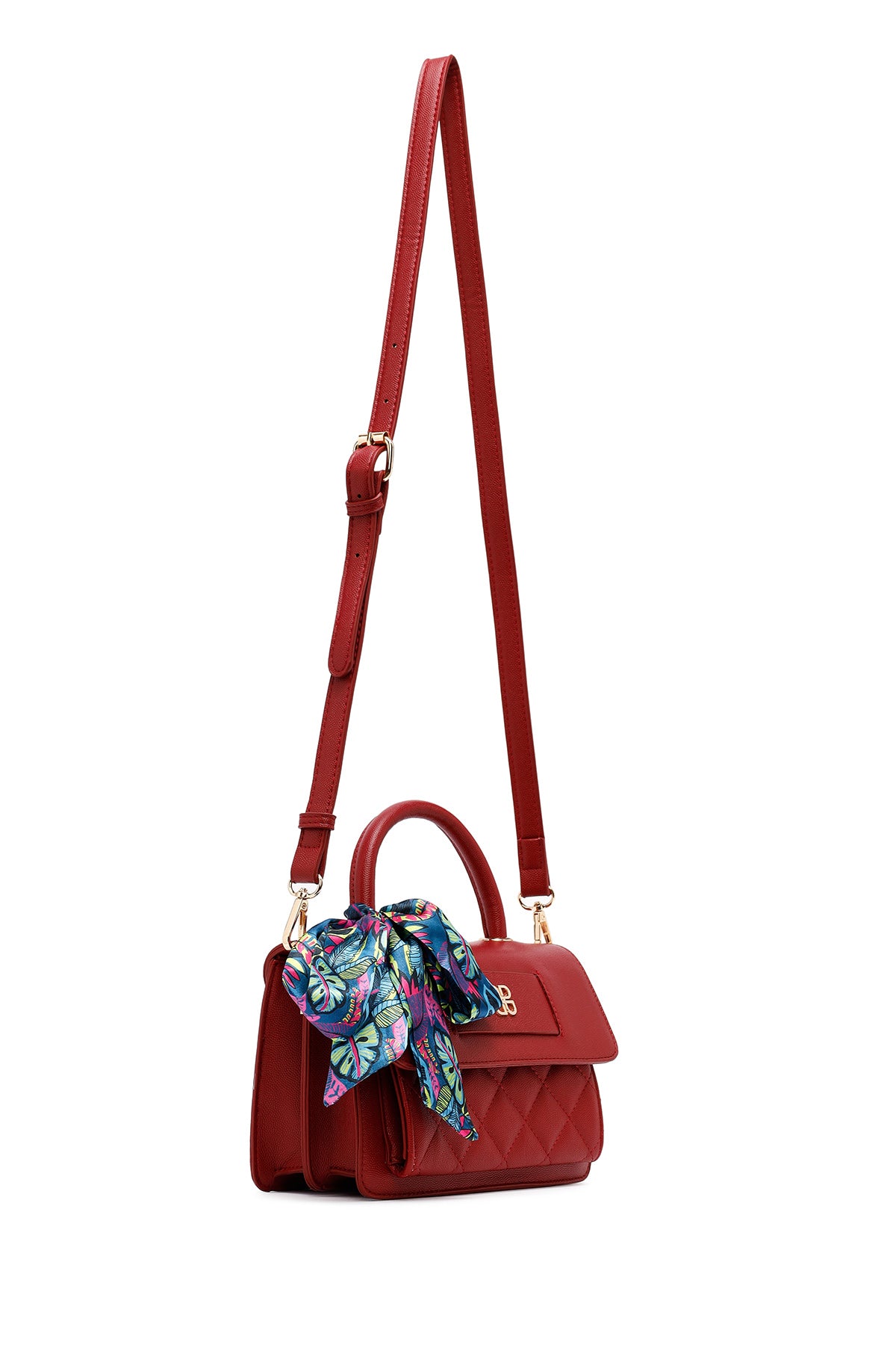 Woman Burgundy Long Strap Quilted Mini Crossbody Bag