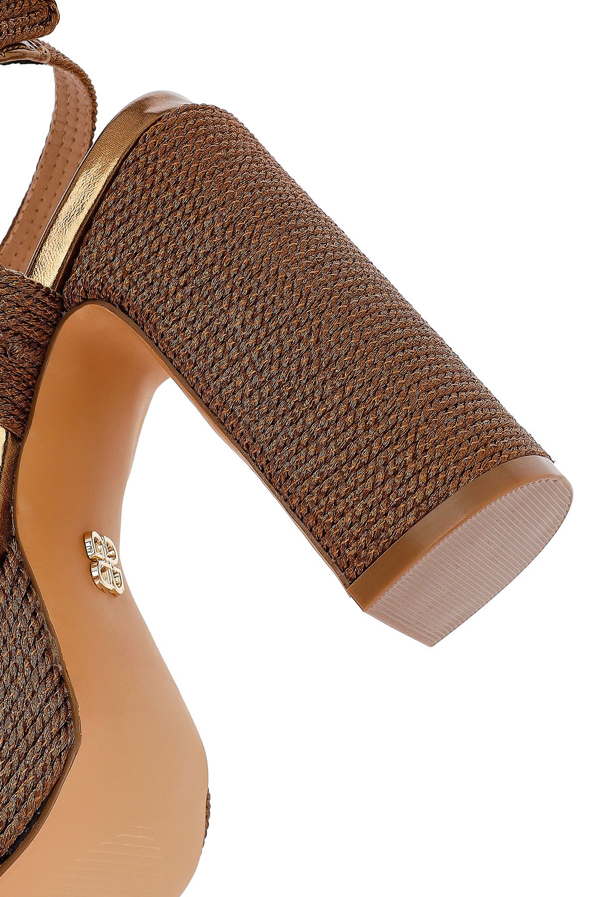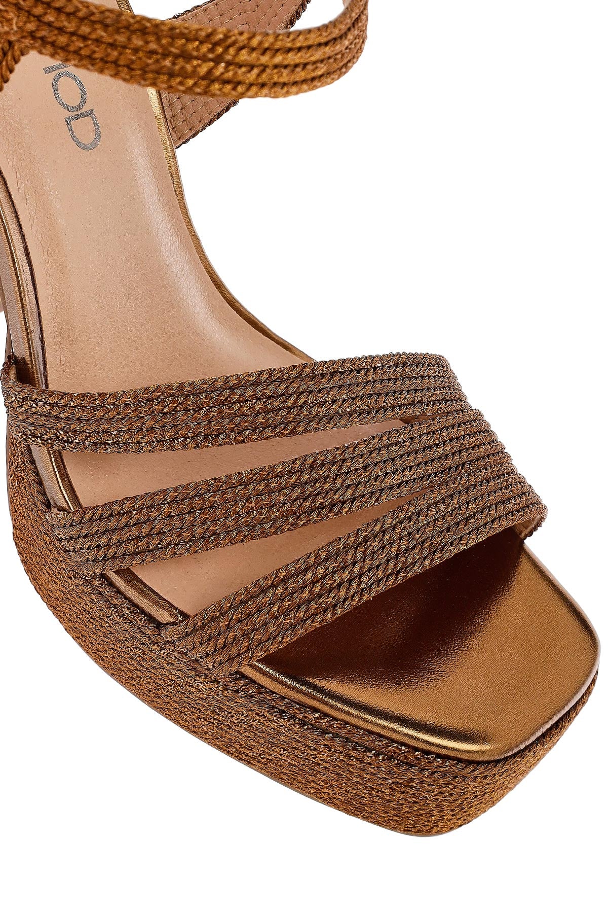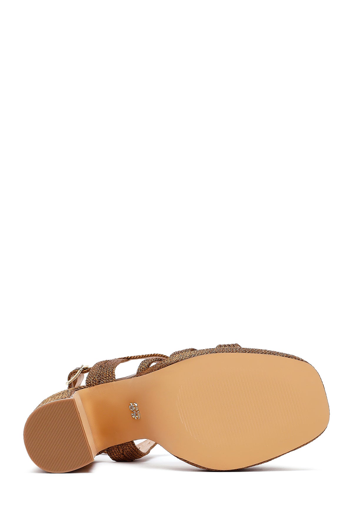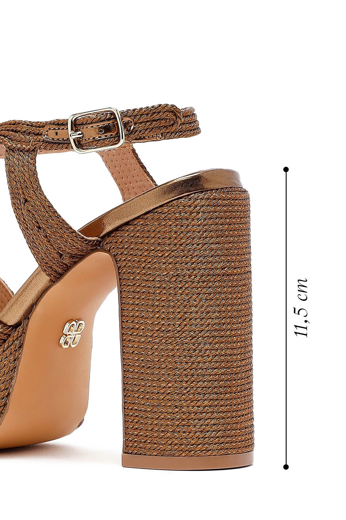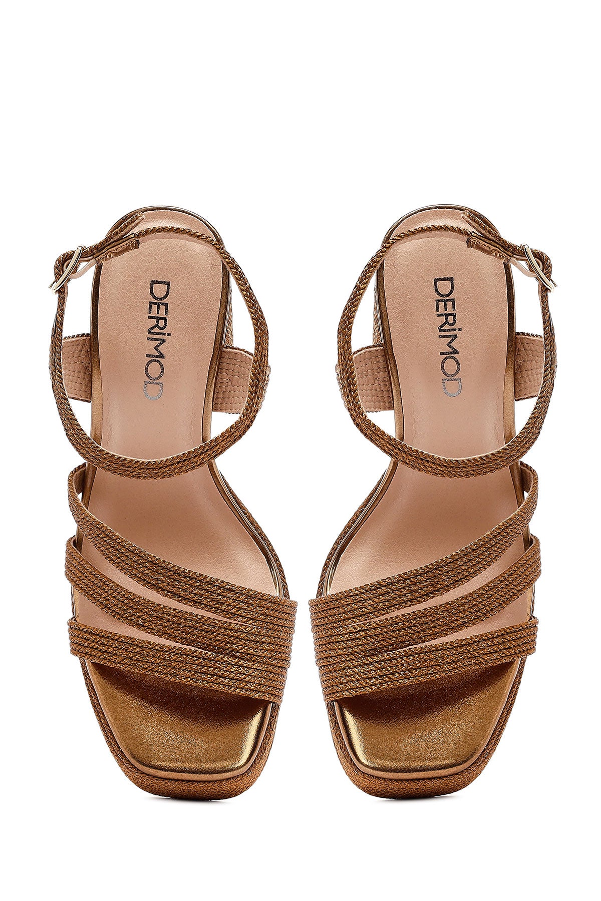 From Derimod's summer collection, the straw-textured bronze platform sandal model offers a dazzling design with its 11.5 cm high thick heel. Featuring an adjustable ankle buckle and cross straps for a modern look, the model provides a stylish wear with its synthetic inner lining. Thanks to its thick platform sole, the sandal offers a height advantage and a wide range of use from summer dresses to skirts, shorts, and pants. It can be especially preferred for evening invitations and special occasions during the summer season. Product code: 25SFD4433M7