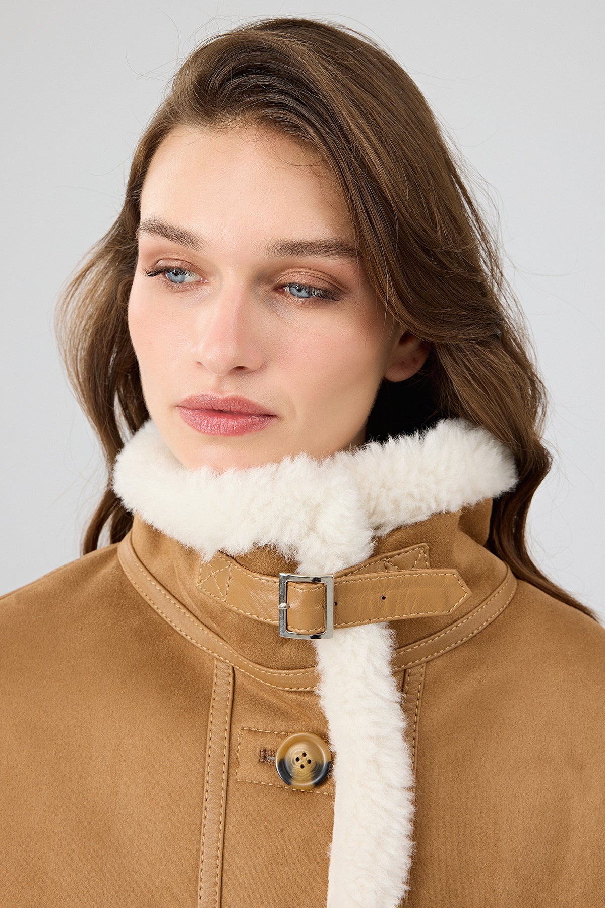 Express your style with the Oslo Women's Camel Double-Sided Teddy Leather Coat that combines Derimod's elegance and sophistication. Product code: 25WGP5320FF BCM