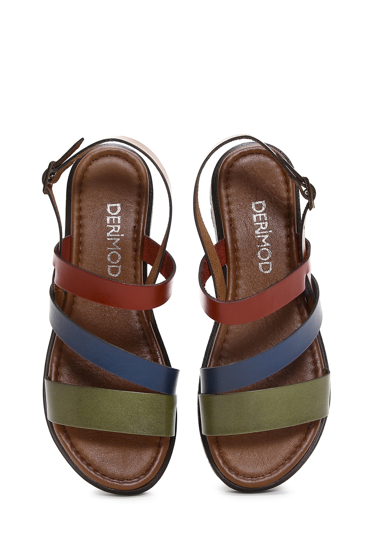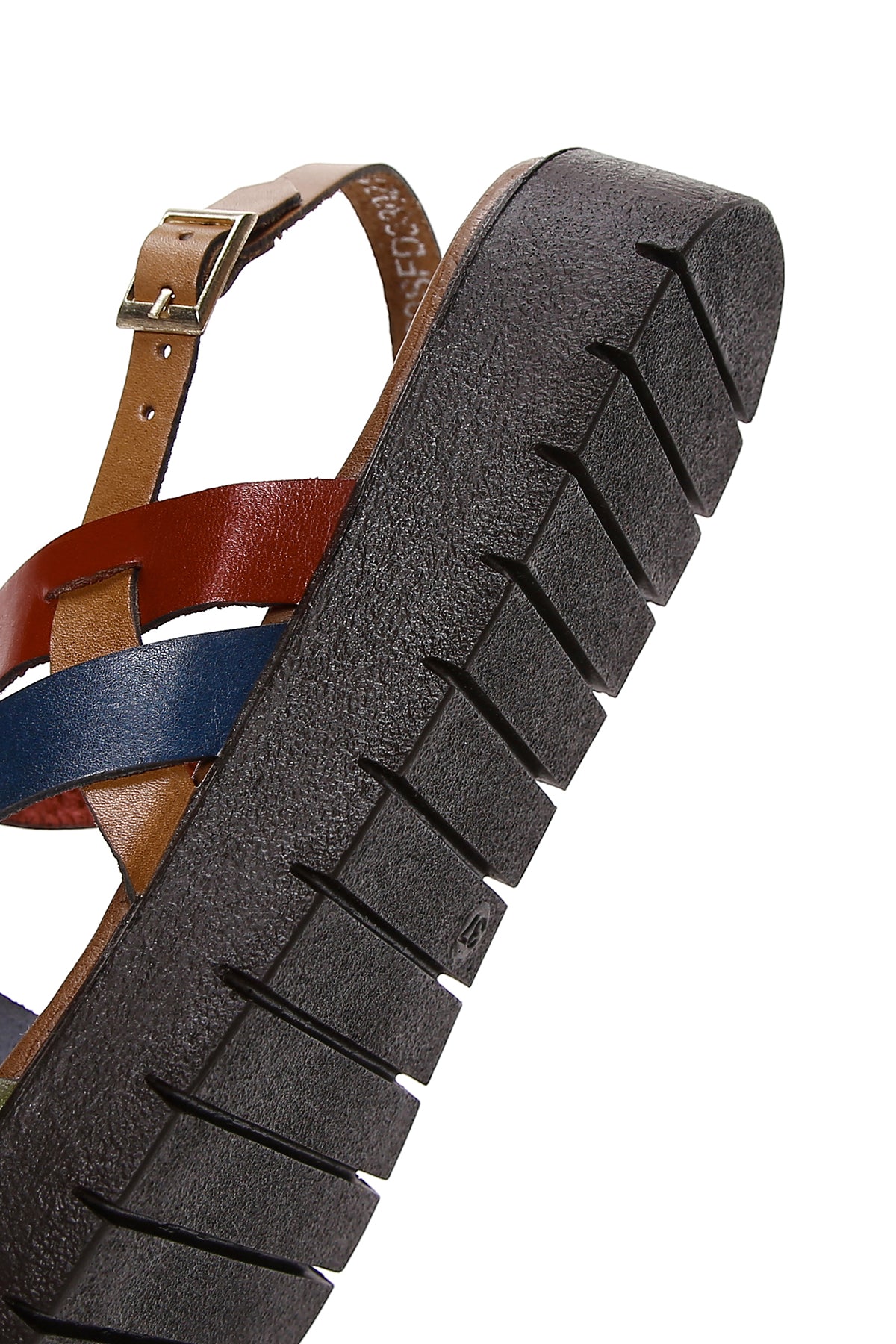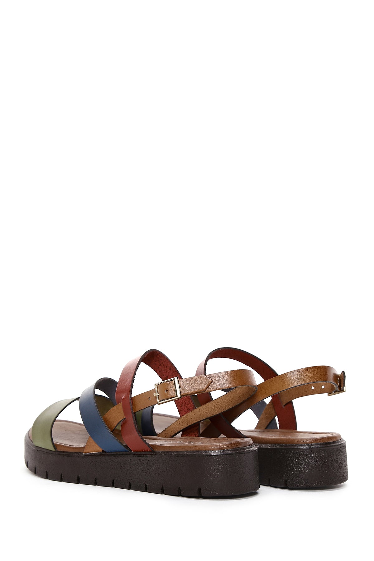 Kadın Çok Renkli Kalın Tabanlı Deri Bodrum Sandalet