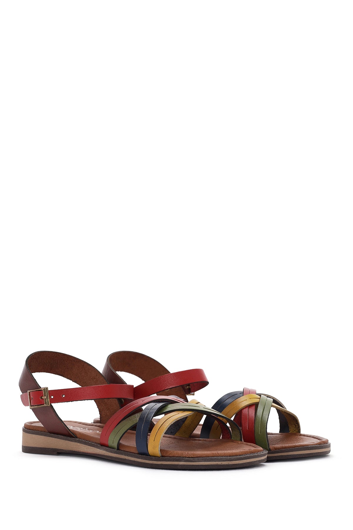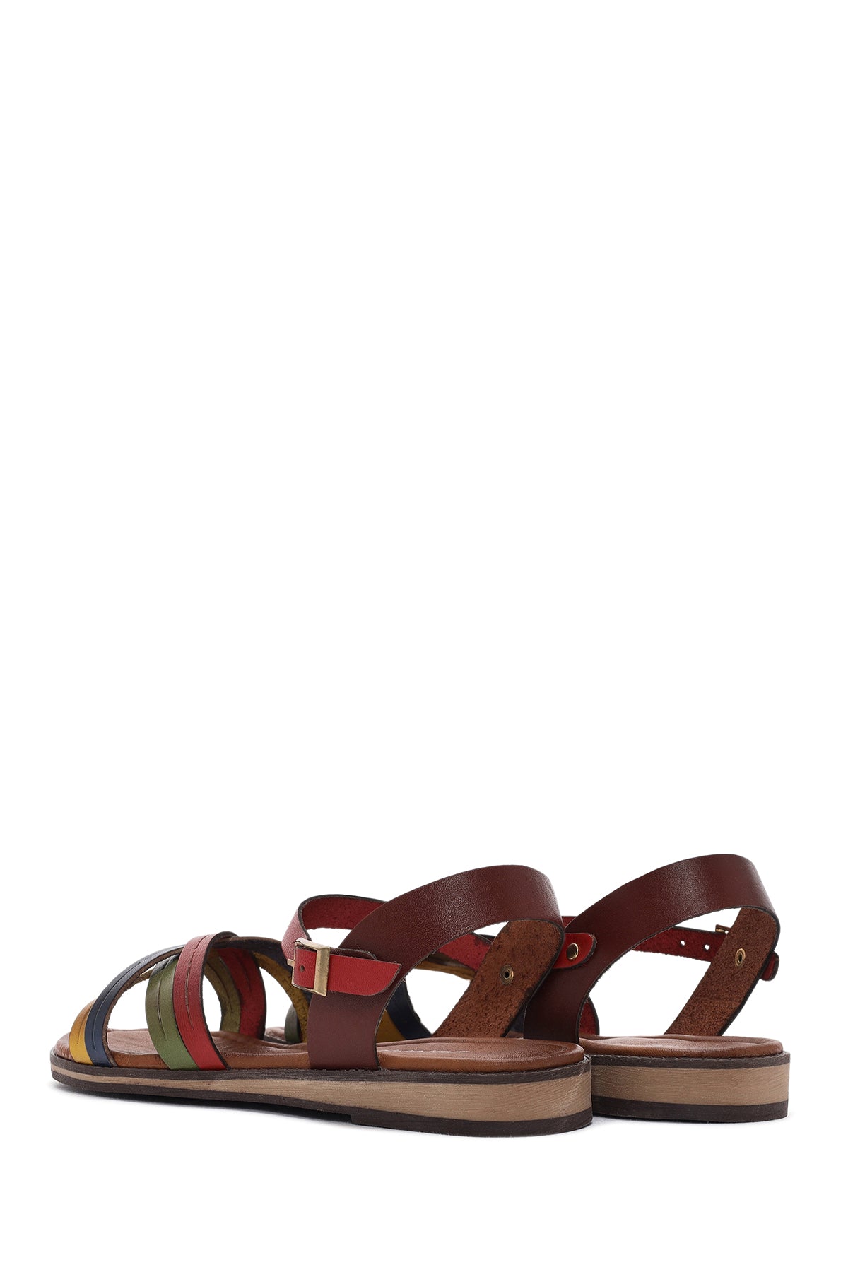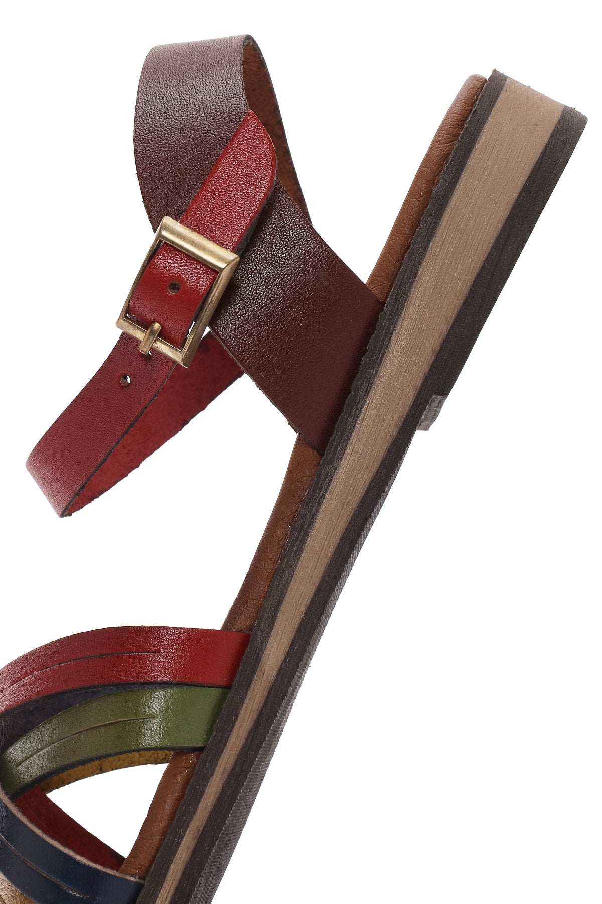 Kadın Çok Renkli Tokalı Deri Bodrum Sandalet