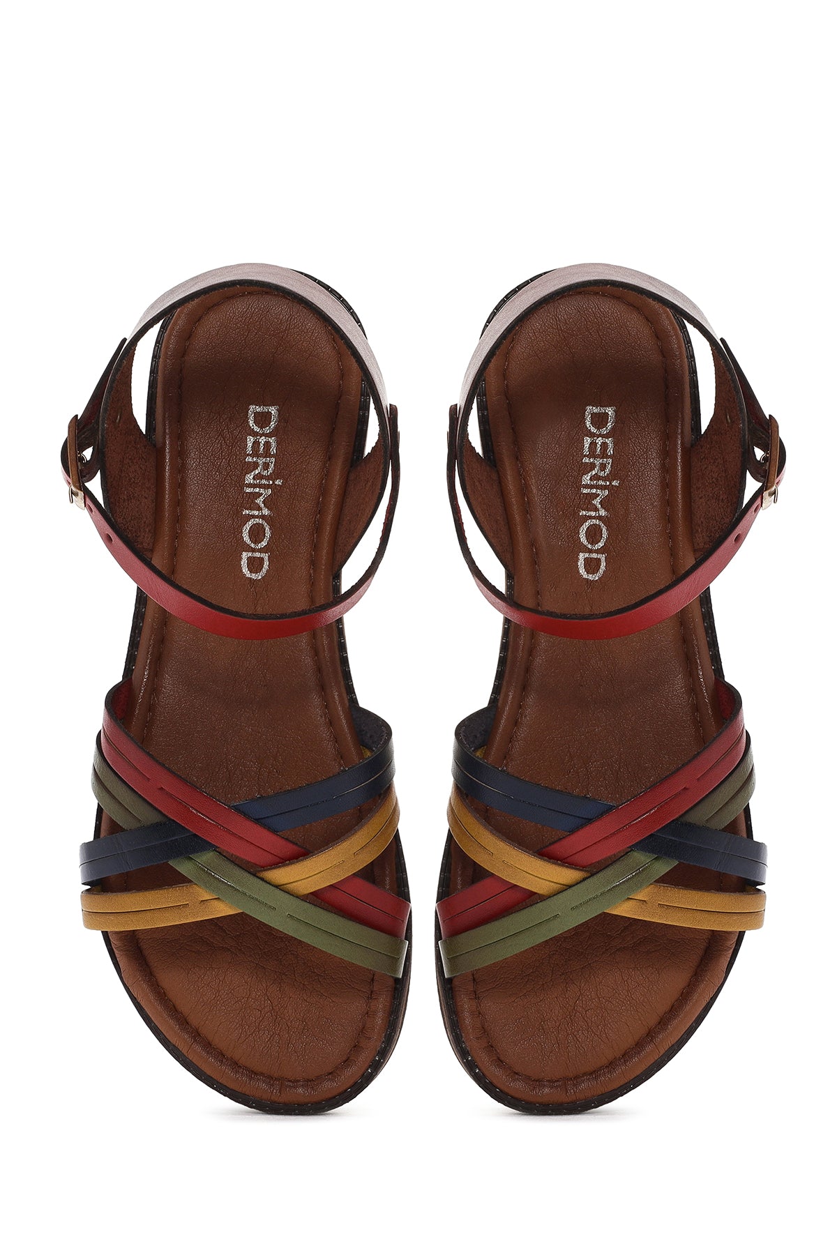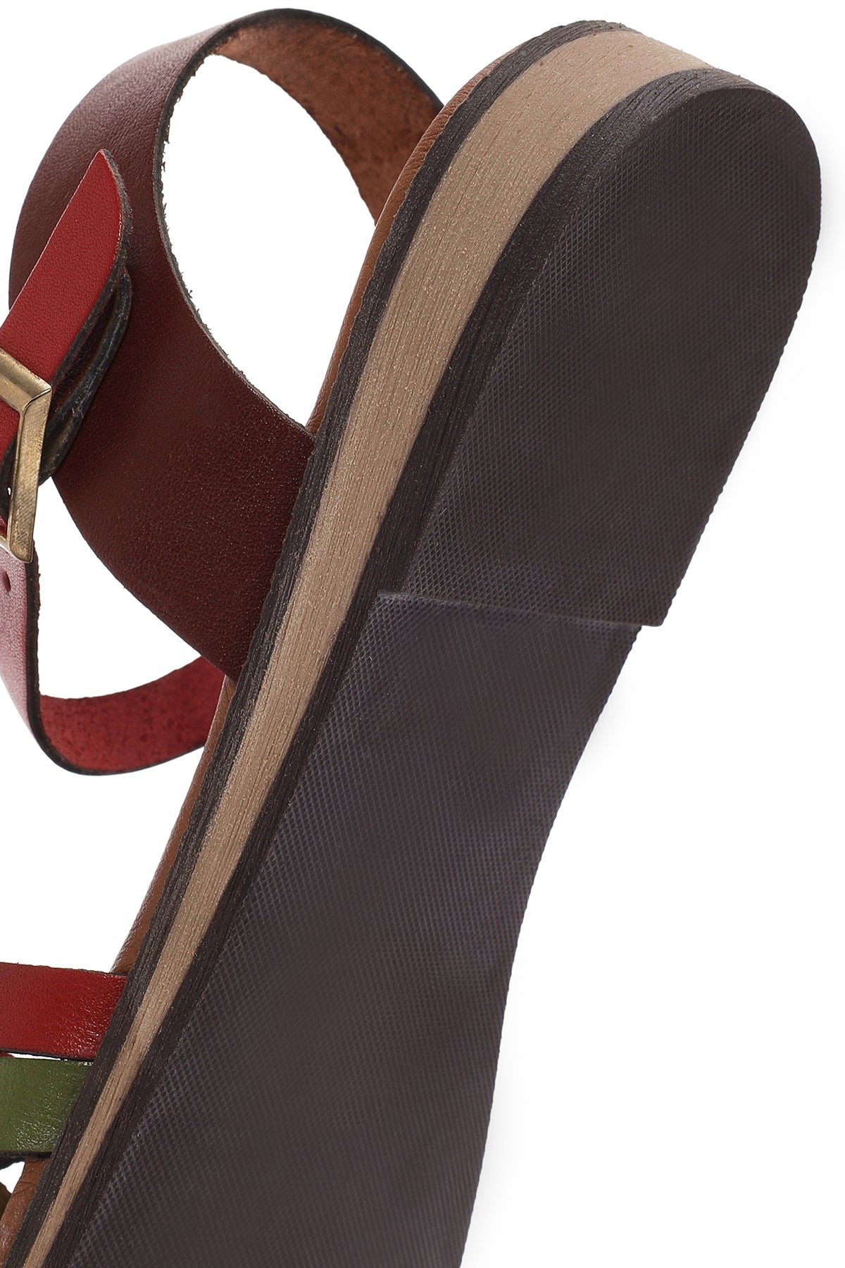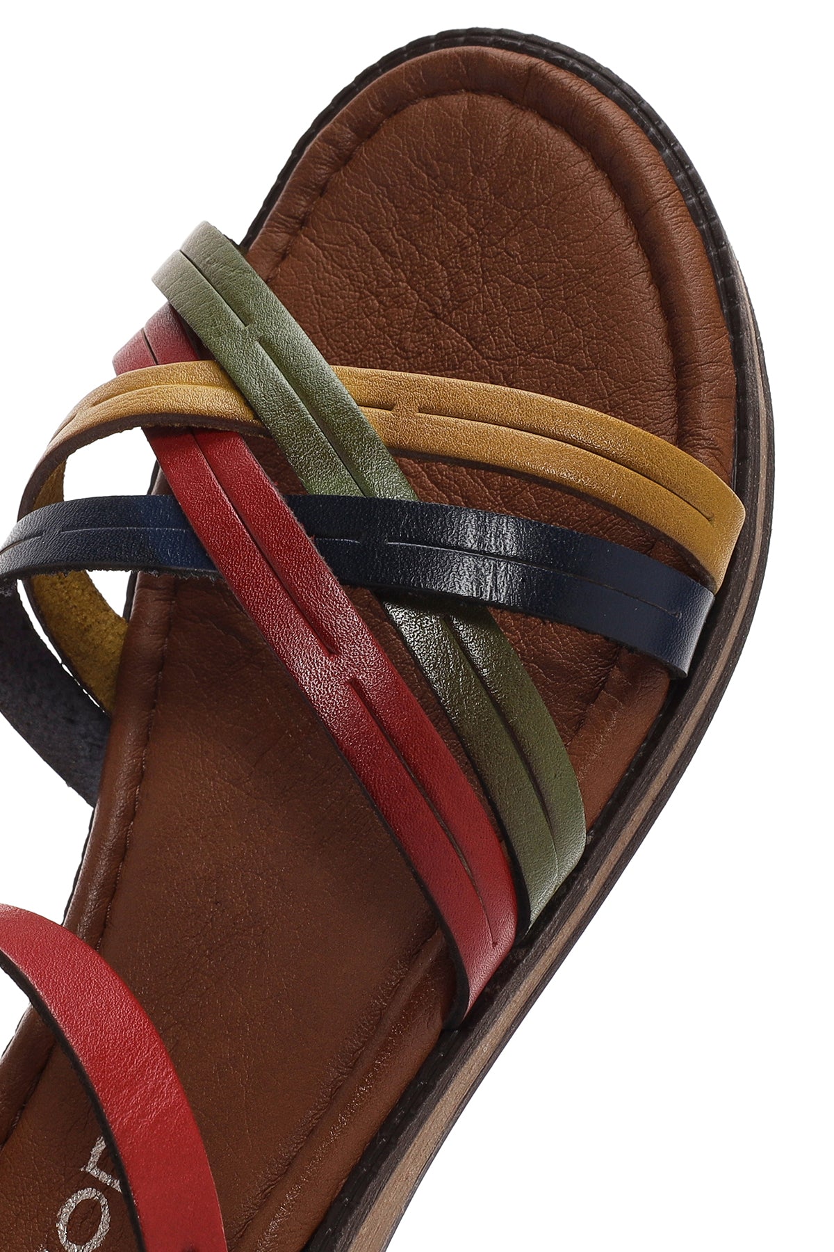 Kadın Çok Renkli Tokalı Deri Bodrum Sandalet