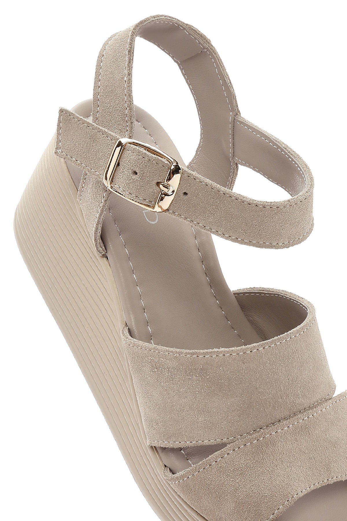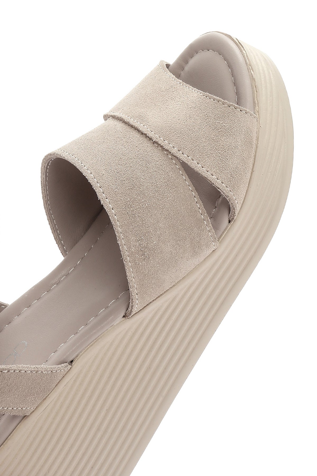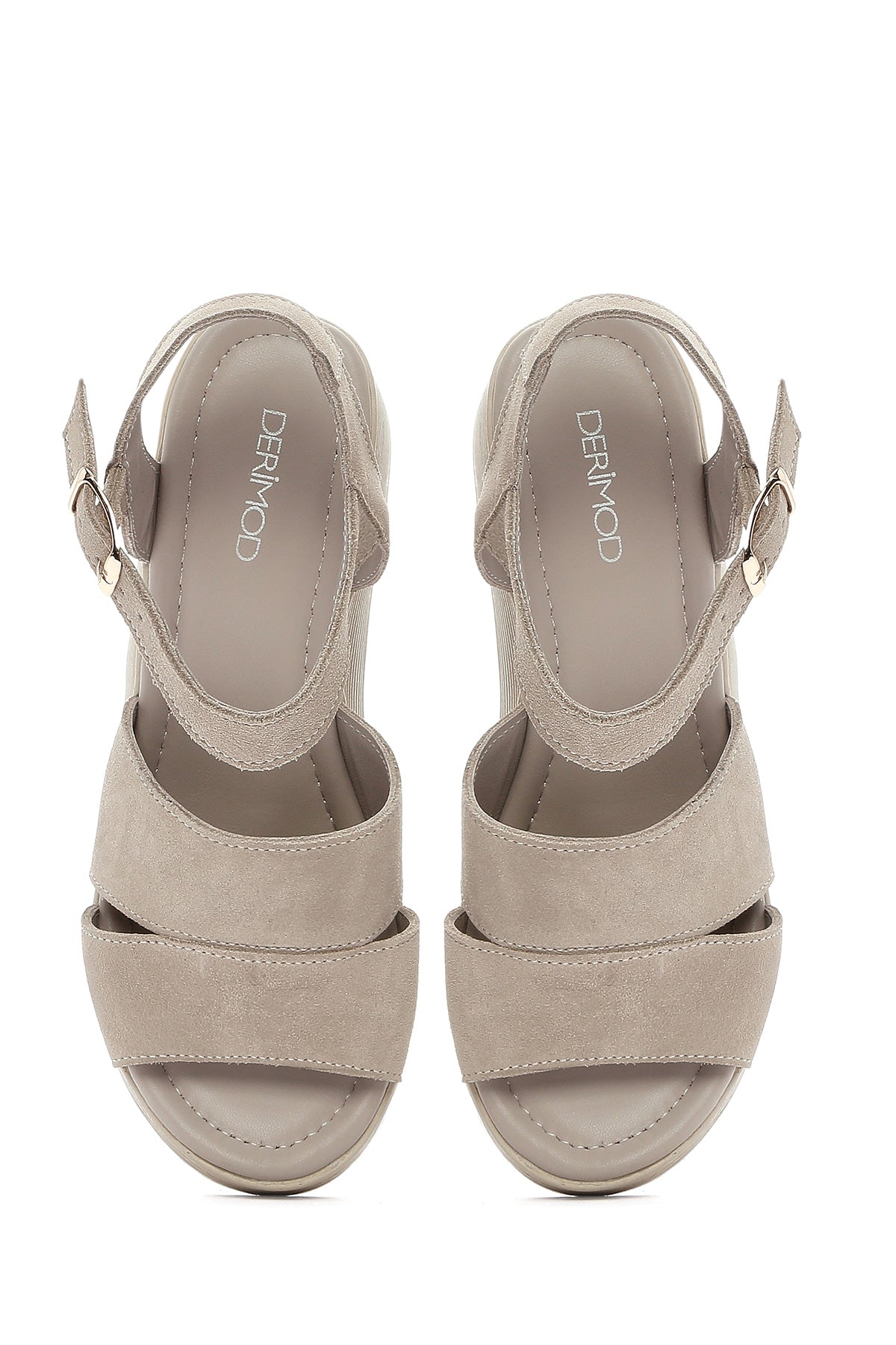 Show off your style with Derimod's Women's Gray Wedge Heeled Suede Leather Sandals, which offer elegance and style together. Product code: 25SFD181110 T9