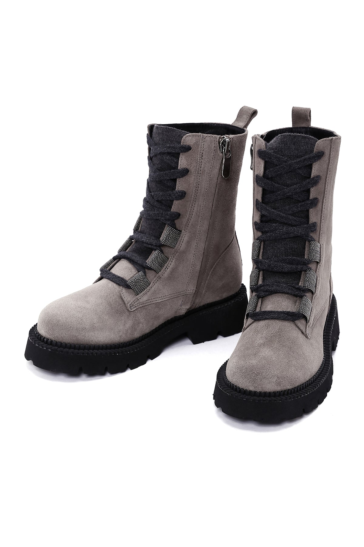 Show off your style with Derimod's Women's Gray Suede Leather Zippered Boots that combine style and elegance. Product code: 23WFD120710 13