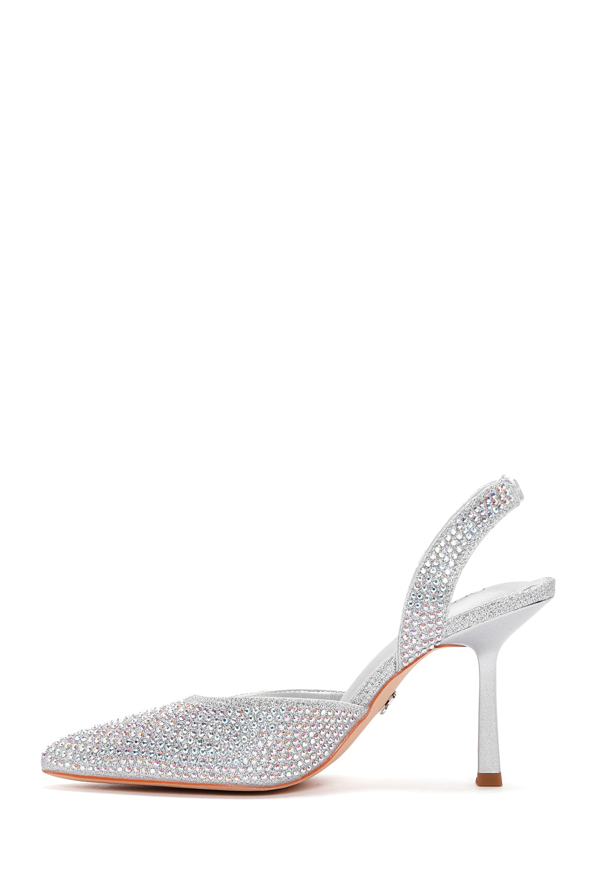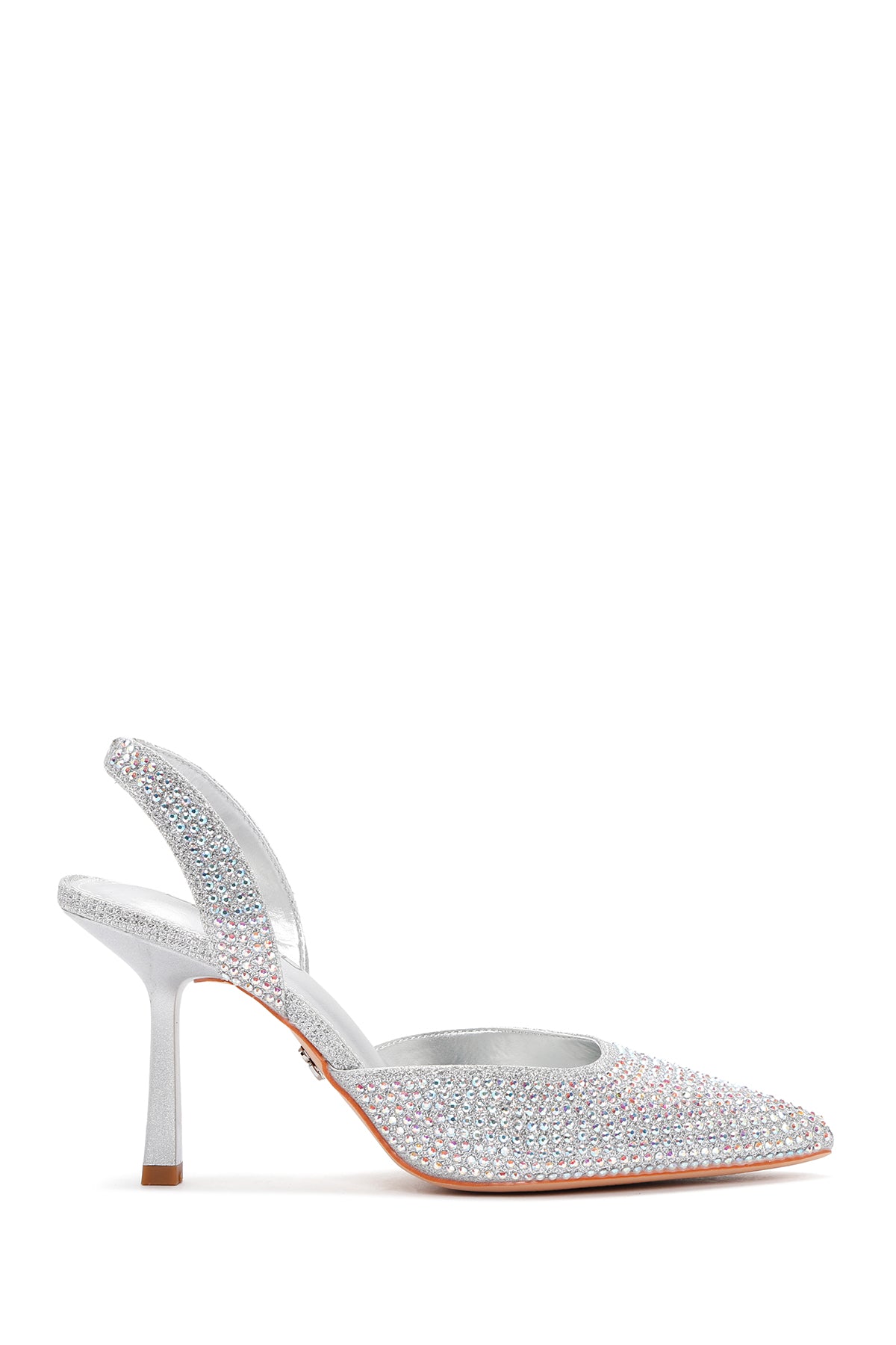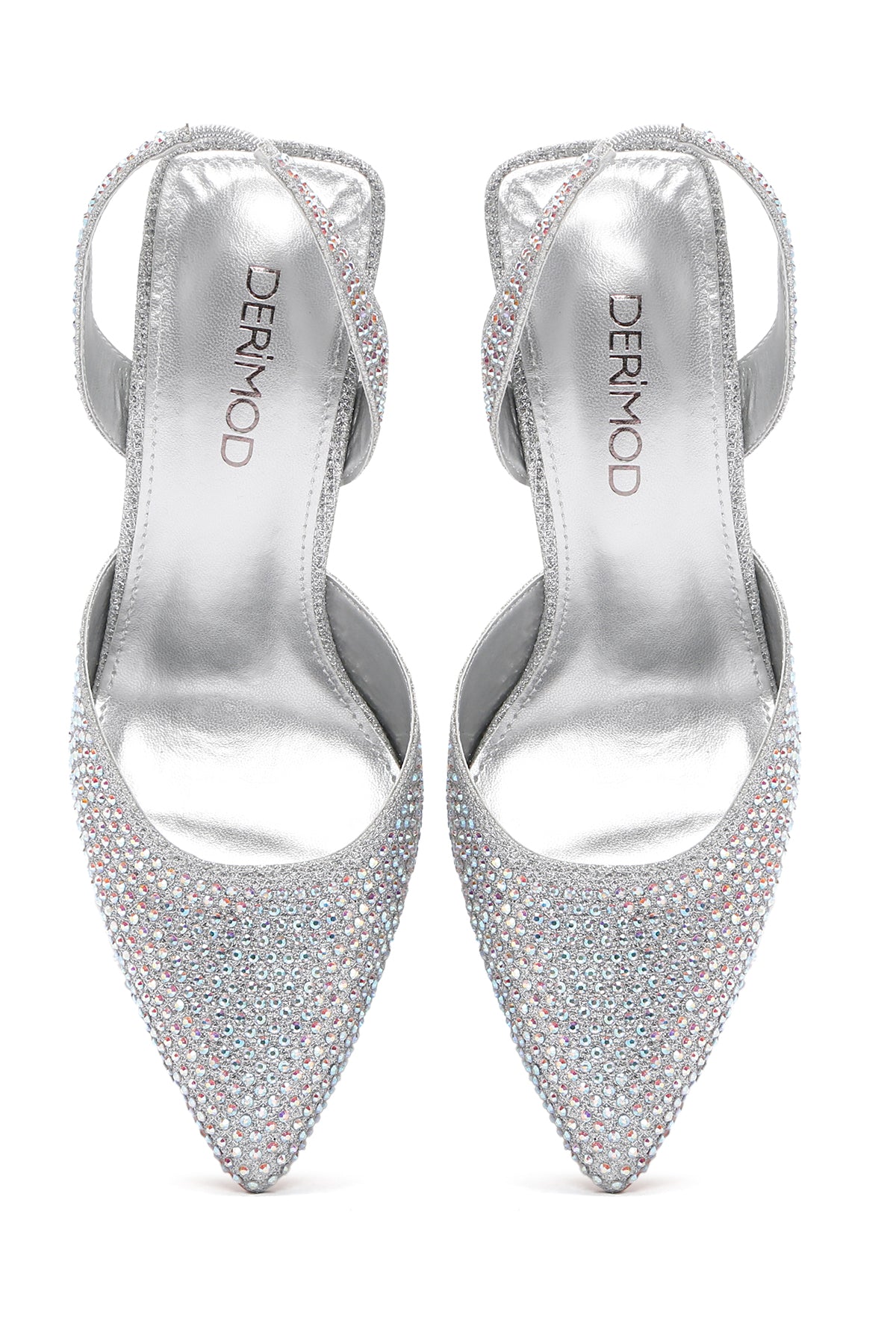 Women's Grey Stoned Open Back Thin Heeled Shoes