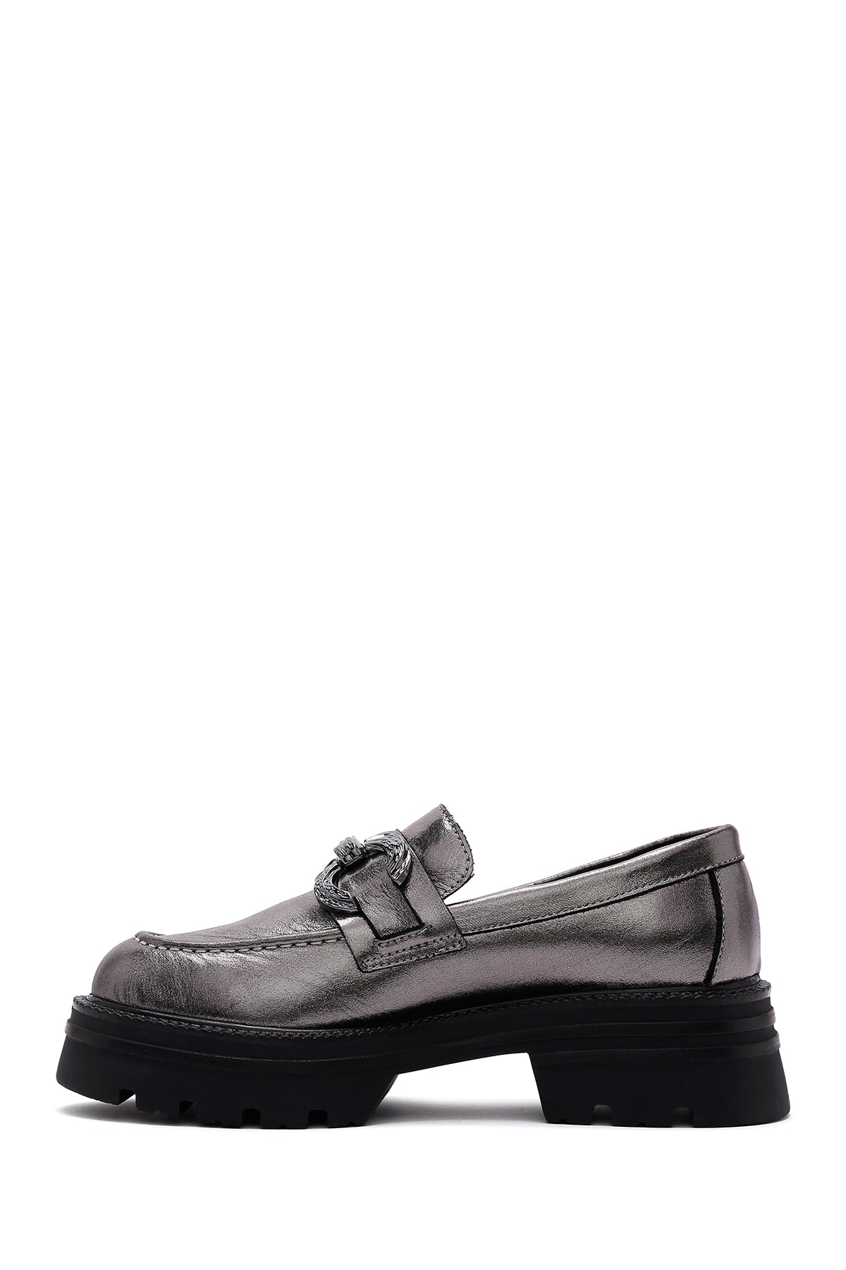 Show off your style with Derimod's Women's Silver Leather Buckle Casual Loafer, which offers style and elegance together. Product code: 23WFD200532 09
