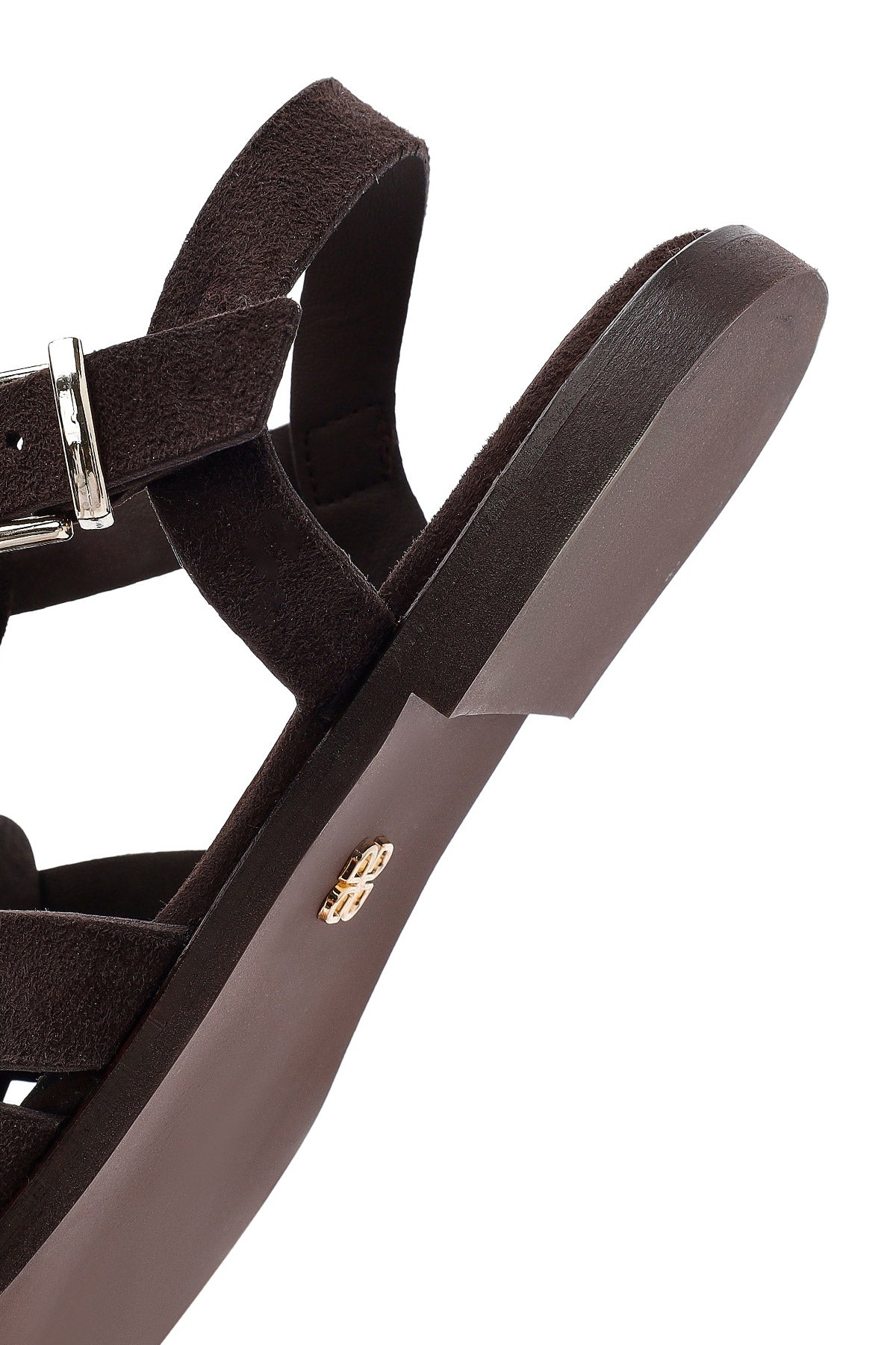 Derimod's elegance and style together Woman Brown Suede with Ankle Strap Leather Show off your style with sandals. Product code: 25SFD160810 25