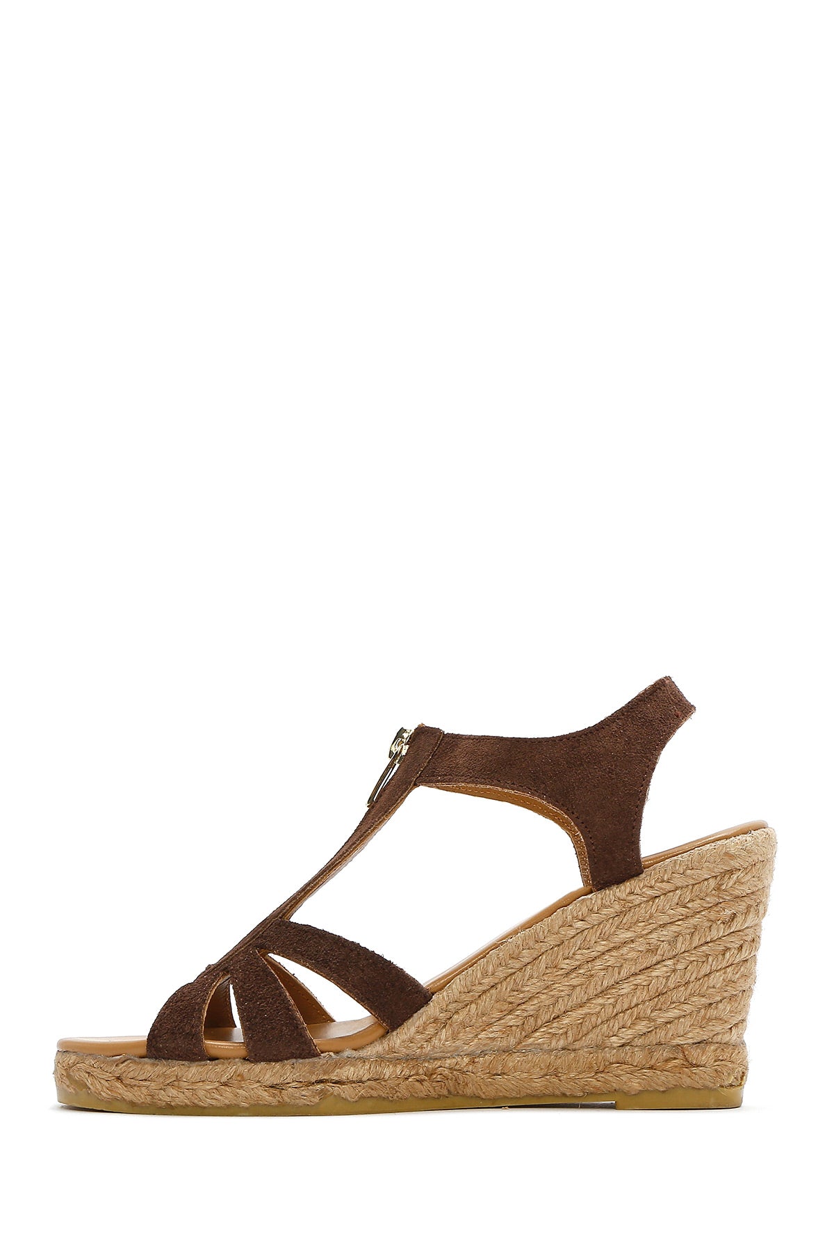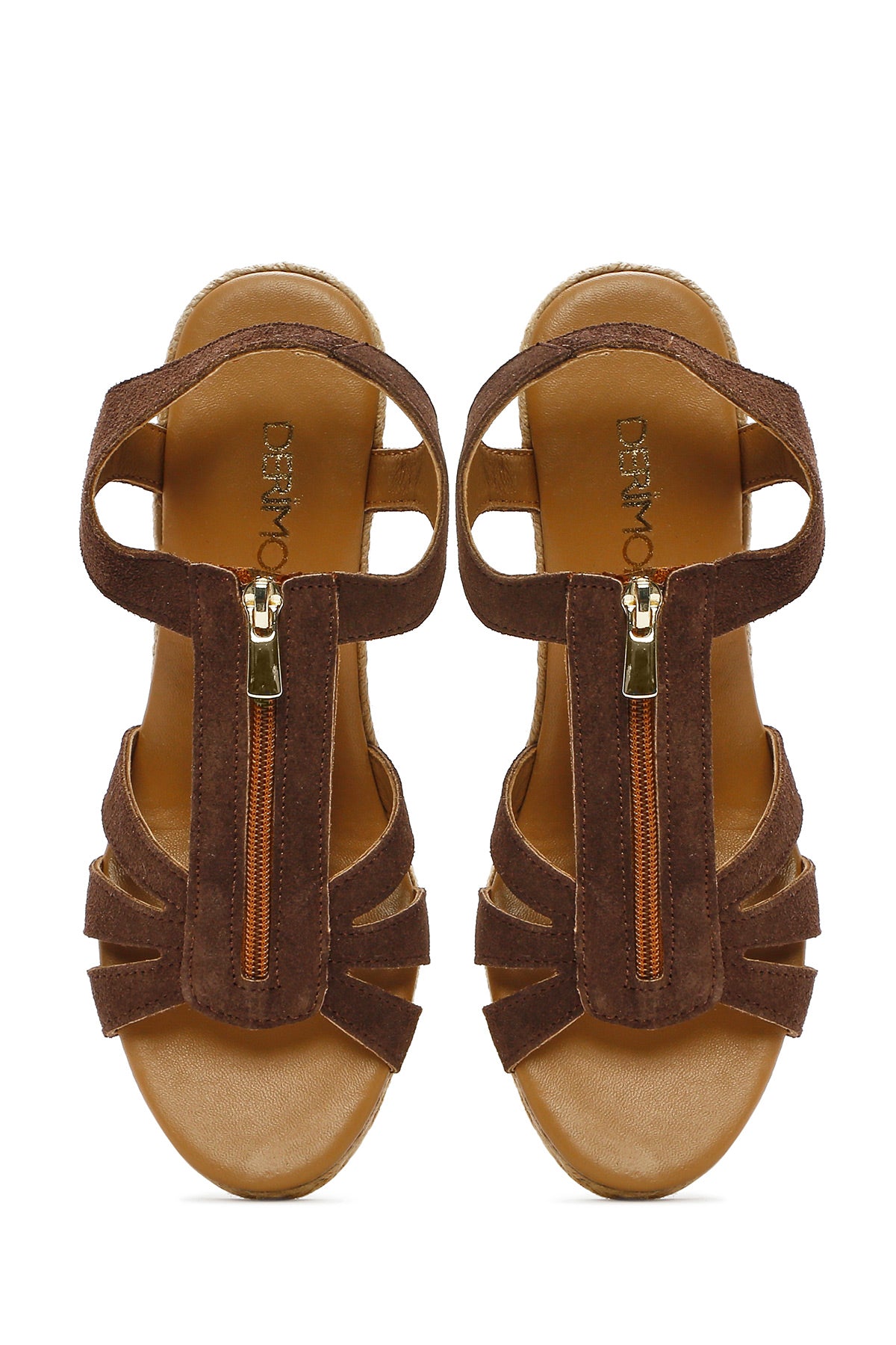 Show off your style with Derimod's Women's Brown Zippered Wedge Heel Suede Leather Espadrilles, which combine elegance and style. Product code: 25SFD206010 25