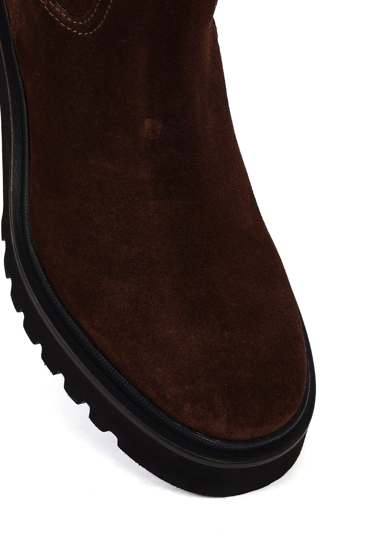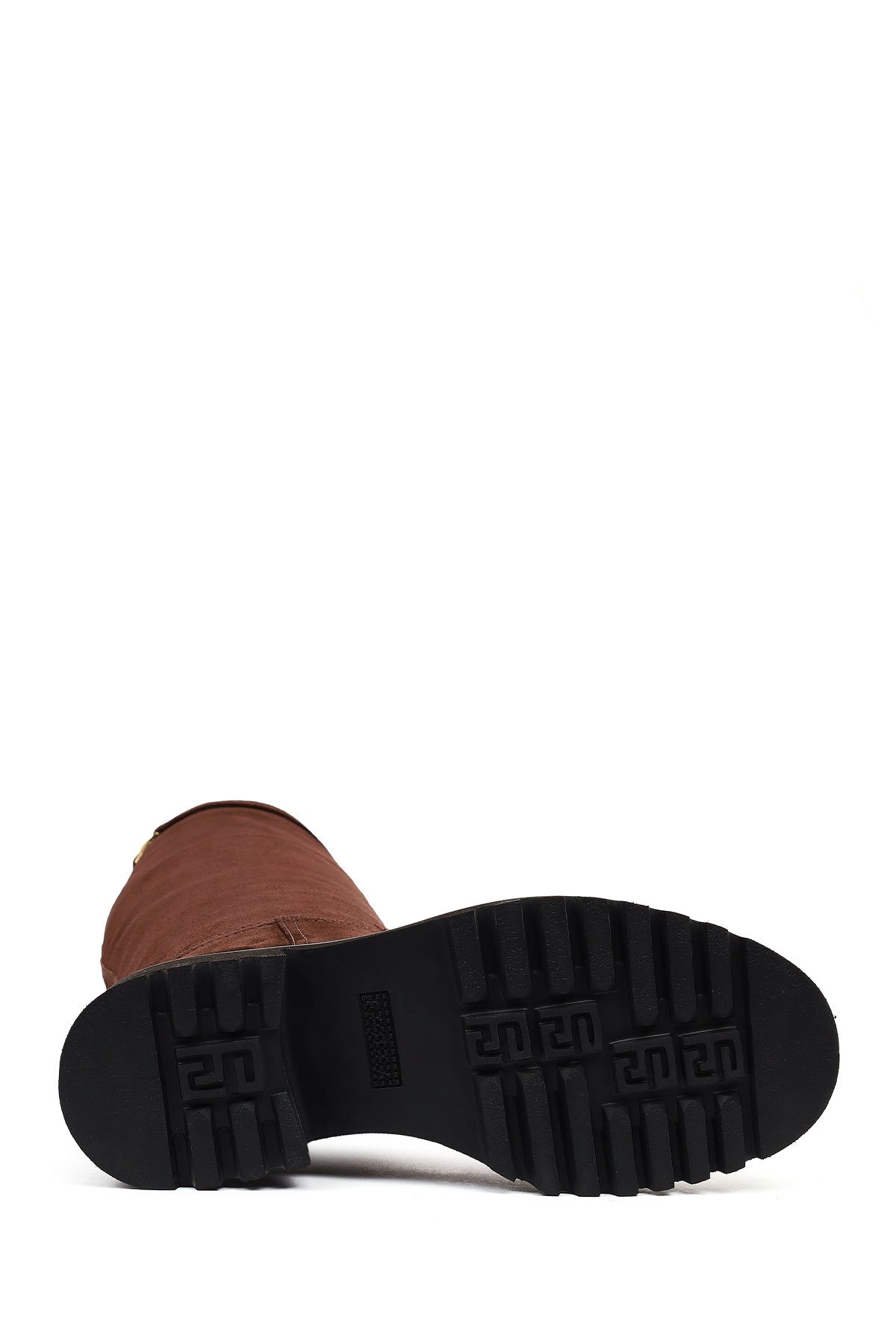 Kadın Kahverengi Fermuarlı Kalın Tabanlı Süet Deri Çizme