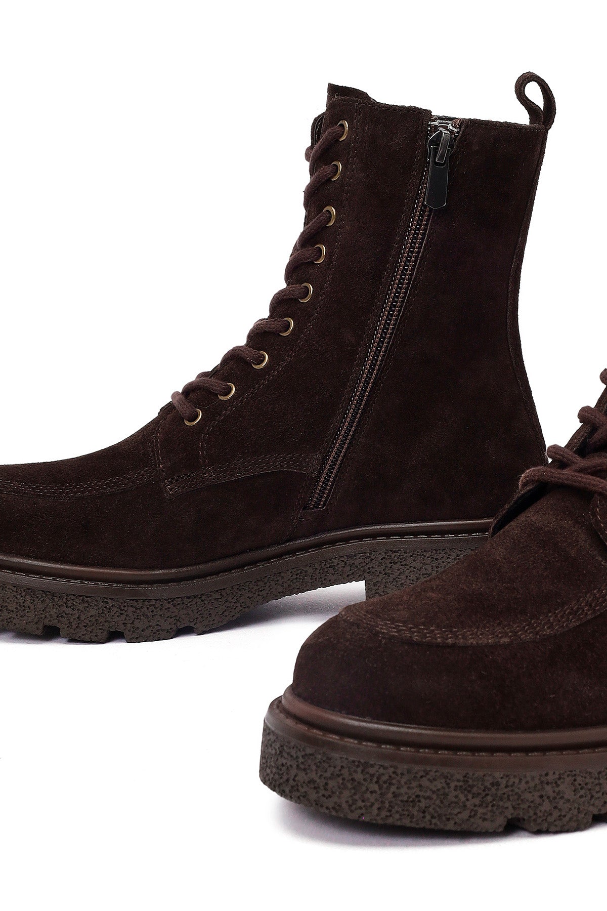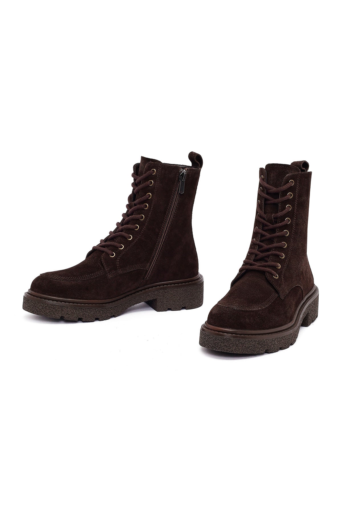 The modern combat boot model of the winter collection stands out with its brown suede leather upper surface and zippered design. The use of leather lining allows the foot to breathe, while the 2 cm thick sole height is ideal for use in winter conditions. Its lace-up structure and side zipper offer ease of dressing, and the combat style design is suitable for daily use. Especially in autumn and winter months, it perfectly matches both casual and elegant clothing combinations. Usage areas: Ideal for daily activities, city tours, and cold weather conditions. Product code: 25WFD511510