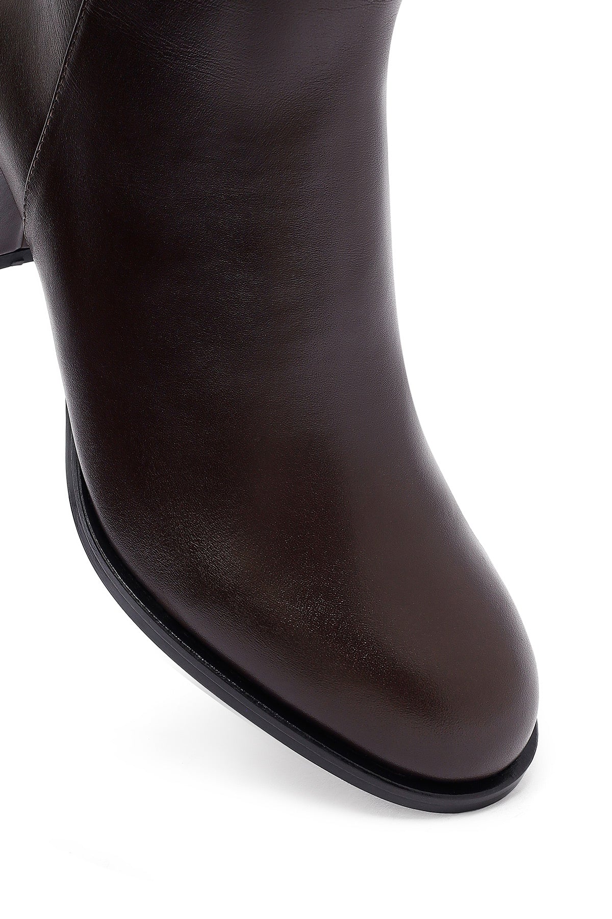 The women's brown leather boot model stands out with its thick-heeled design, offering a reliable choice in cold weather conditions. Made from Vidala leather material, the boot gains a classic and elegant look with its dark brown tone. With a heel height of 6.5 cm, the model presents a balanced structure in terms of both posture and style, reflecting a modern boot silhouette with its ankle-length cut. The zipper detail positioned on the side provides ease of dressing while also becoming a functional part of the design. The leather-textile inner lining combination supports breathability of the foot, offering comfort during long-term use. The thick-heeled structure ensures balanced posture while walking, allowing safe steps in daily activities. The smooth leather surface offers ease of care while also providing durability advantages. The zippered women's leather boot can be preferred for a wide range of uses, from work environments to social gatherings. This model in the heeled boot category preserves the classic lines of the shoe, making it a candidate to be one of the essential pieces of the contemporary women's wardrobe. The dark brown color choice harmonizes with combinations in different color palettes, providing a versatile usage experience. Product code: 25WFD132618