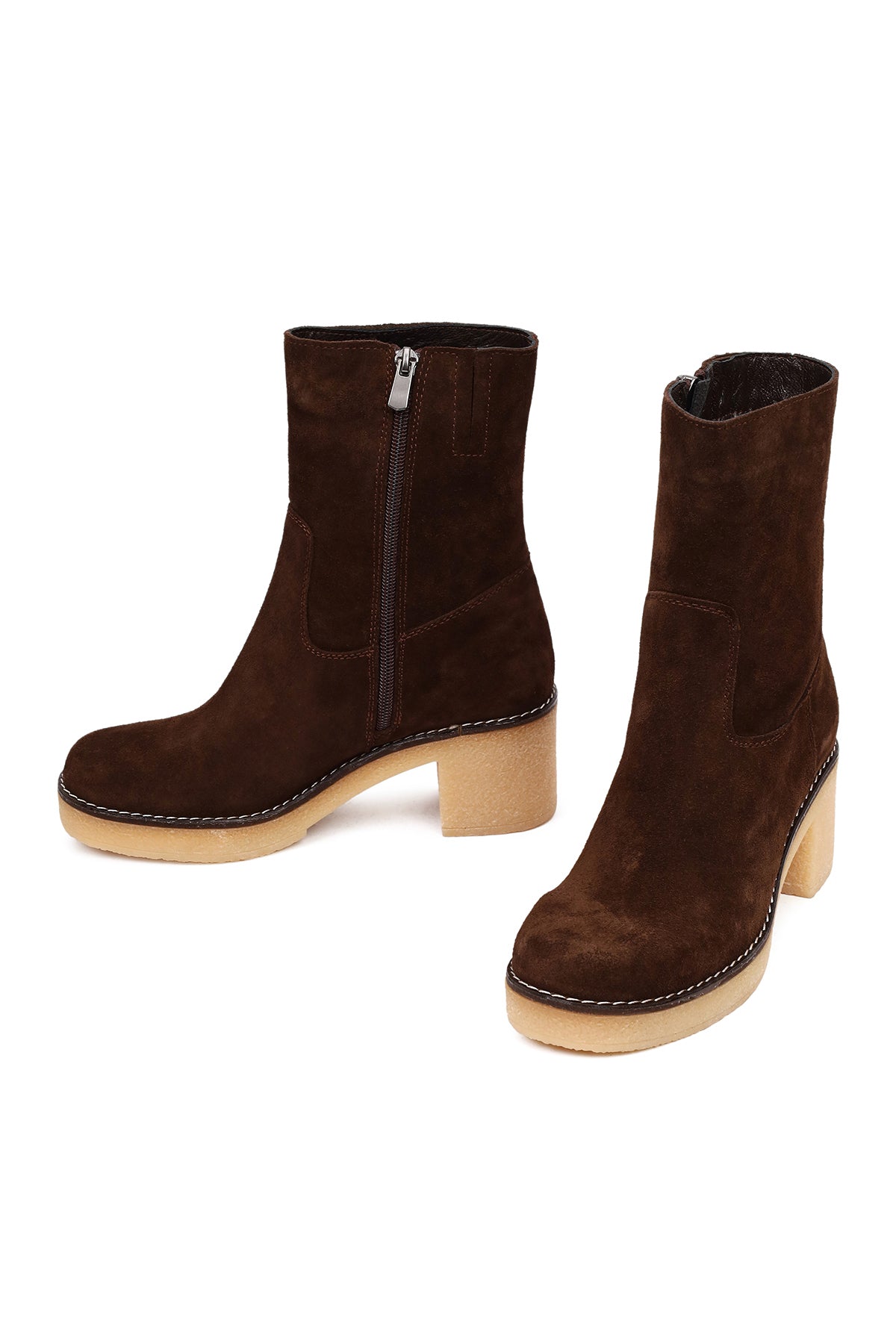Express your style with the Women's Brown Zippered Thick-Heeled Suede Leather Boot that combines Derimod's Elegance and Sophistication. Product code: 25WFD151310 25