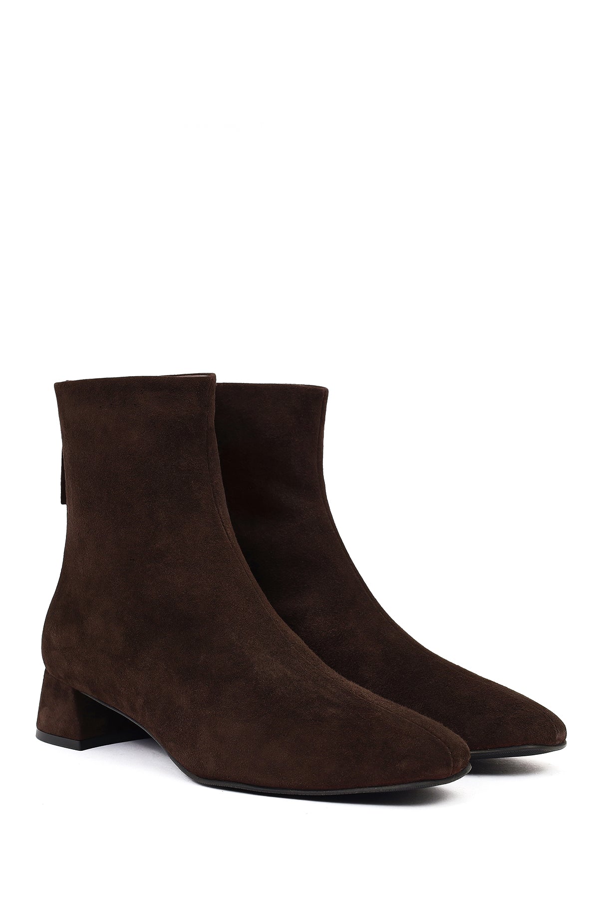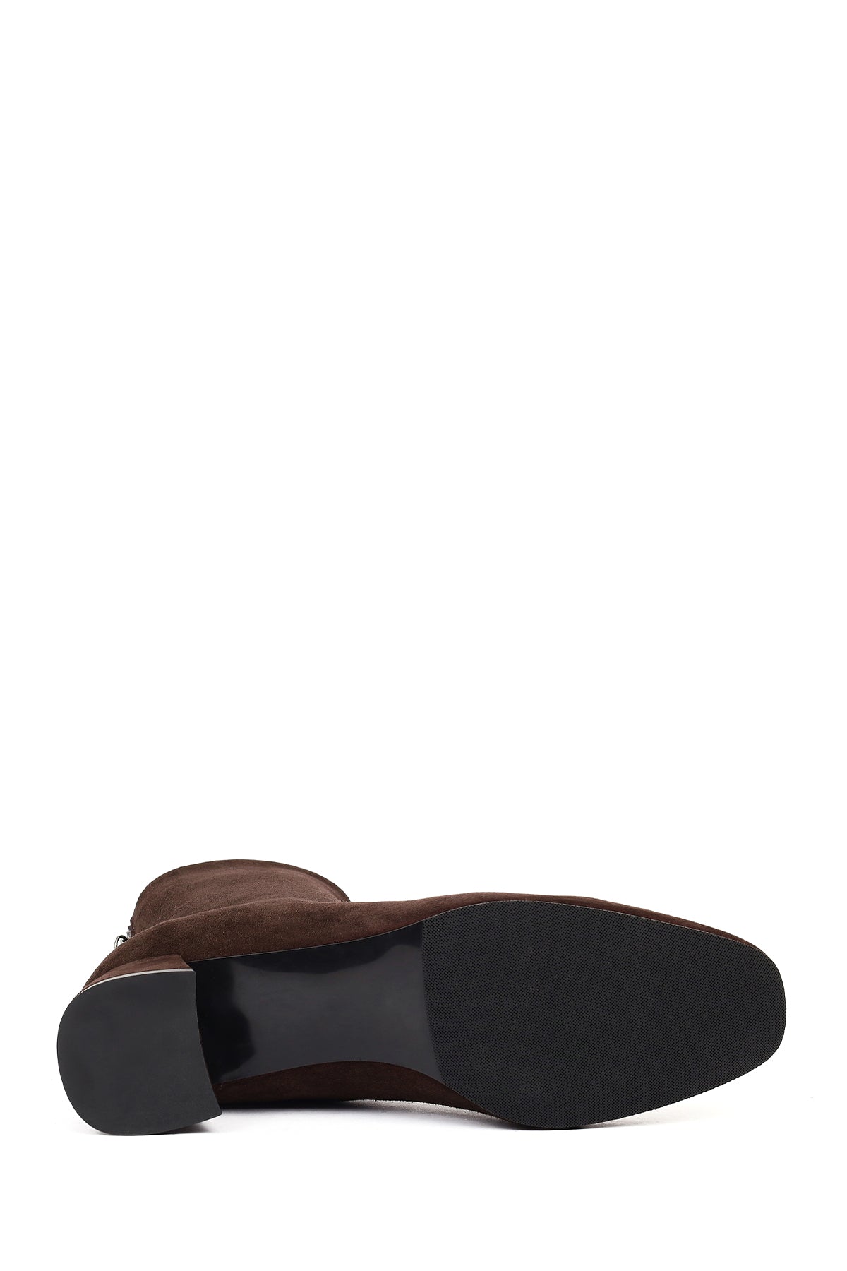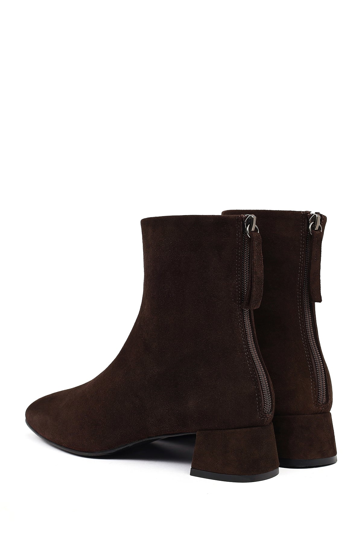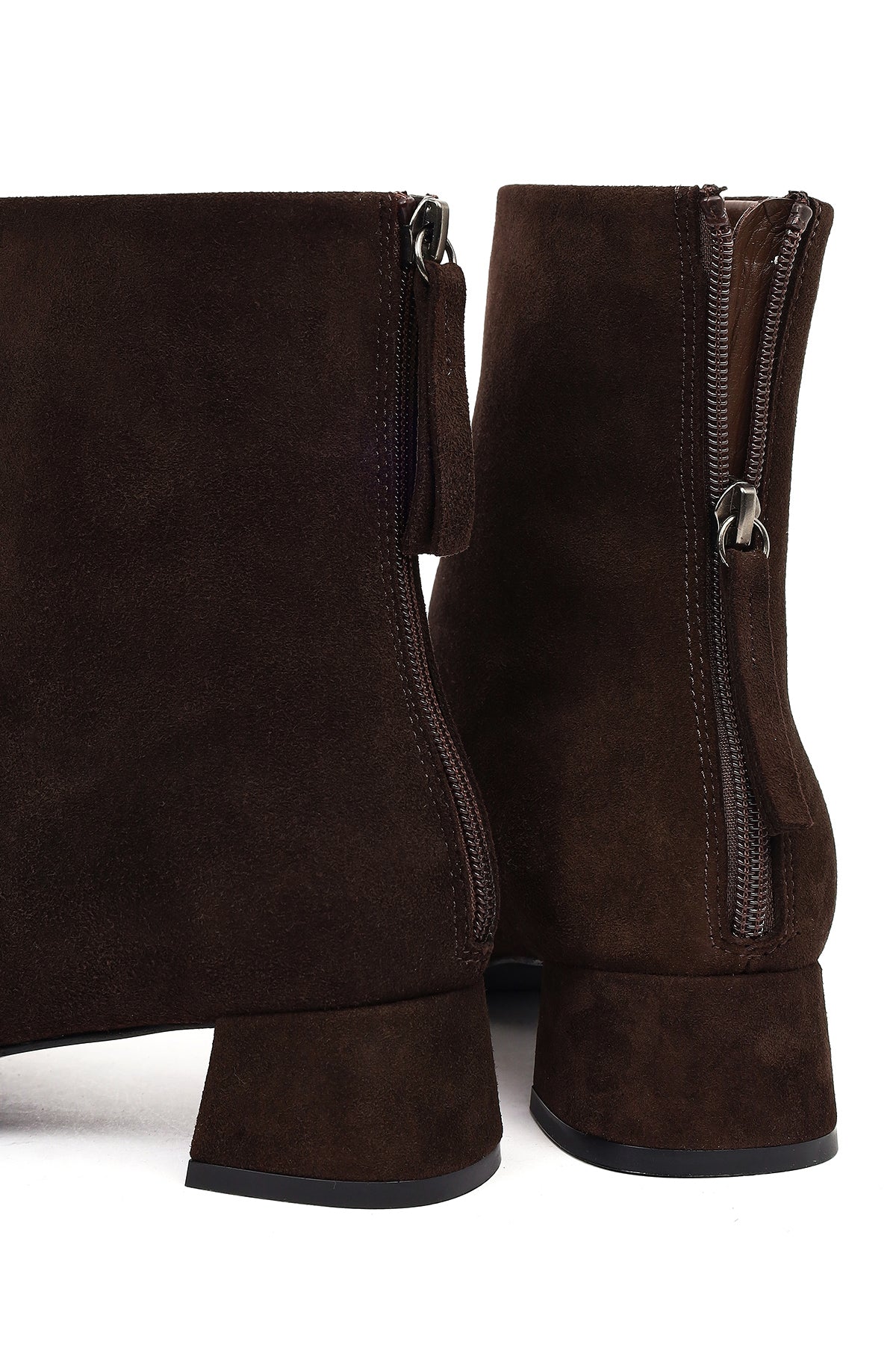 Kadın Kahverengi Fermuarlı Kısa Kalın Topuklu Süet Deri Bot