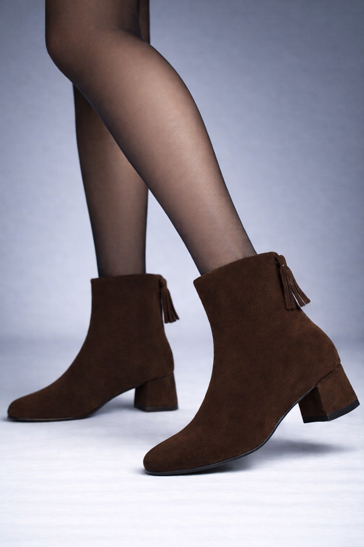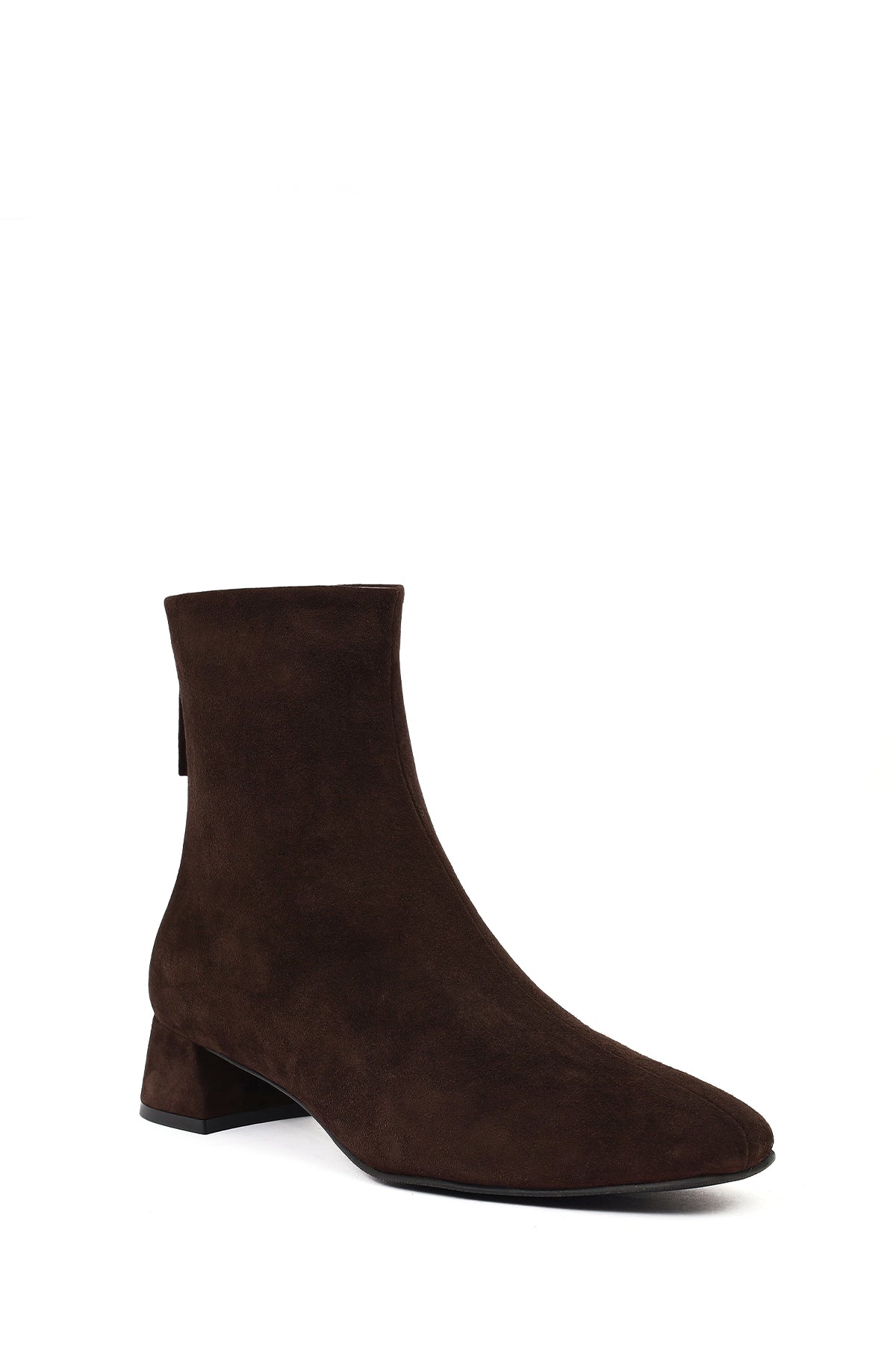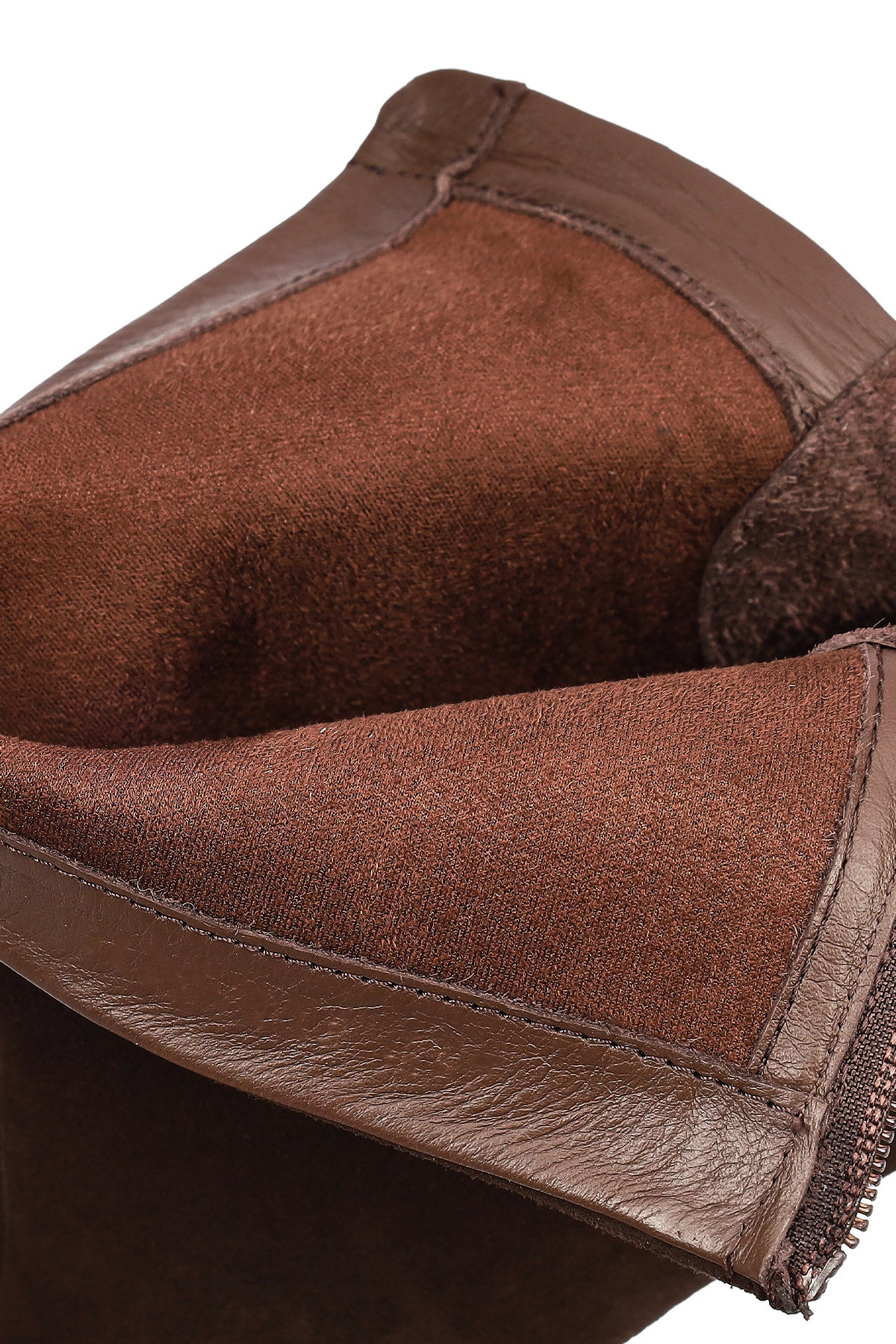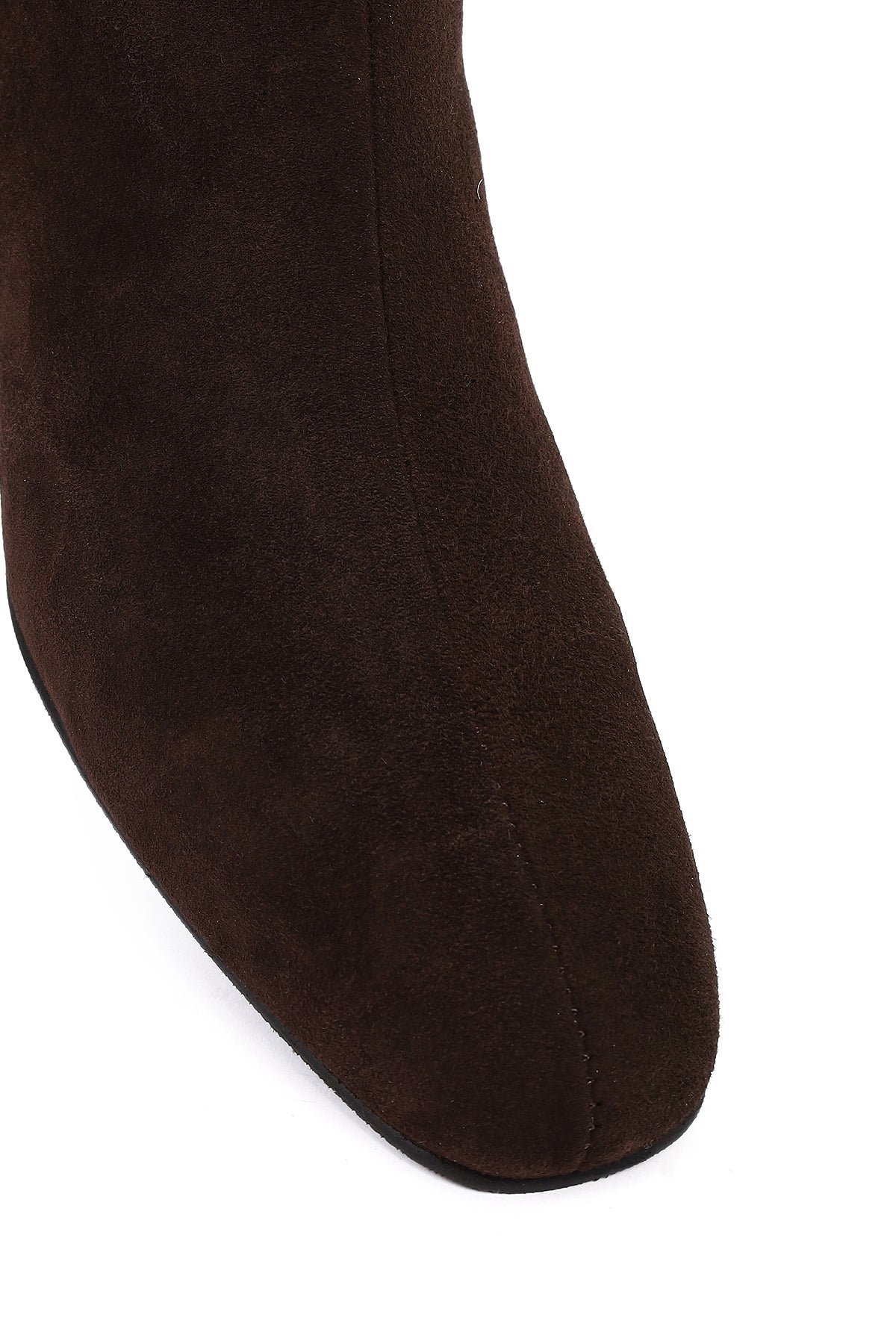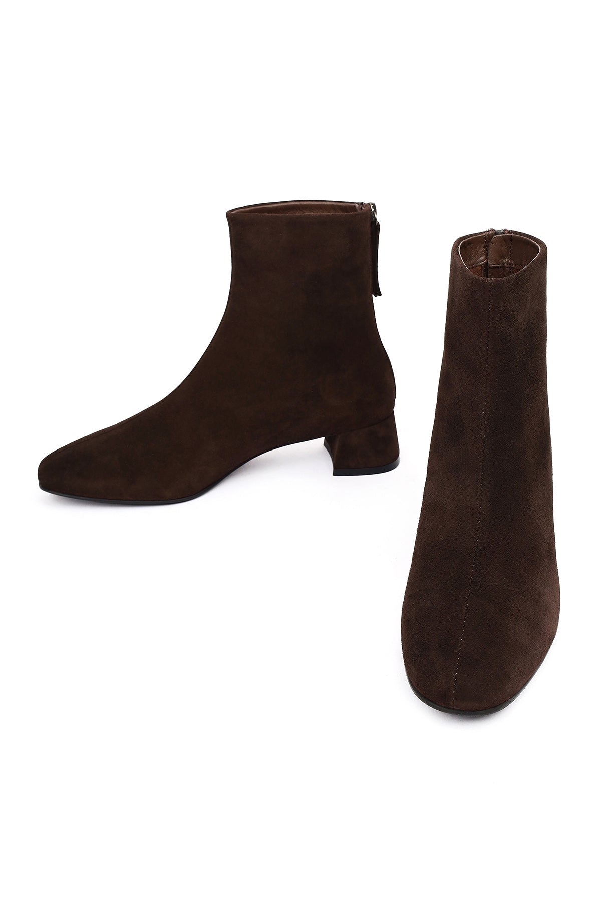 Kadın Kahverengi Fermuarlı Kısa Kalın Topuklu Süet Deri Bot