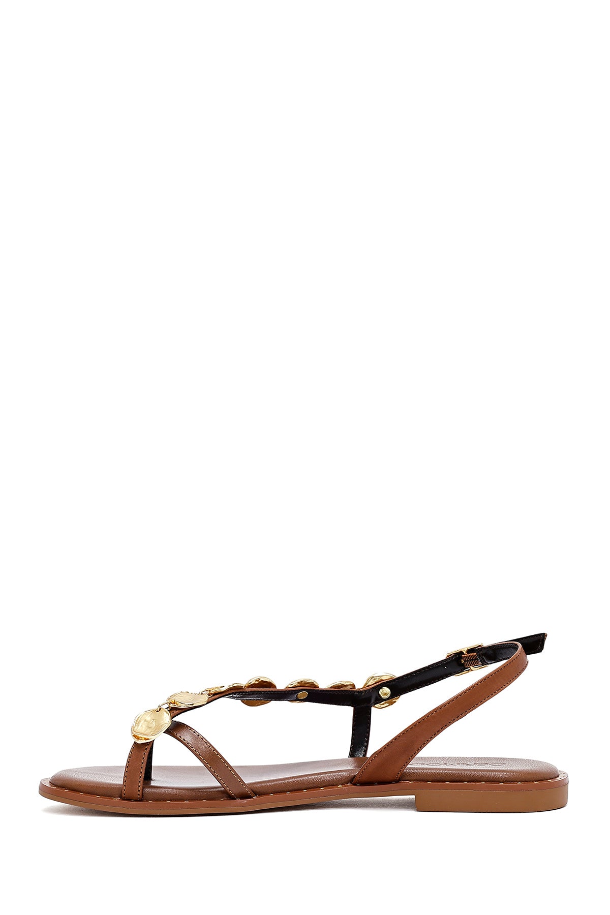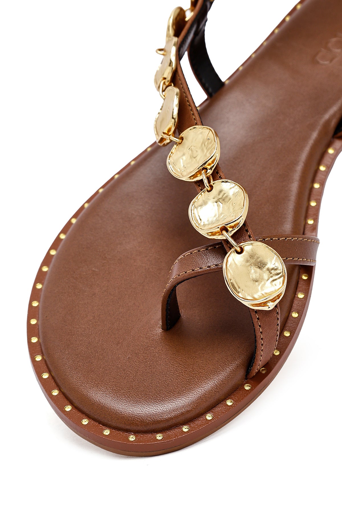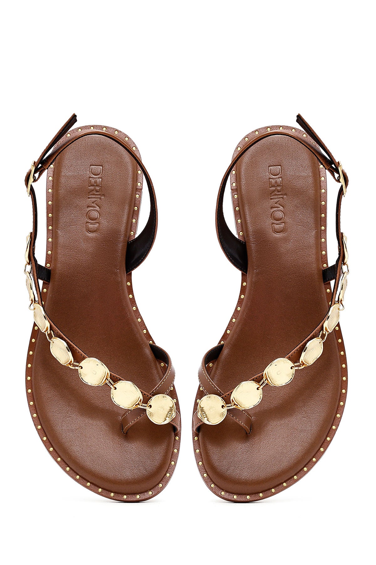 Derimod's elegance and style together Woman Brown Metal Detailed Flip Flops Leather Show off your style with sandals. Product code: 25SFD483214 25