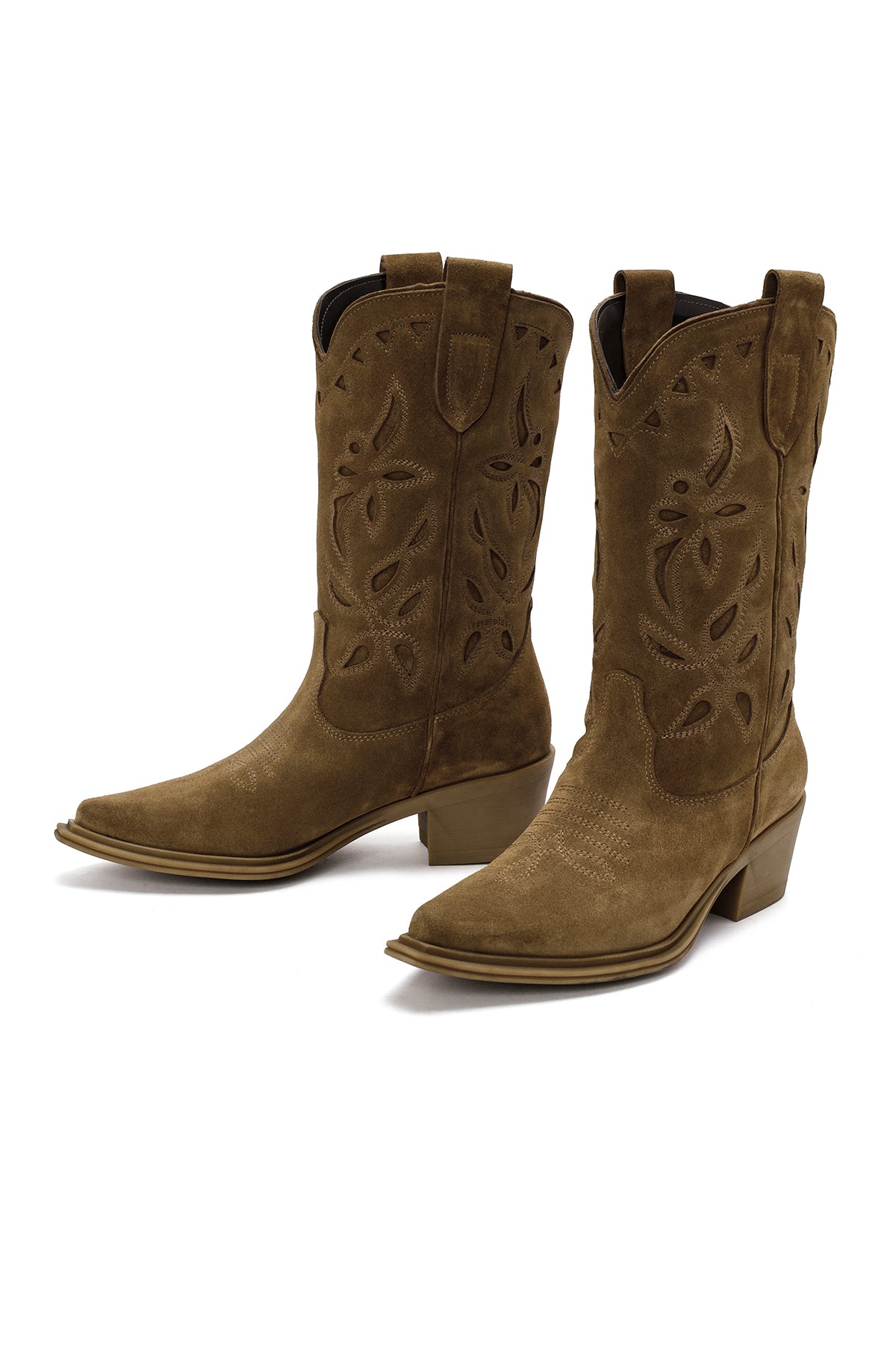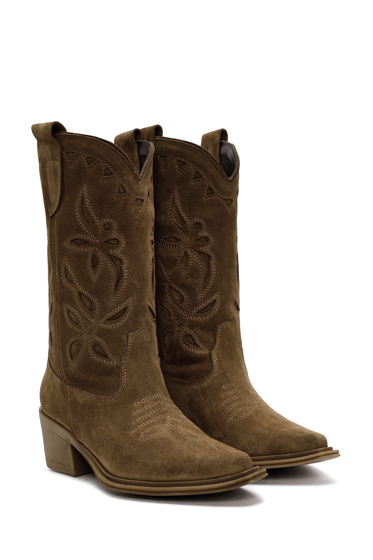 Made of suede leather, this cowboy boot is one of the timeless and stylish pieces of the winter season. The model, which is adorned with decorative stitching details reflecting the classic western style, provides a balanced stance with its 6 cm heel height. The design, which protects foot health with its leather inner lining, offers safe walking with its durable outsole. The boot, which adapts to both daily and stylish combinations with its tobacco color and traditional cowboy boot details, can be preferred in autumn and winter. Areas of use: Ideal for daily life, city walks and casual style combinations. Product code: 24WFD186910