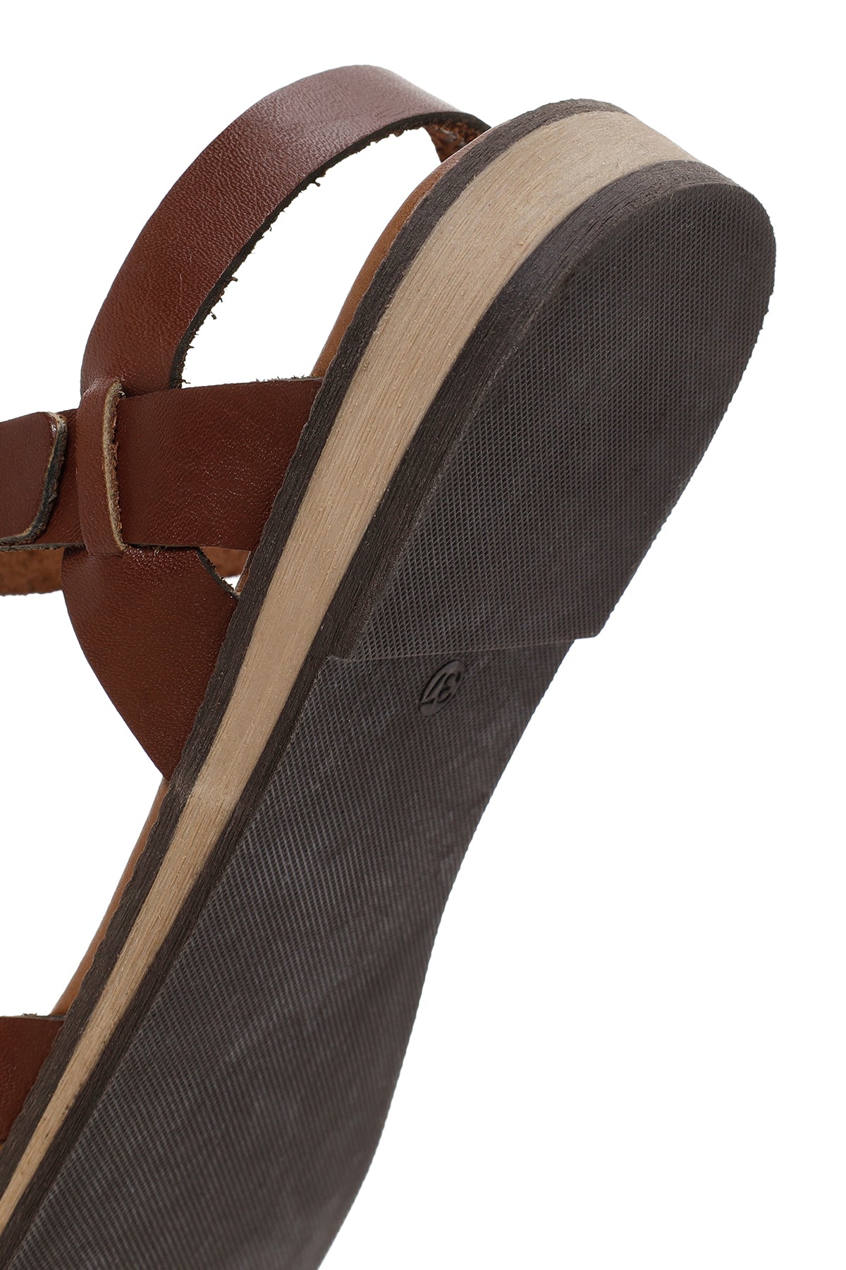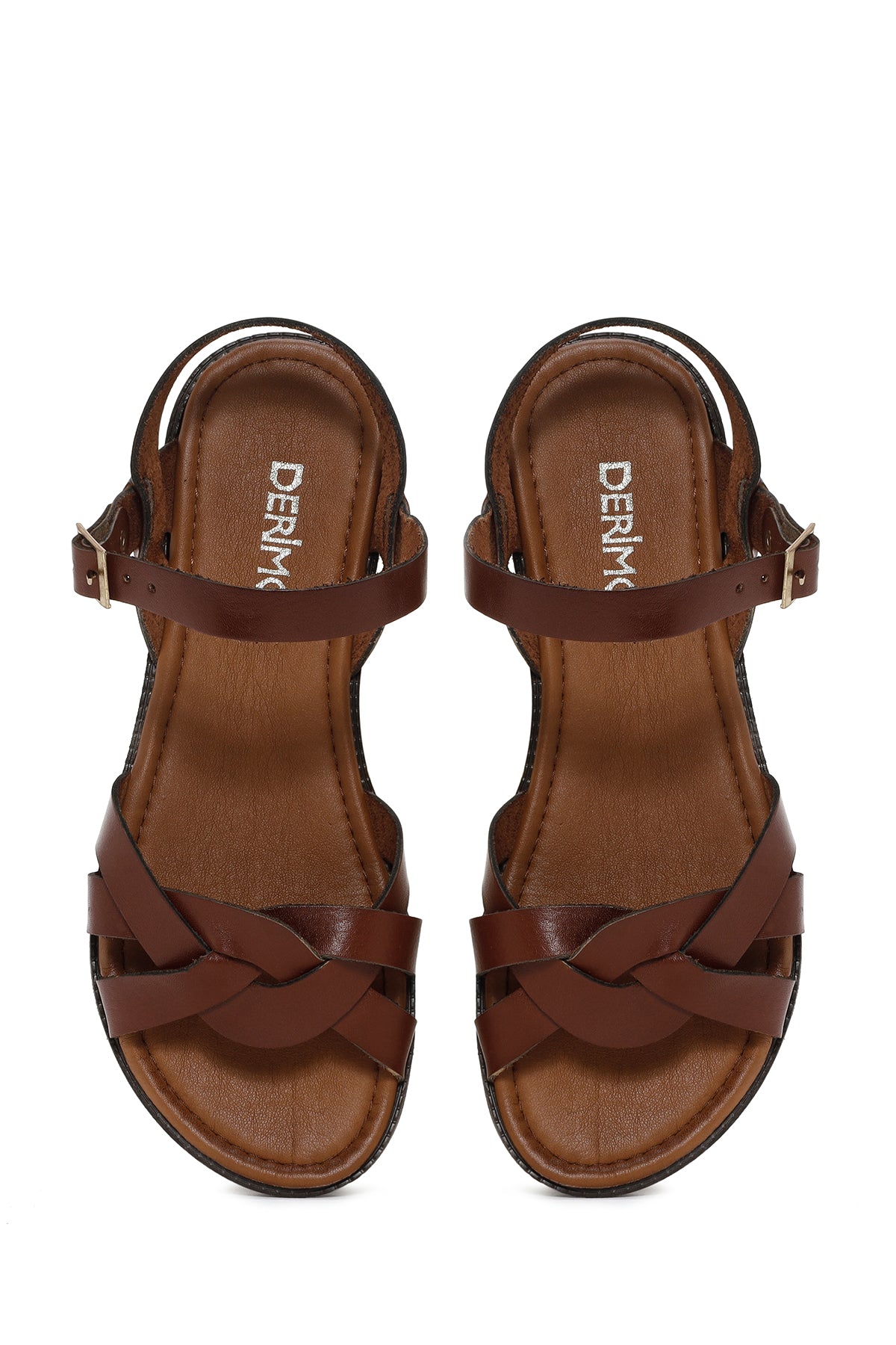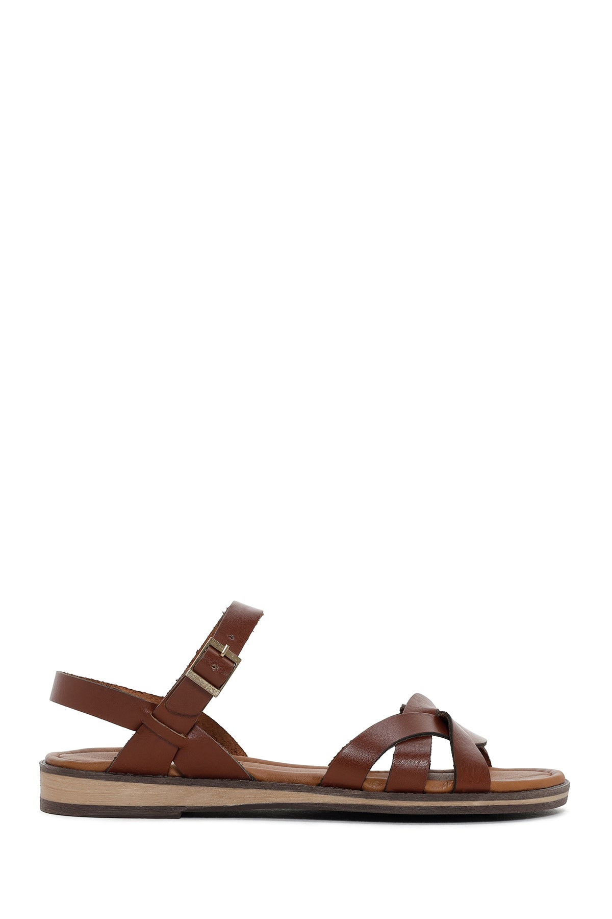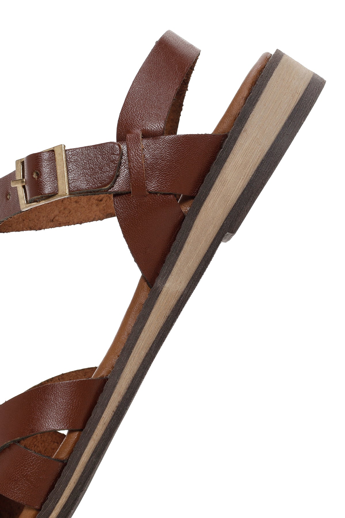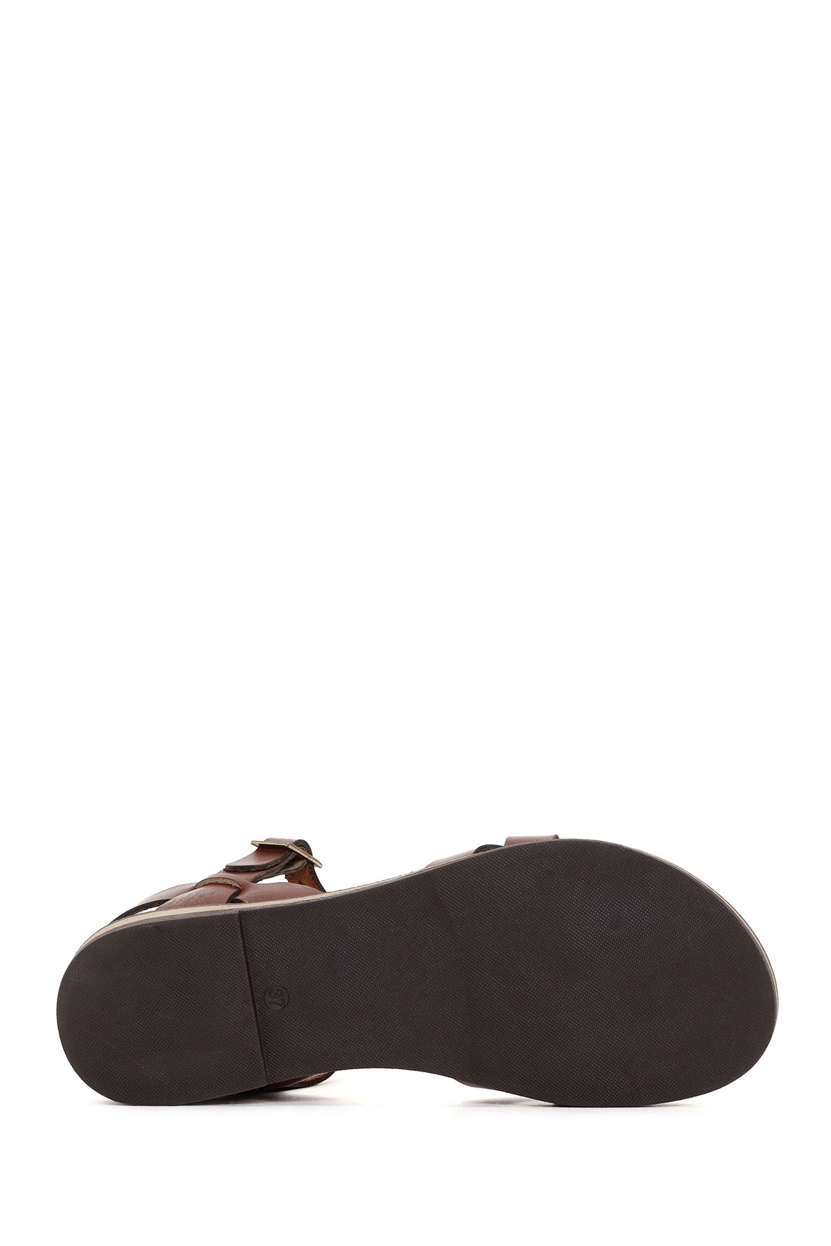 Kadın Kahverengi Tokalı Deri Bodrum Sandalet