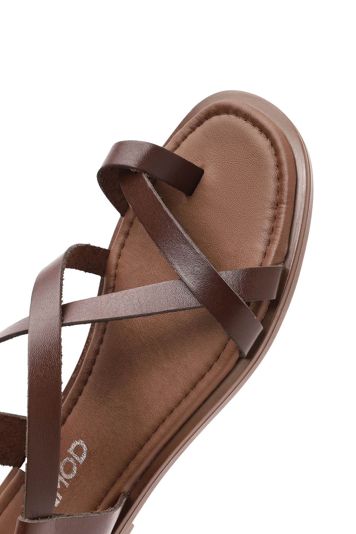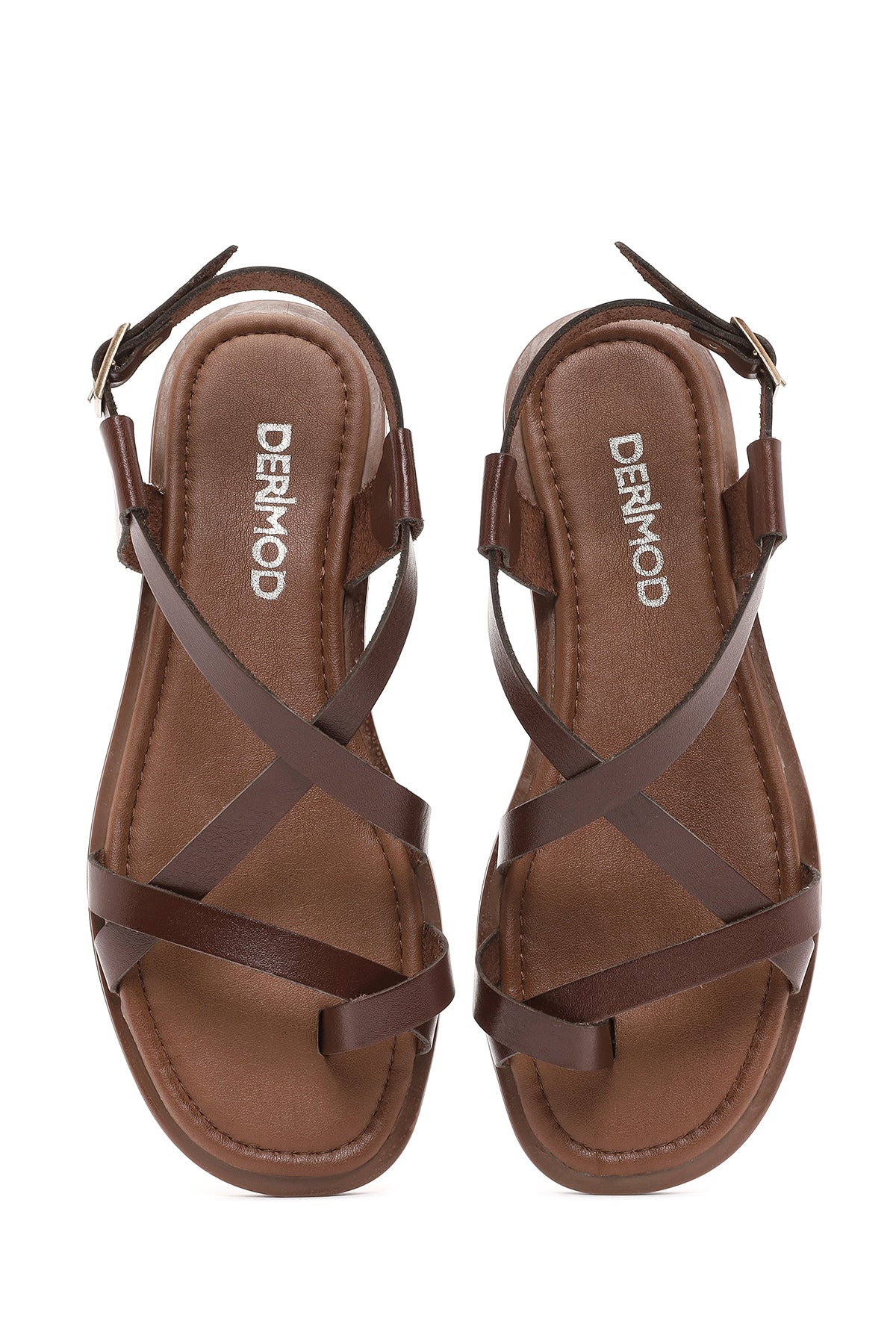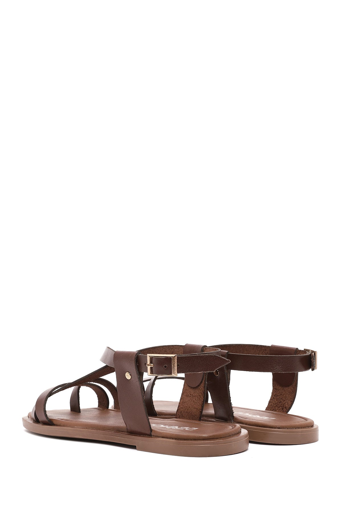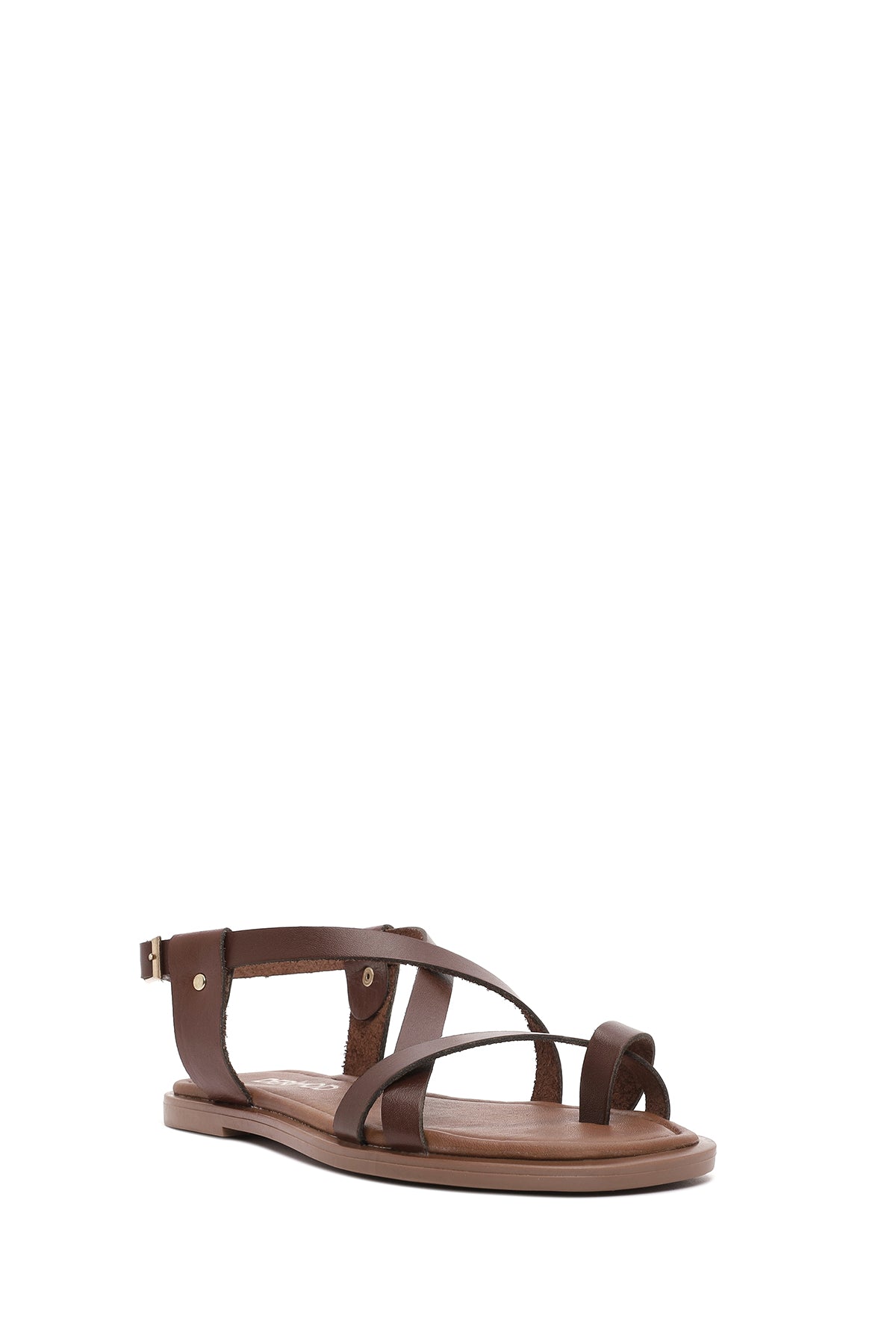 Kadın Kahverengi Tokalı Deri Bodrum Sandalet