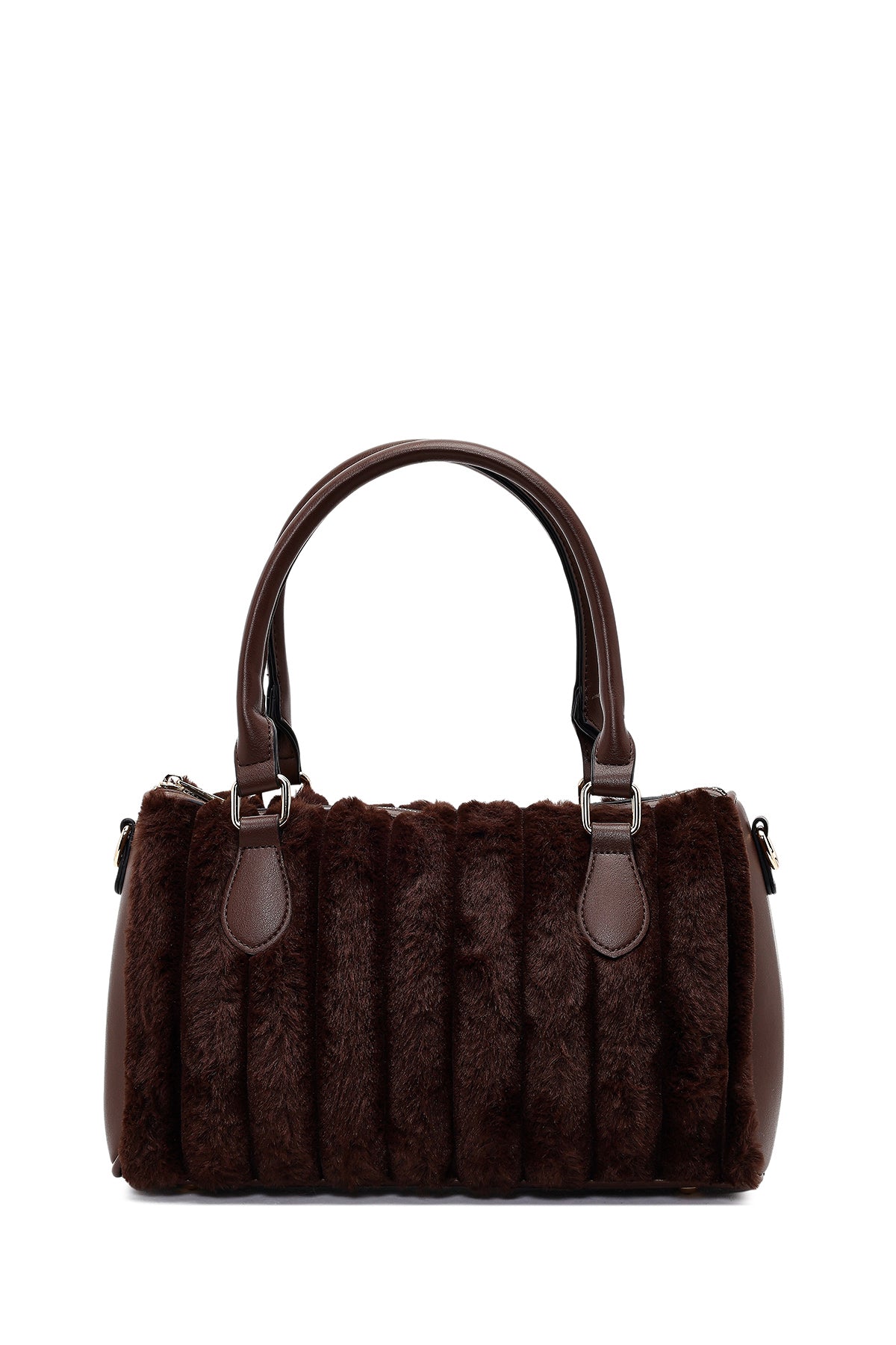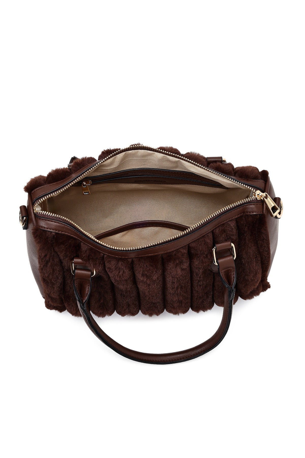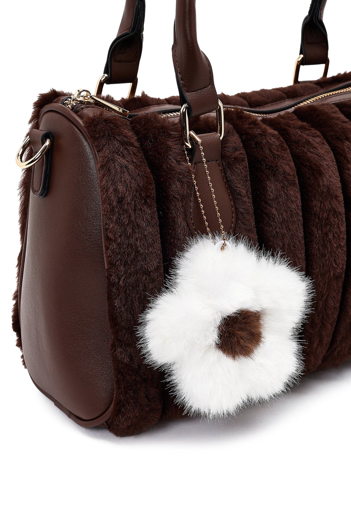 Women's Brown Long Strap Plush Shoulder Bag with Accessories