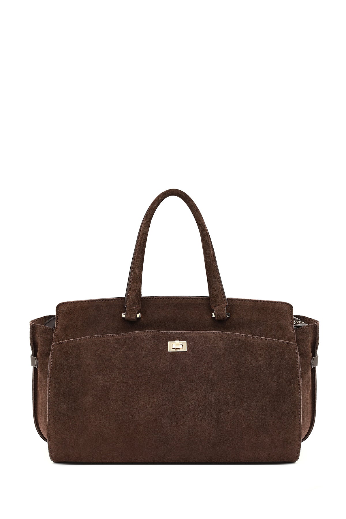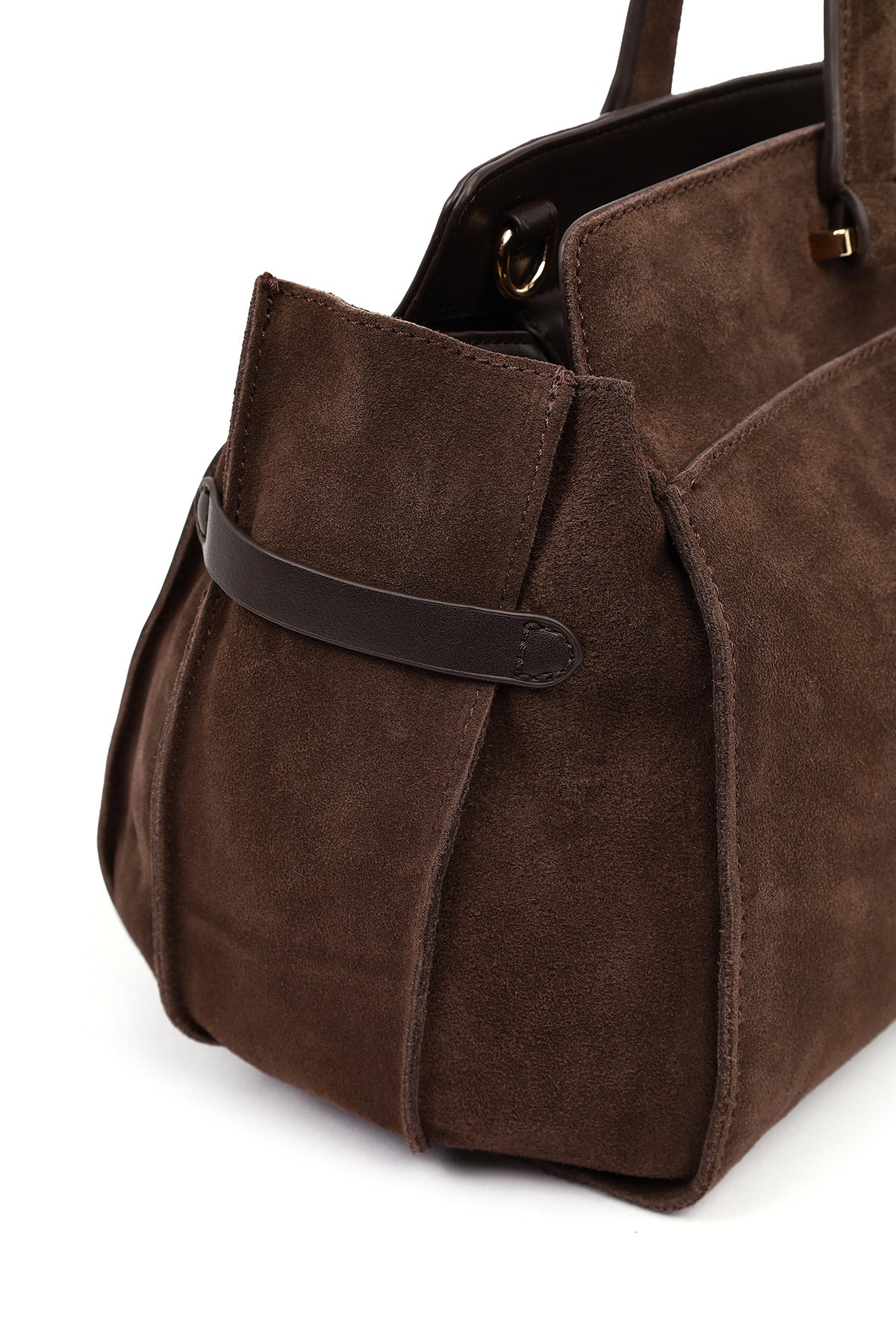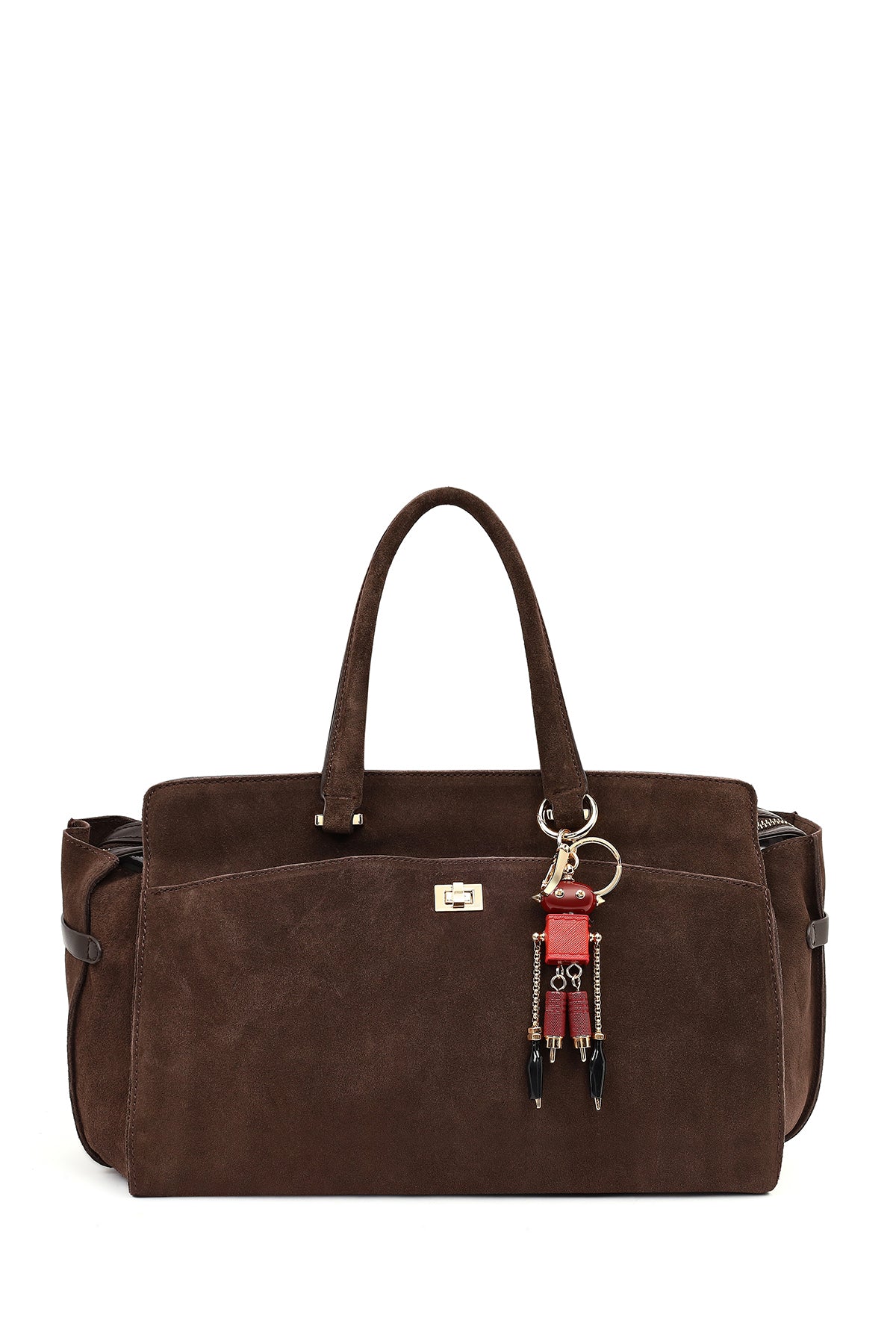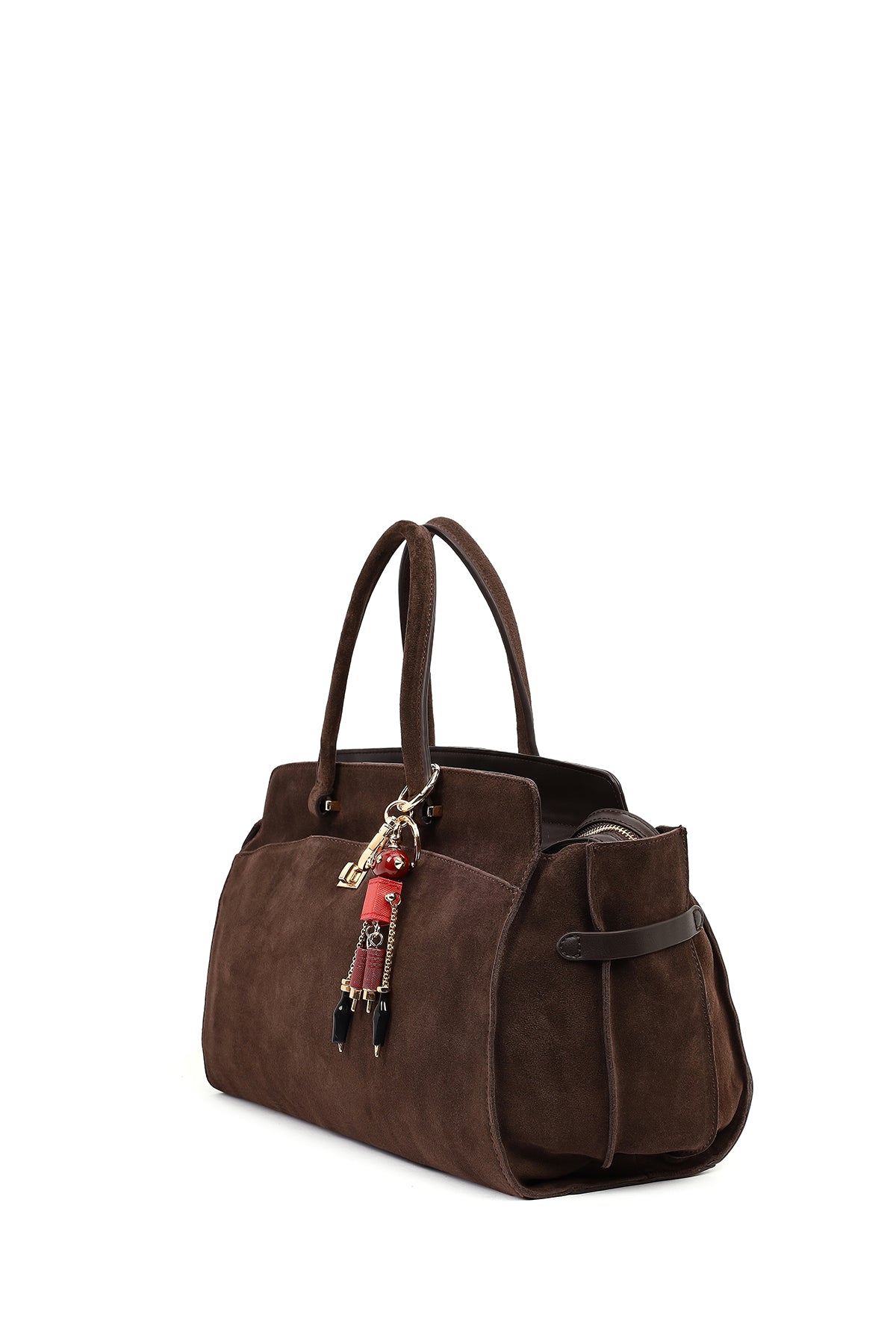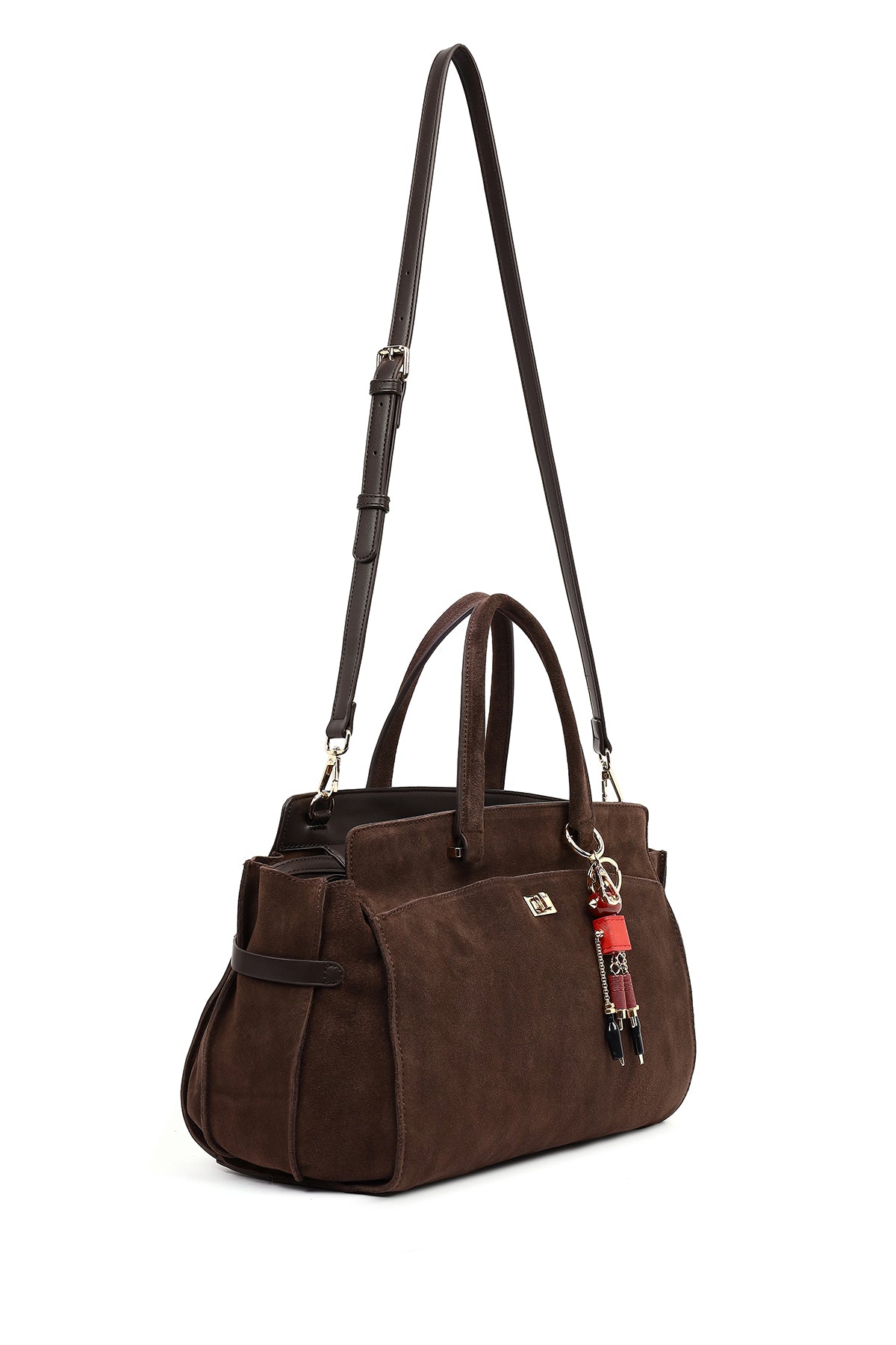 Kadın Kahverengi Uzun Askılı Aksesuarlı Süet Kol Çantası