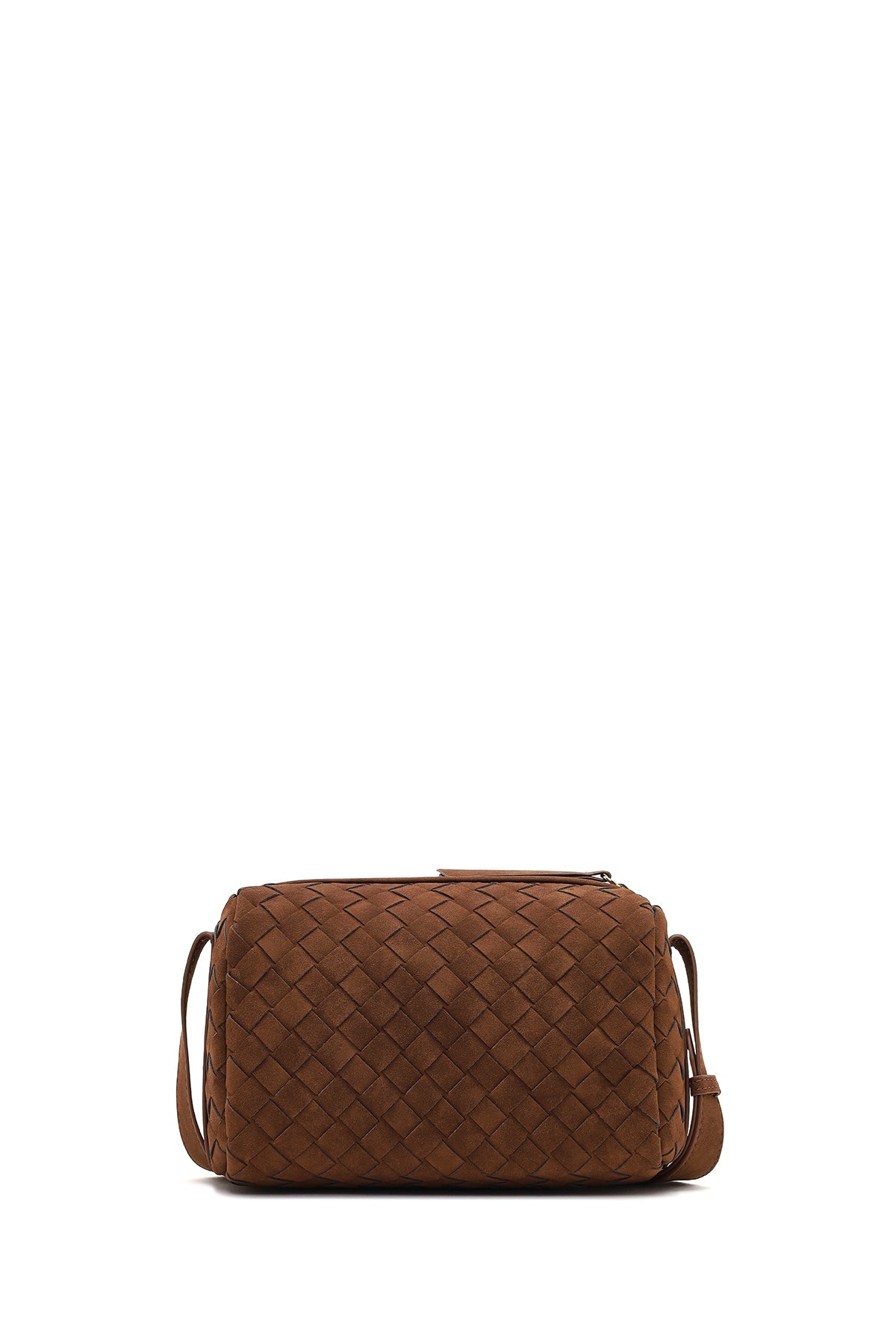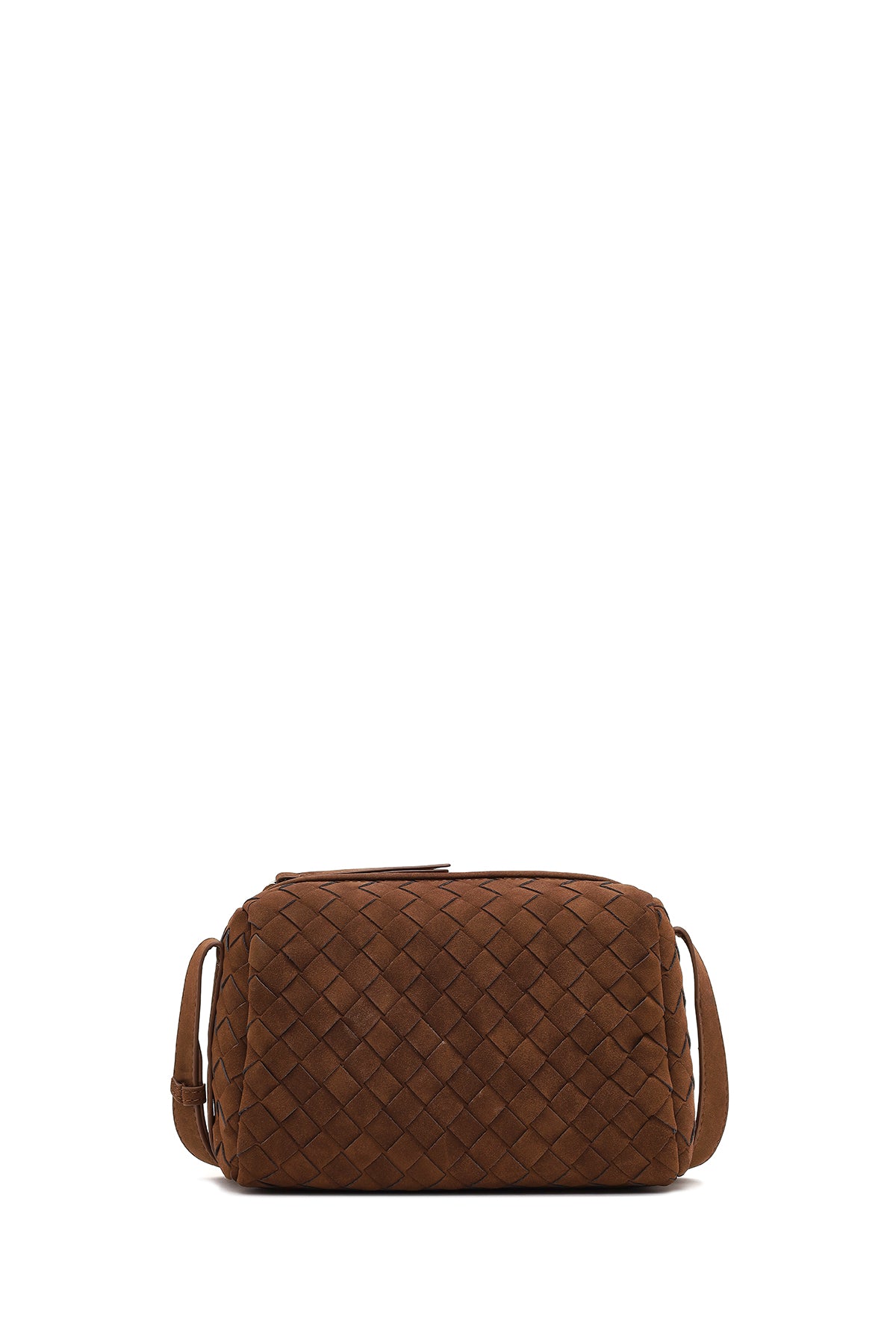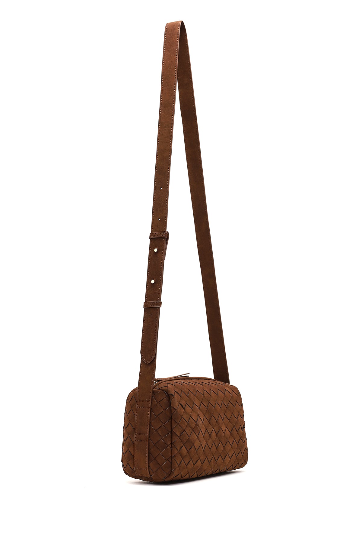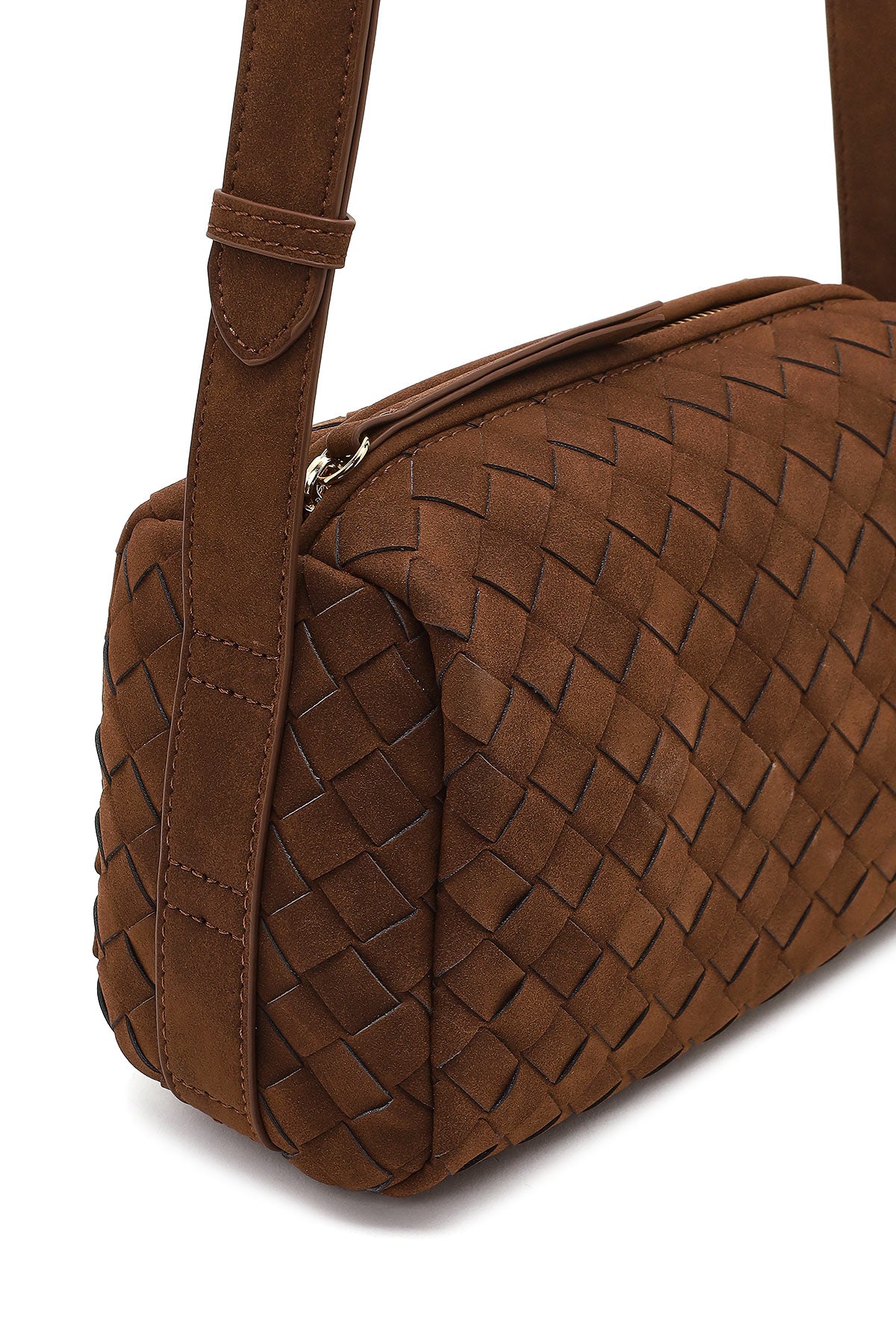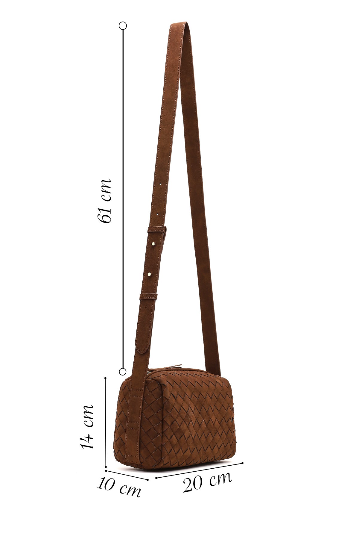 Women's Brown Long Strapped Woven Suede Crossbody Bag