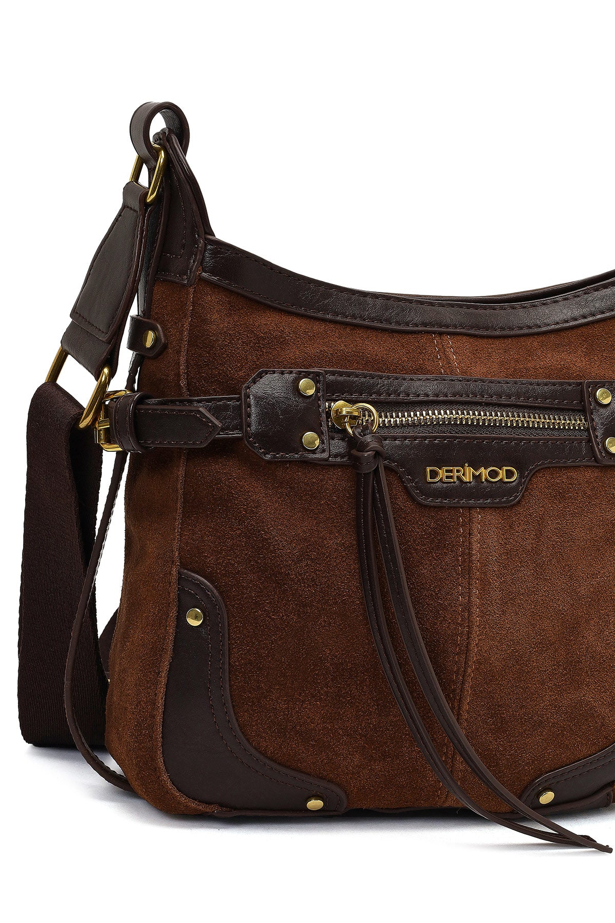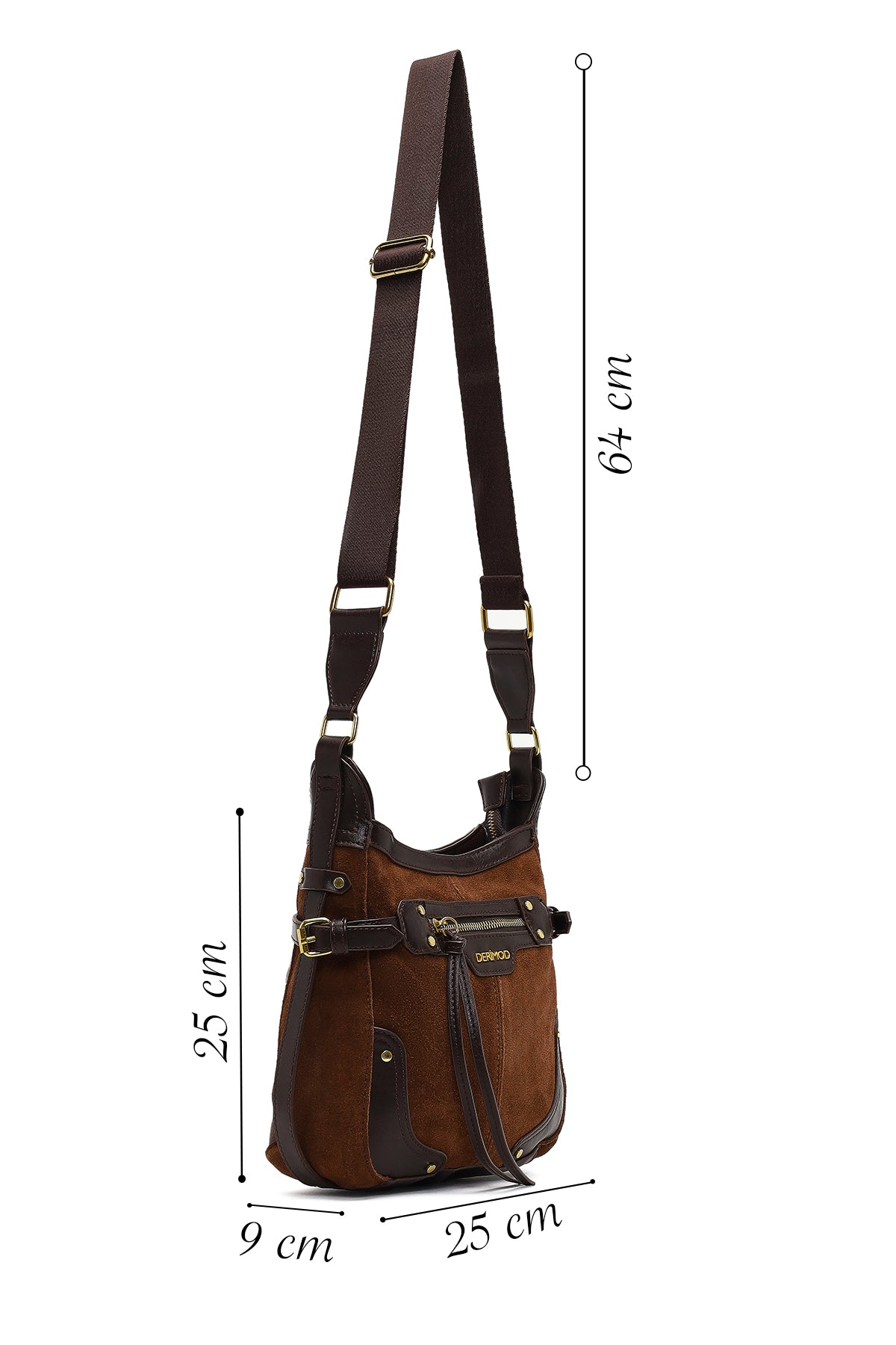 Women's Brown Long Strap Suede Leather Crossbody Bag