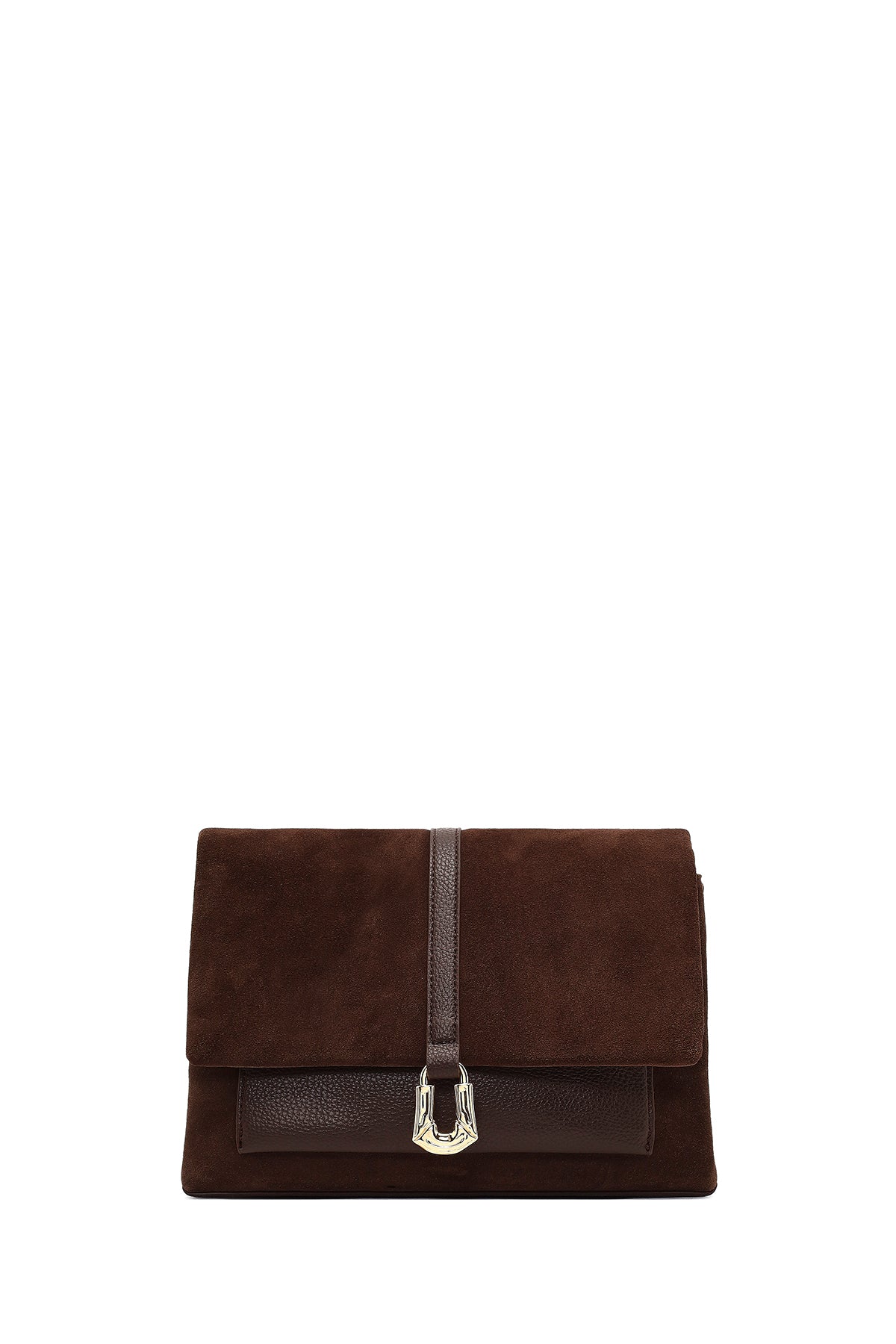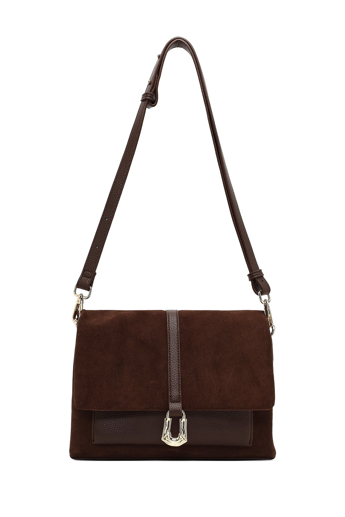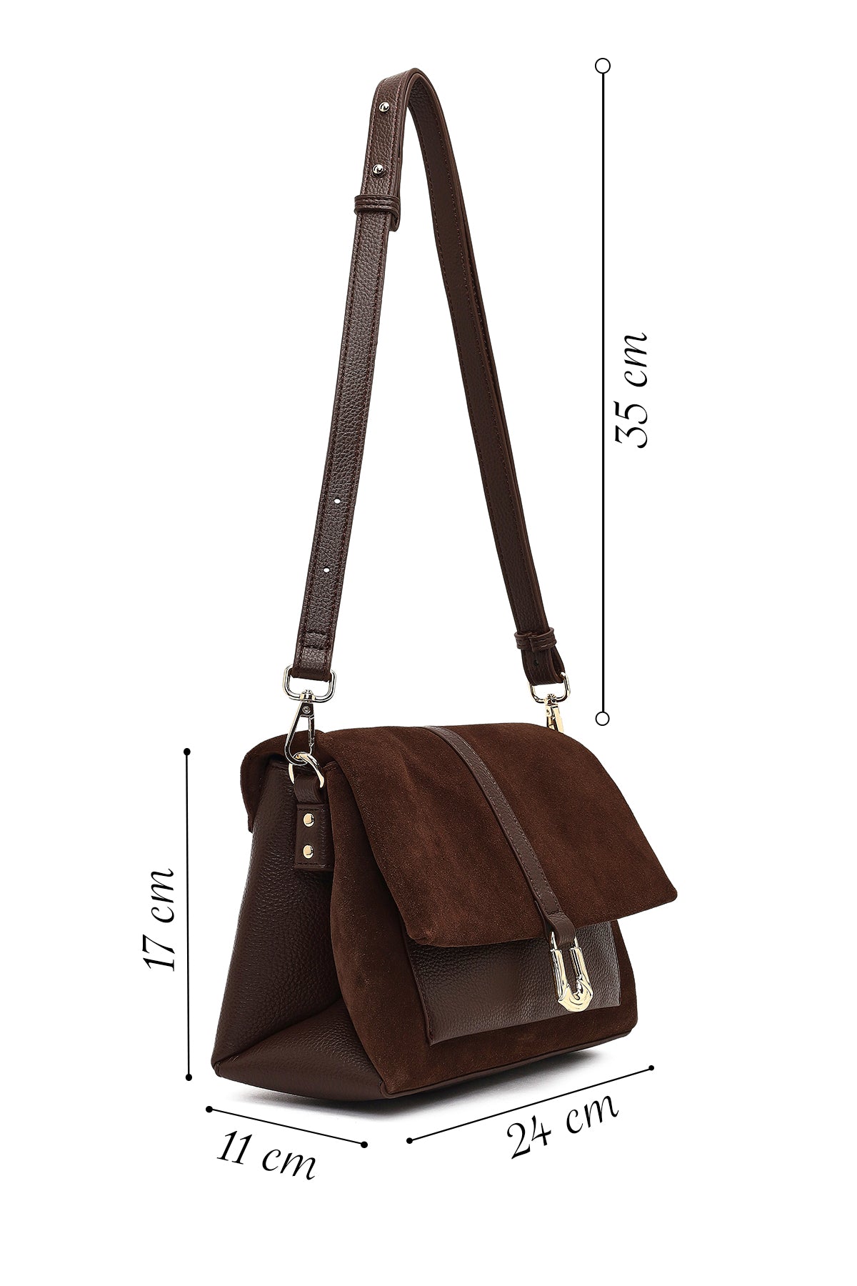 Women's Brown Long Strap Suede Leather Crossbody Bag