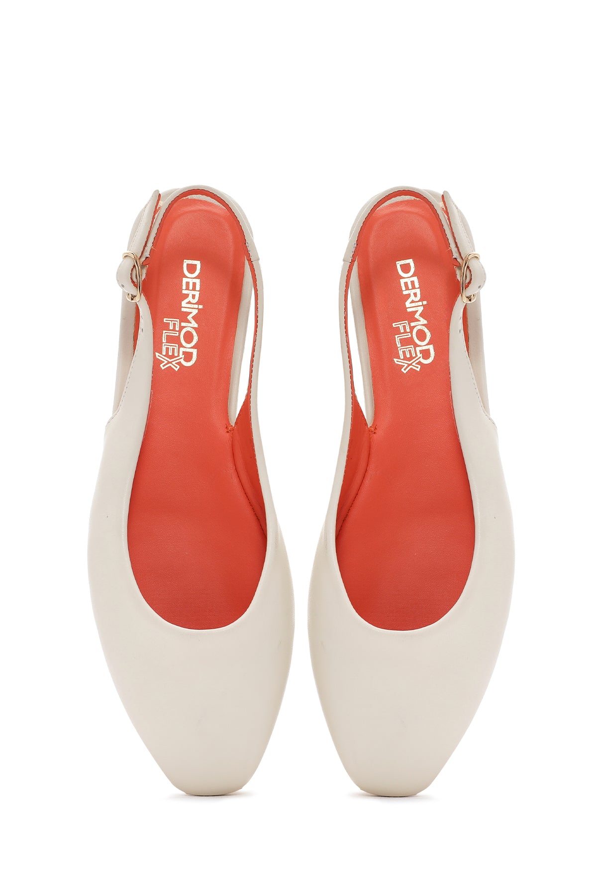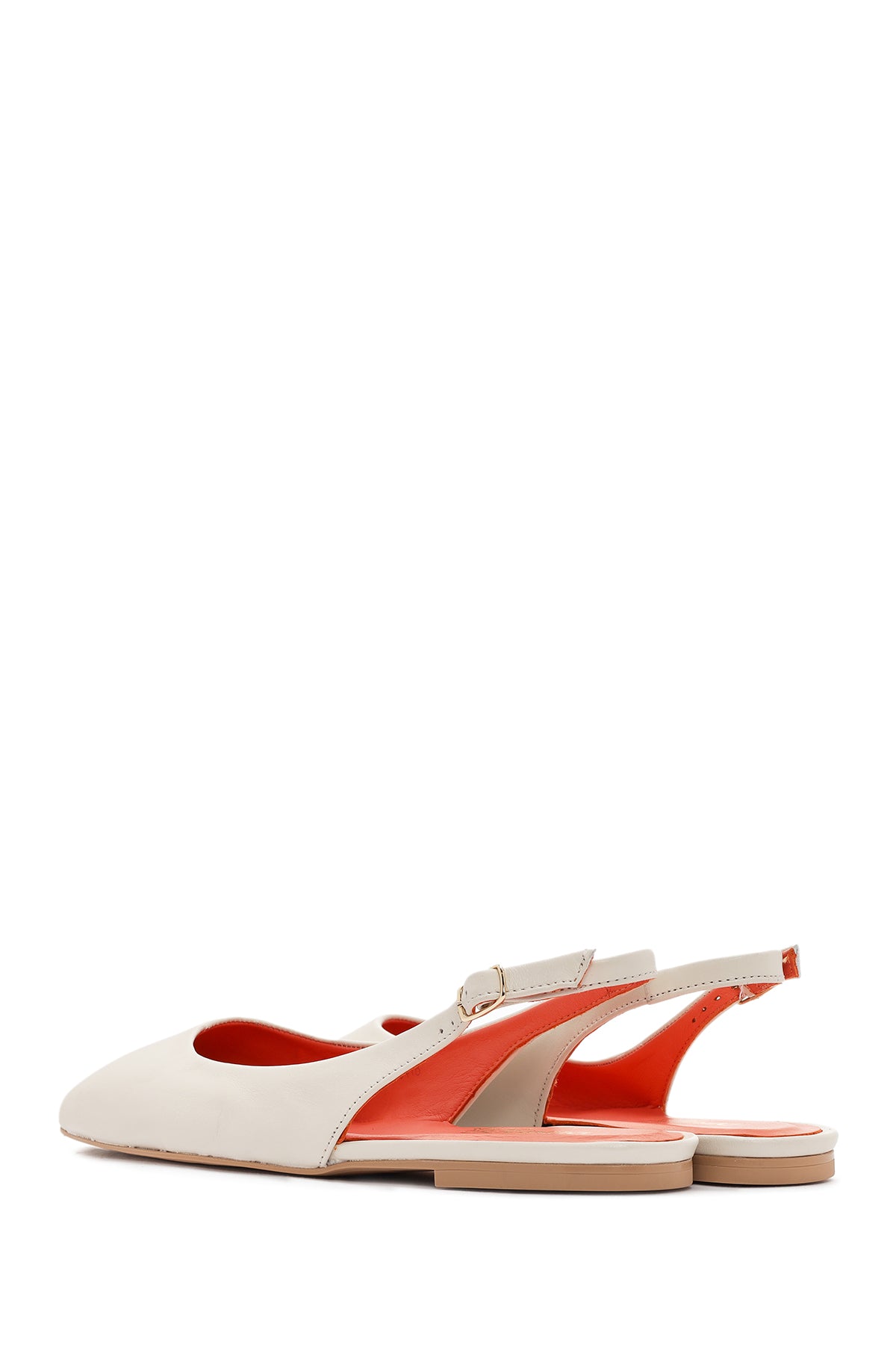 Women's Cream Open Back Leather Ballerinas