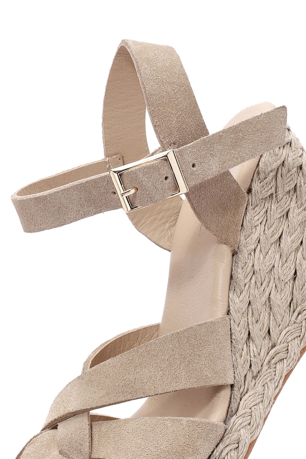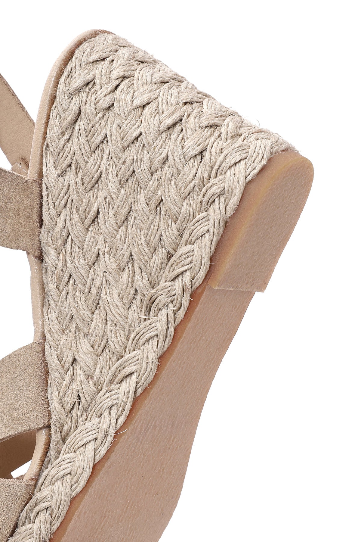 Show off your style with Derimod's Women's Cream Ankle Strap Wedge Heel Suede Leather Espadrilles, which combine elegance and style. Product code: 25SFD153310 ZA