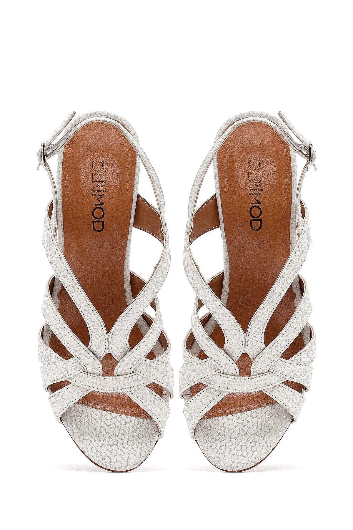 Derimod's elegance and style together Woman Cream Patterned Thick Heels with Ankle Buckle Leather Show off your style with sandals. Product code: 25SFD161626 EK