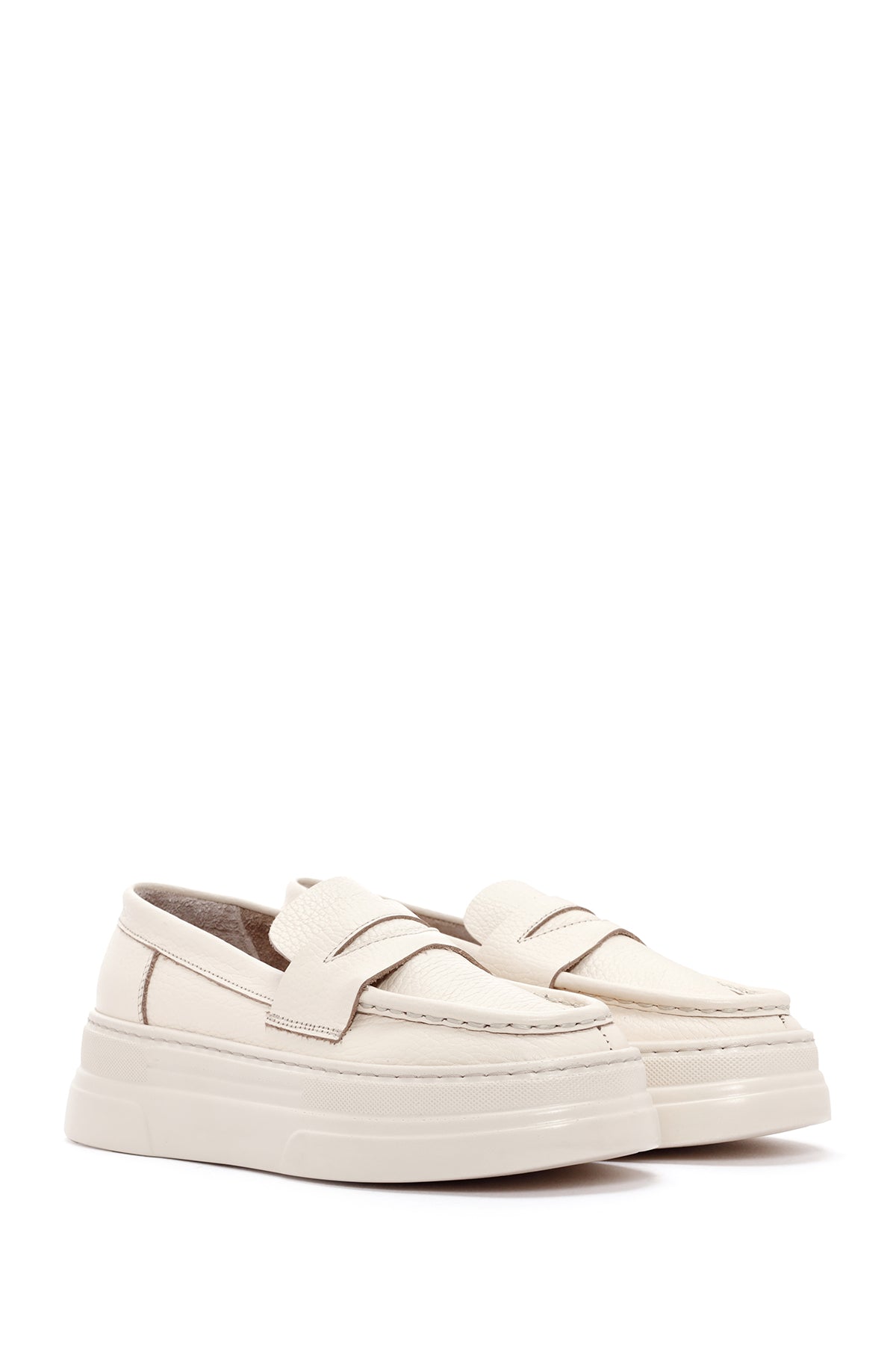 Women's Cream Thick Sole Leather Loafer