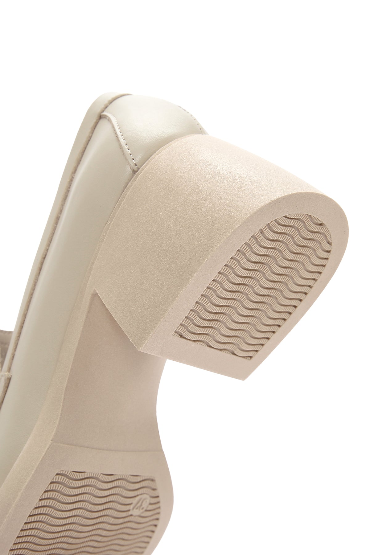 Women's Cream Thick Heeled Leather Masculine Loafer