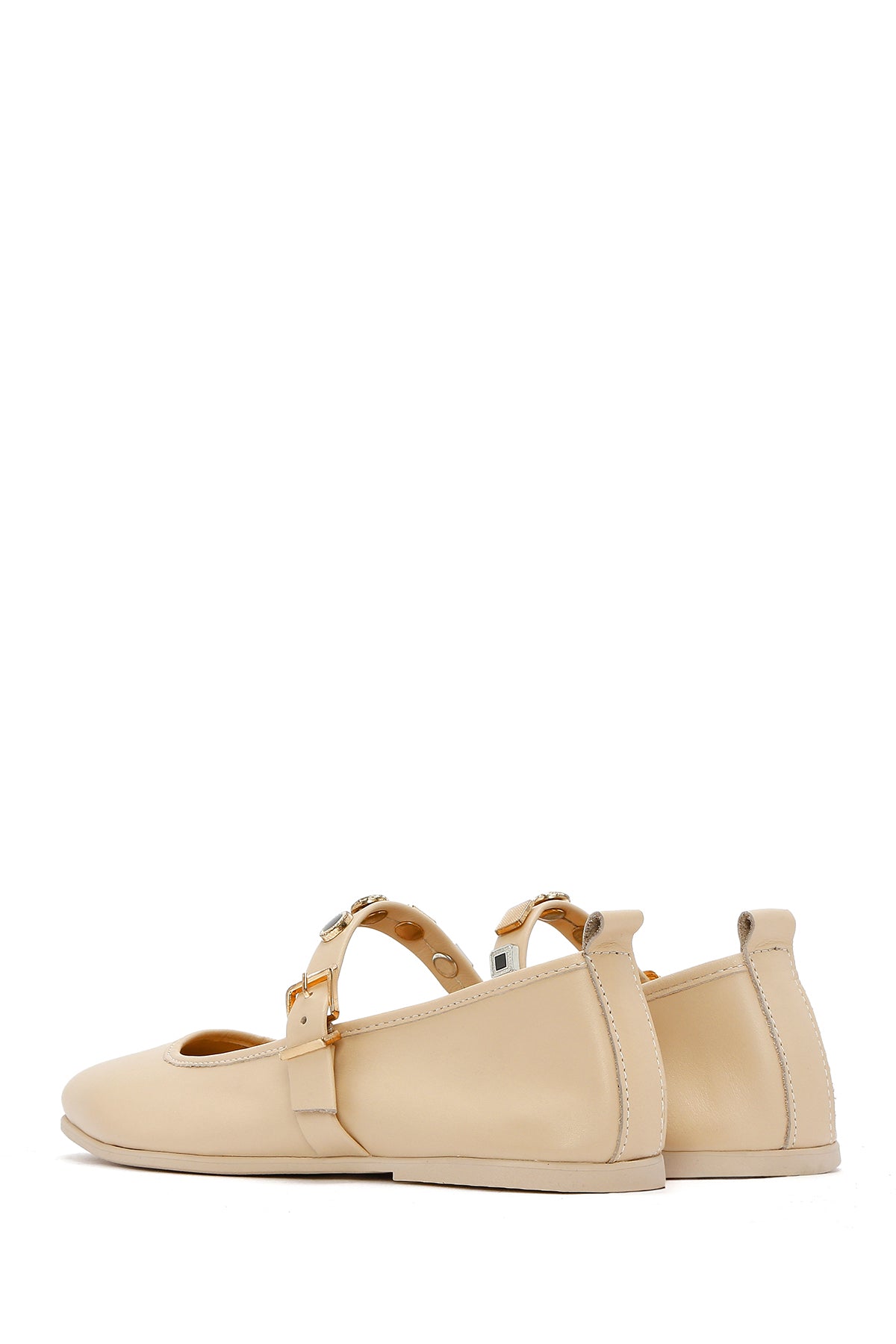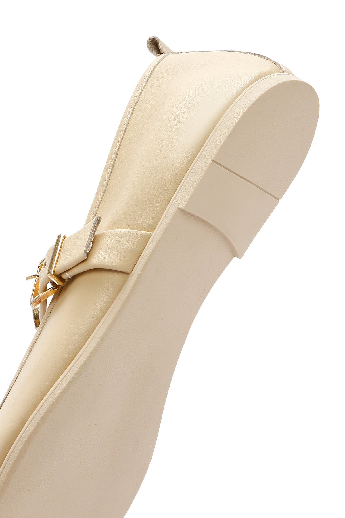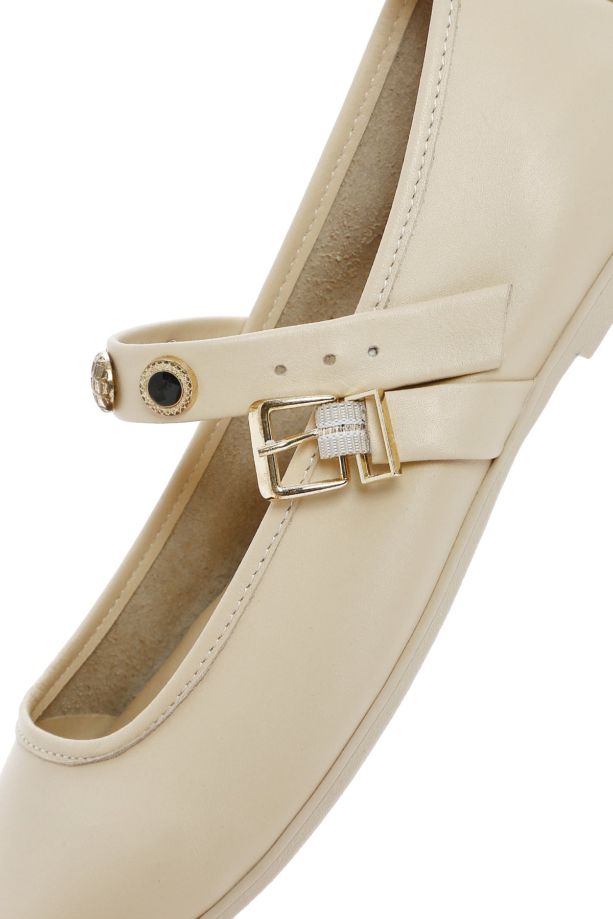 Kadın Krem Tokalı Deri Babet