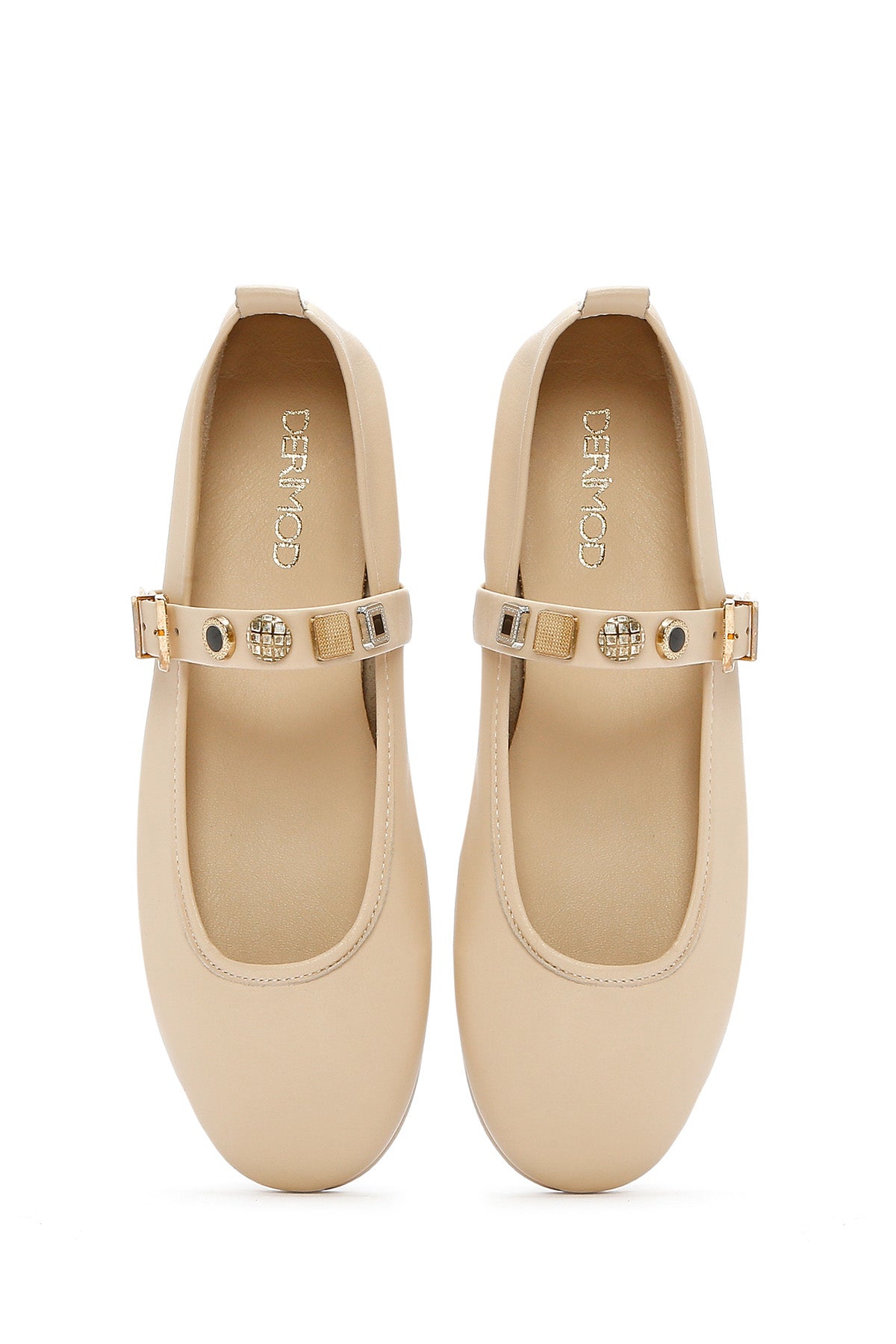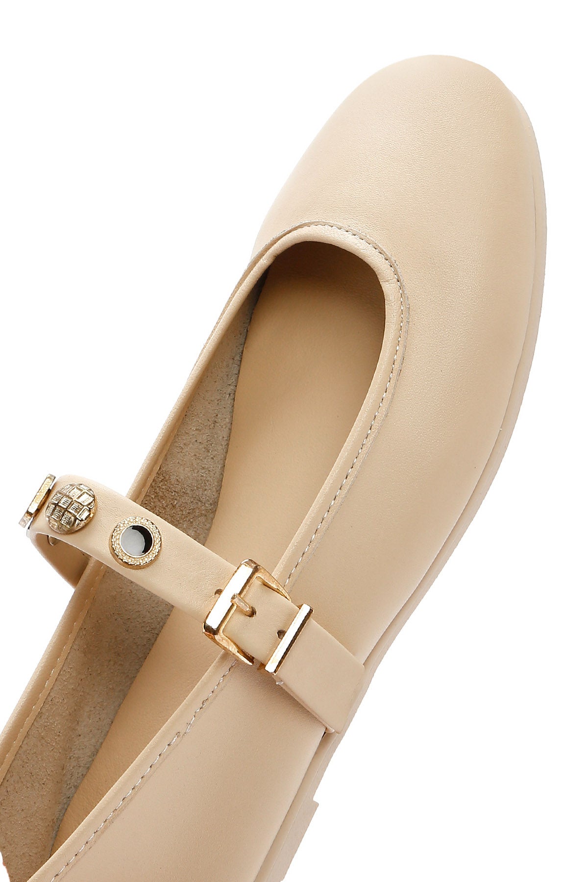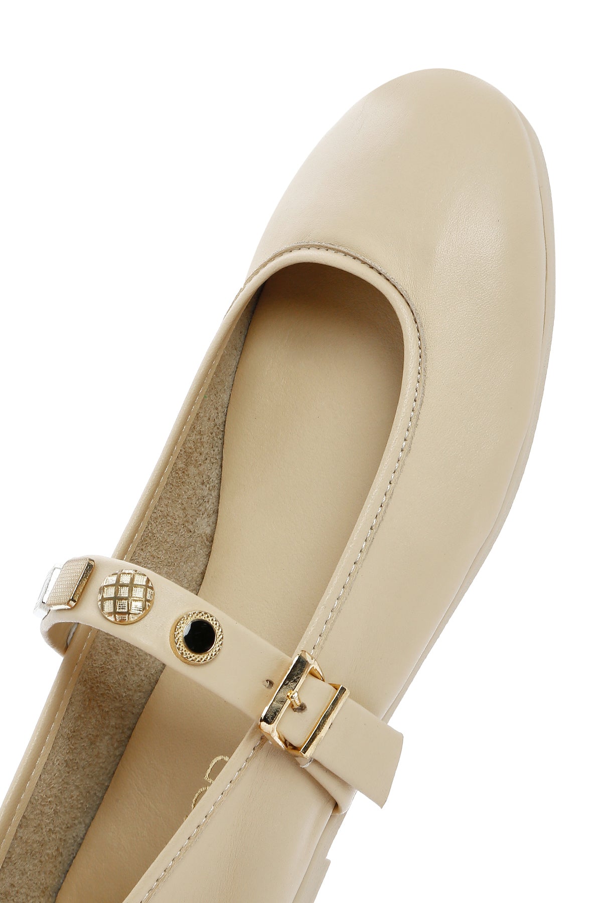 Kadın Krem Tokalı Deri Babet