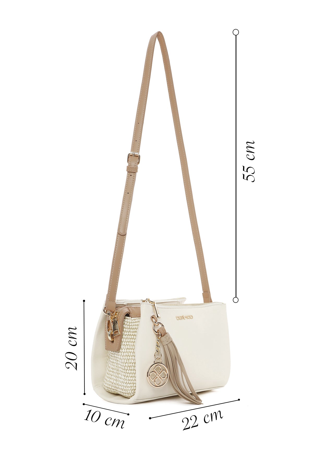 Women's Cream Long Strap Accessory Detailed Crossbody Bag