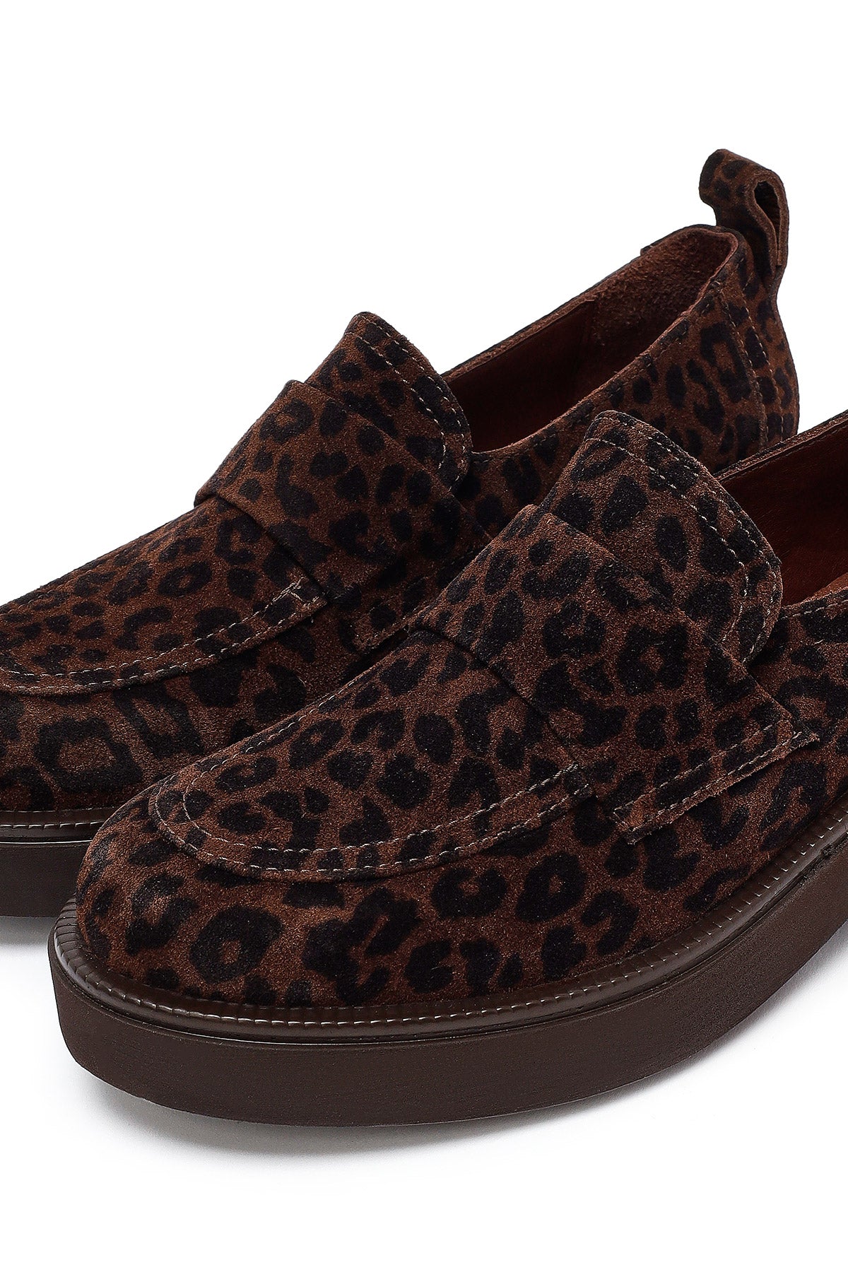 From Derimod's autumn collection, the masculine loafer model designed with leopard patterned suede leather offers a design suitable for daily use with its thick sole 3 cm in height. The model, which combines the classic loafer form with a modern leopard pattern, makes your foot comfortable thanks to its textile inner lining. The loafer, which provides easy wear with its slip-on style structure, offers a wide range of use from jeans to fabric trousers, from dresses to skirts. It can be used at any time of the day in spring and autumn seasons. Product code: 25AFD201710