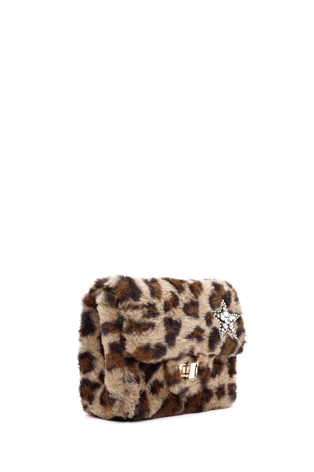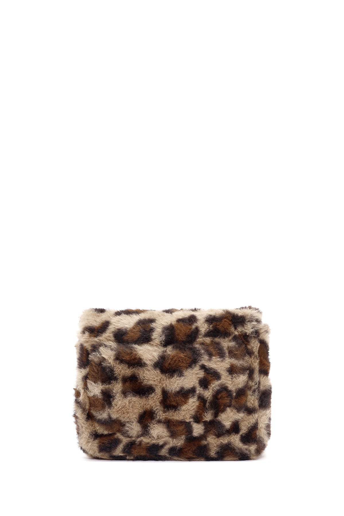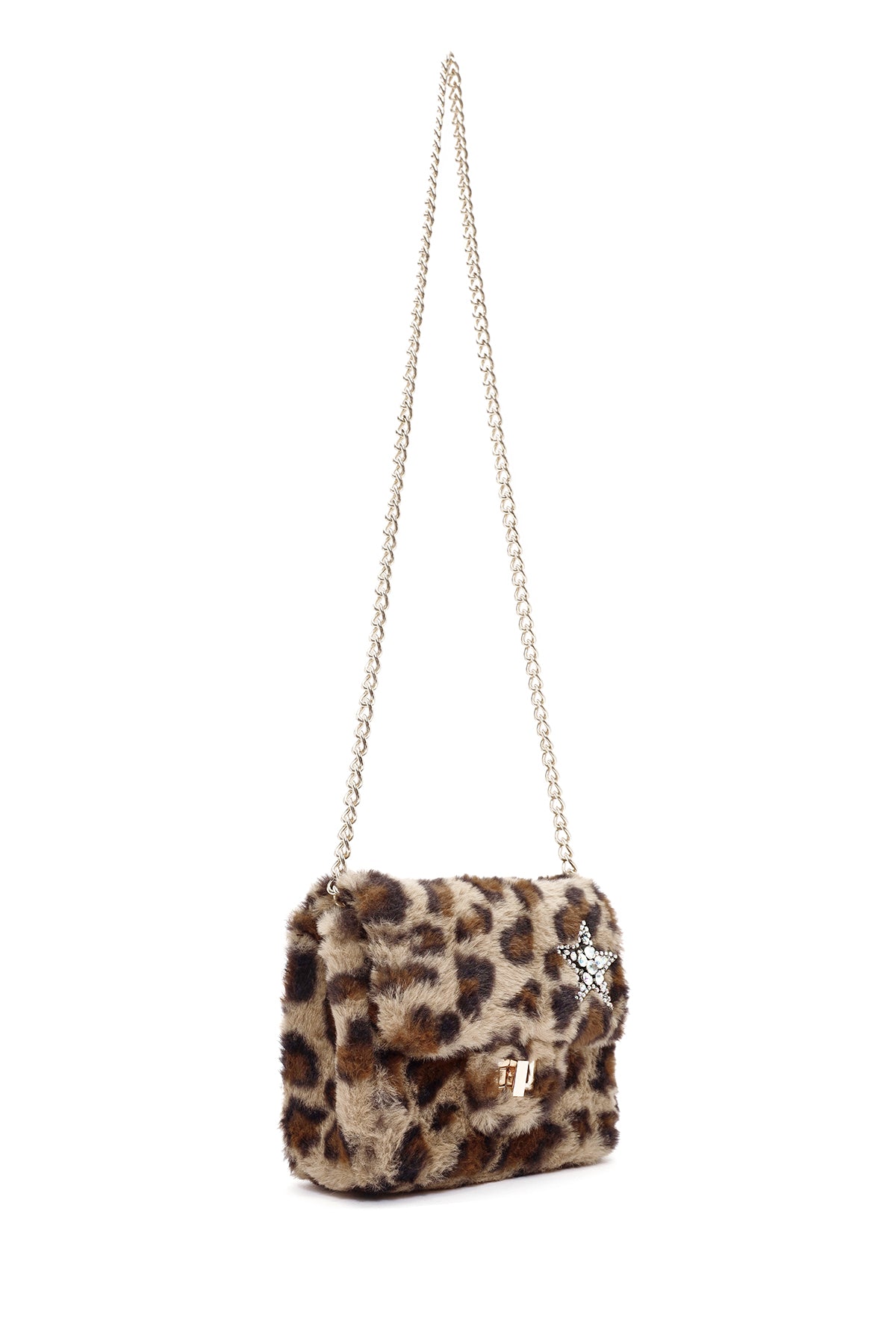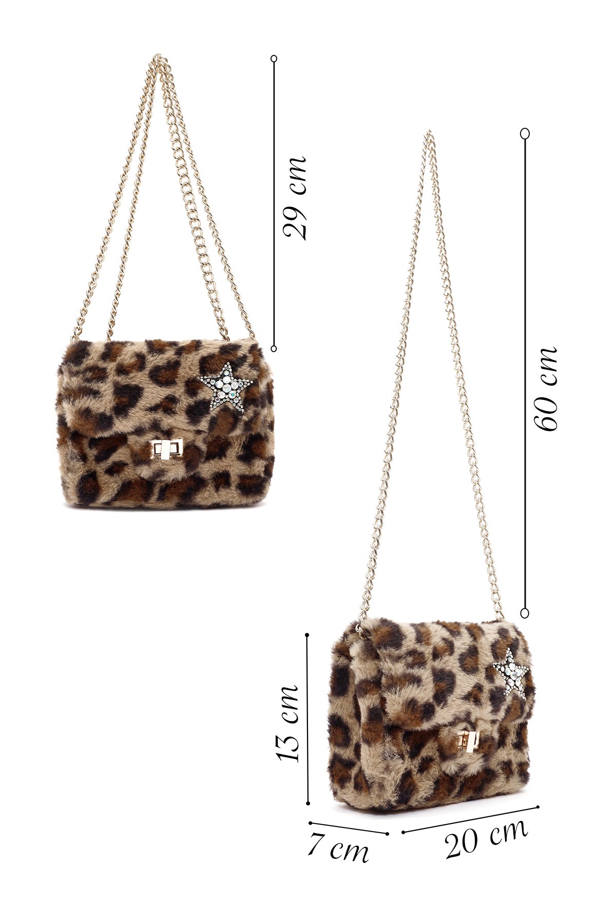Women's Leopard Long Chain Strap Plush Shoulder Bag