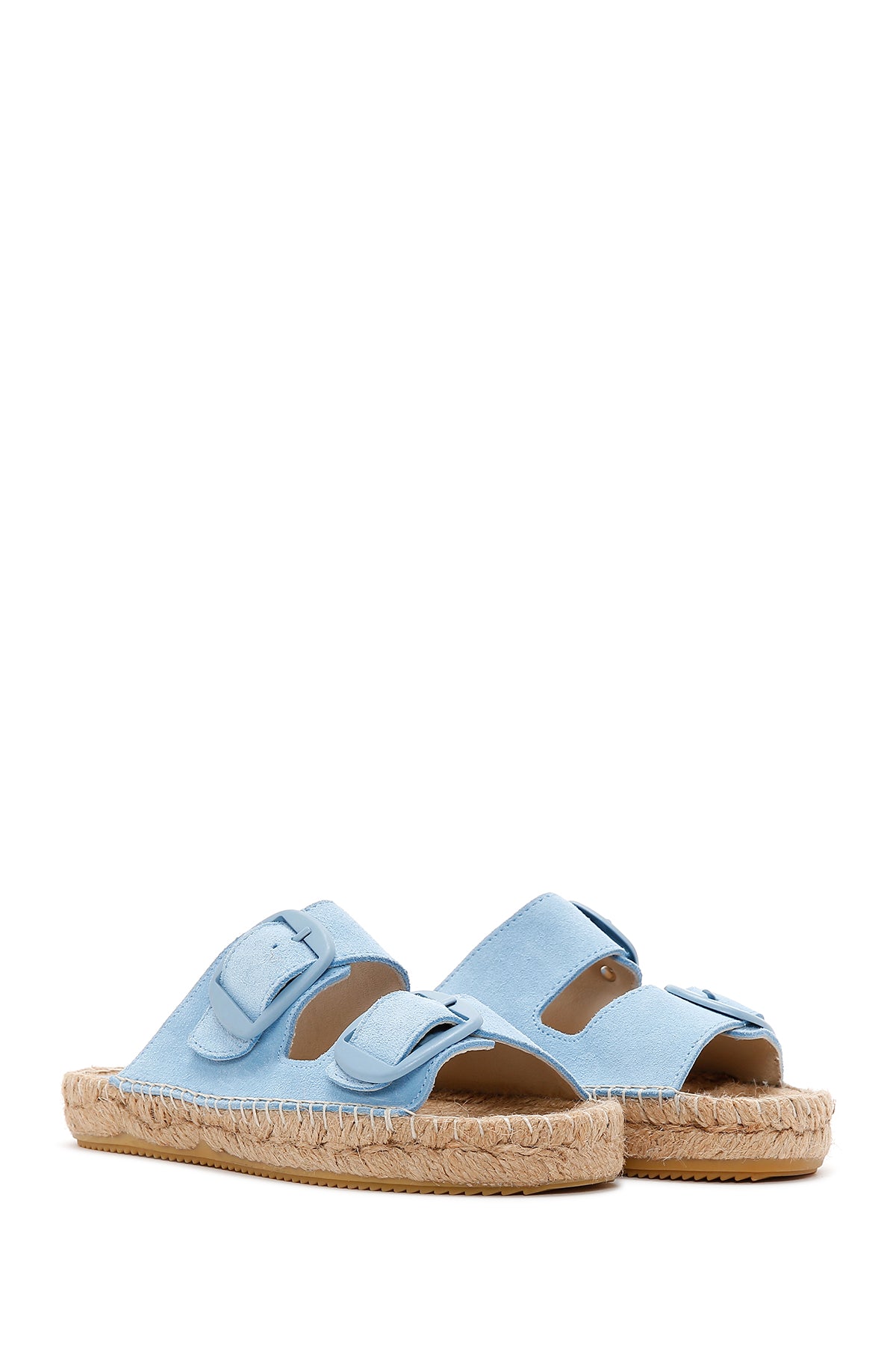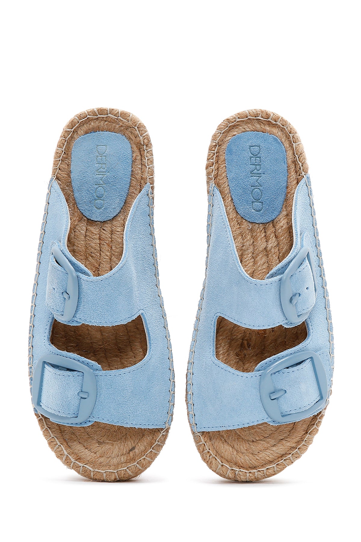 Show off your style with Derimod's Women's Blue Suede Leather Straw Sole Slippers, which offer elegance and elegance together. Product code: 23SFD205010 B9