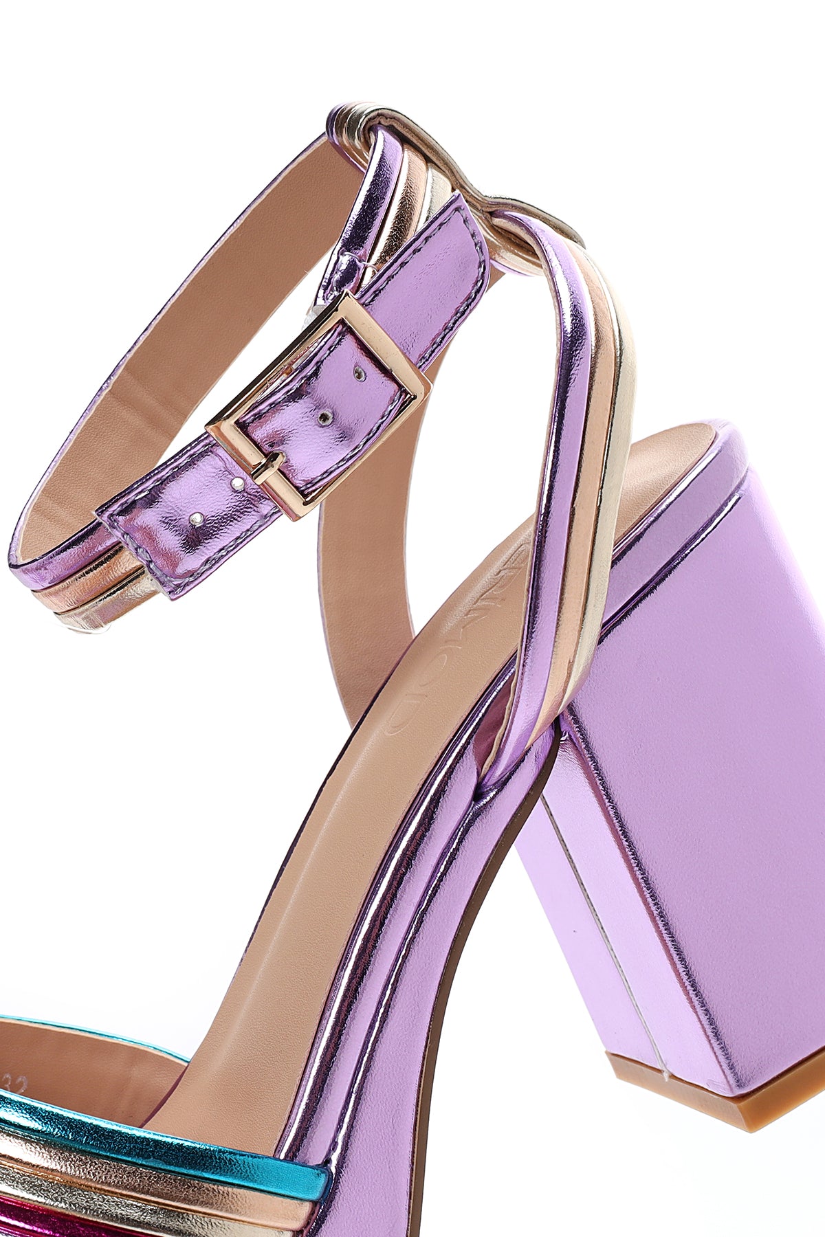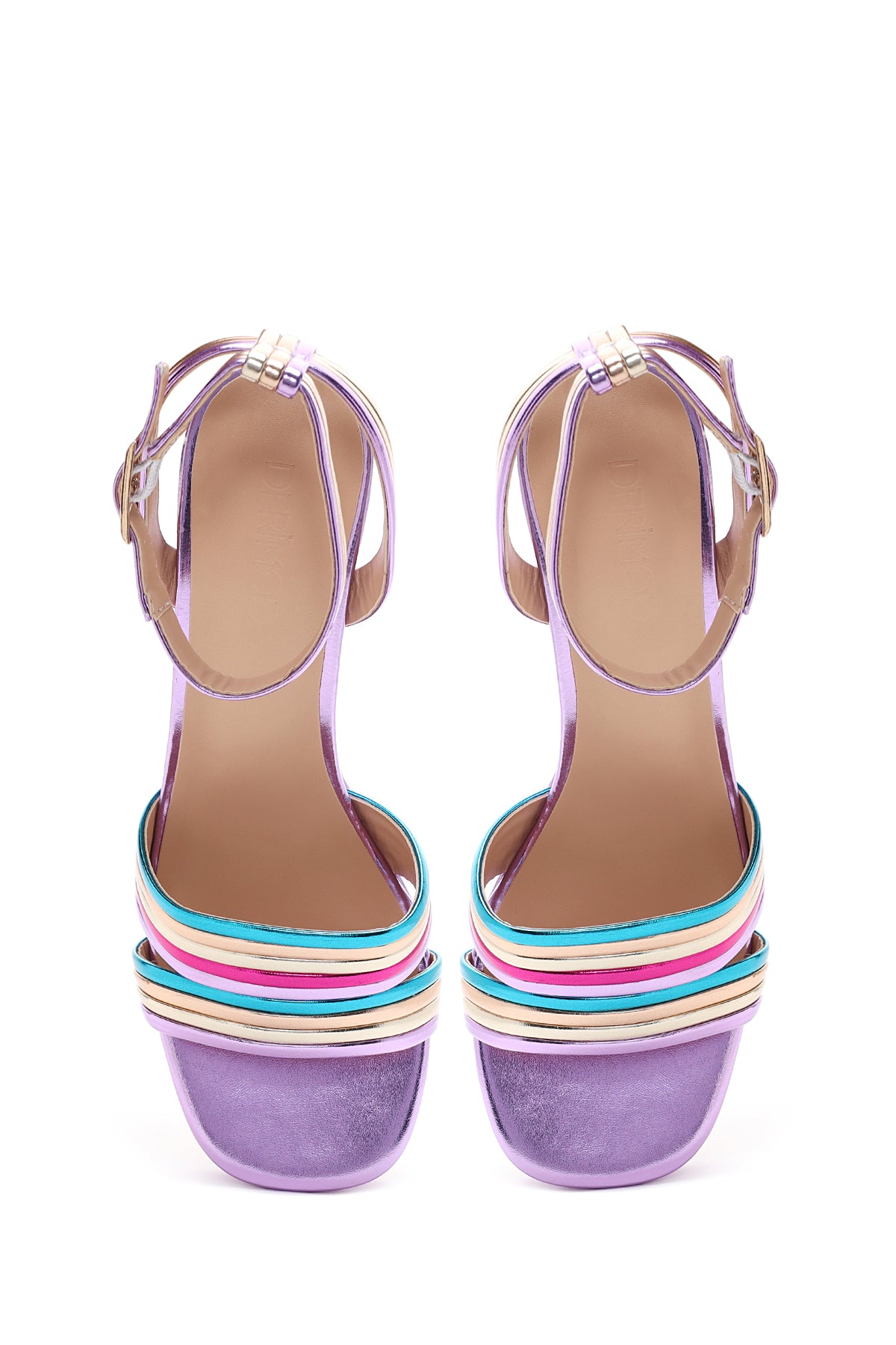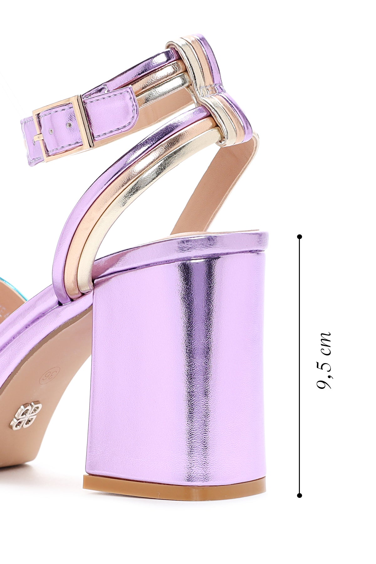Show off your style with Derimod's Women's Purple Metallic Thick Heeled Sandals, which offer elegance and elegance together. Product code: 23SFE451932 08
